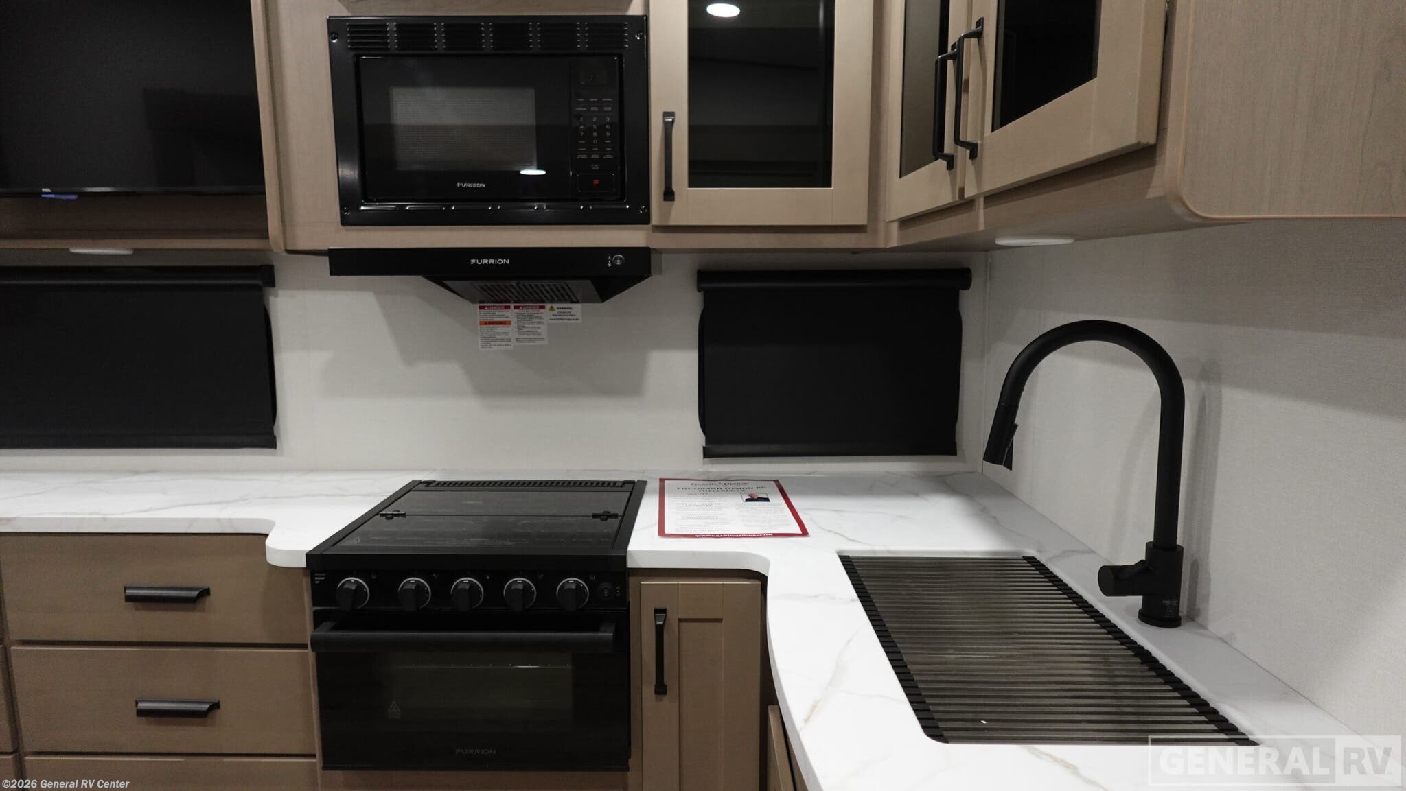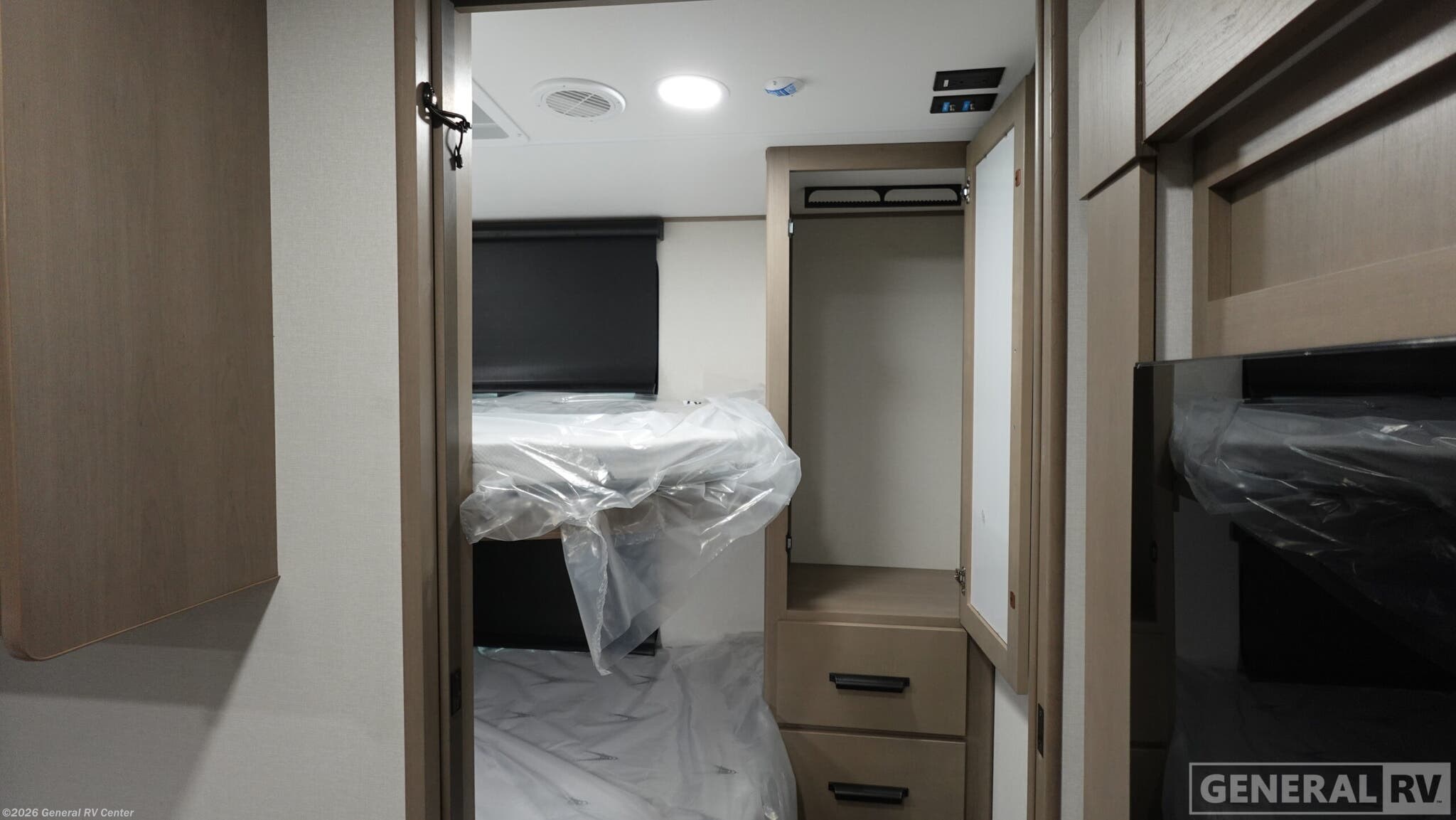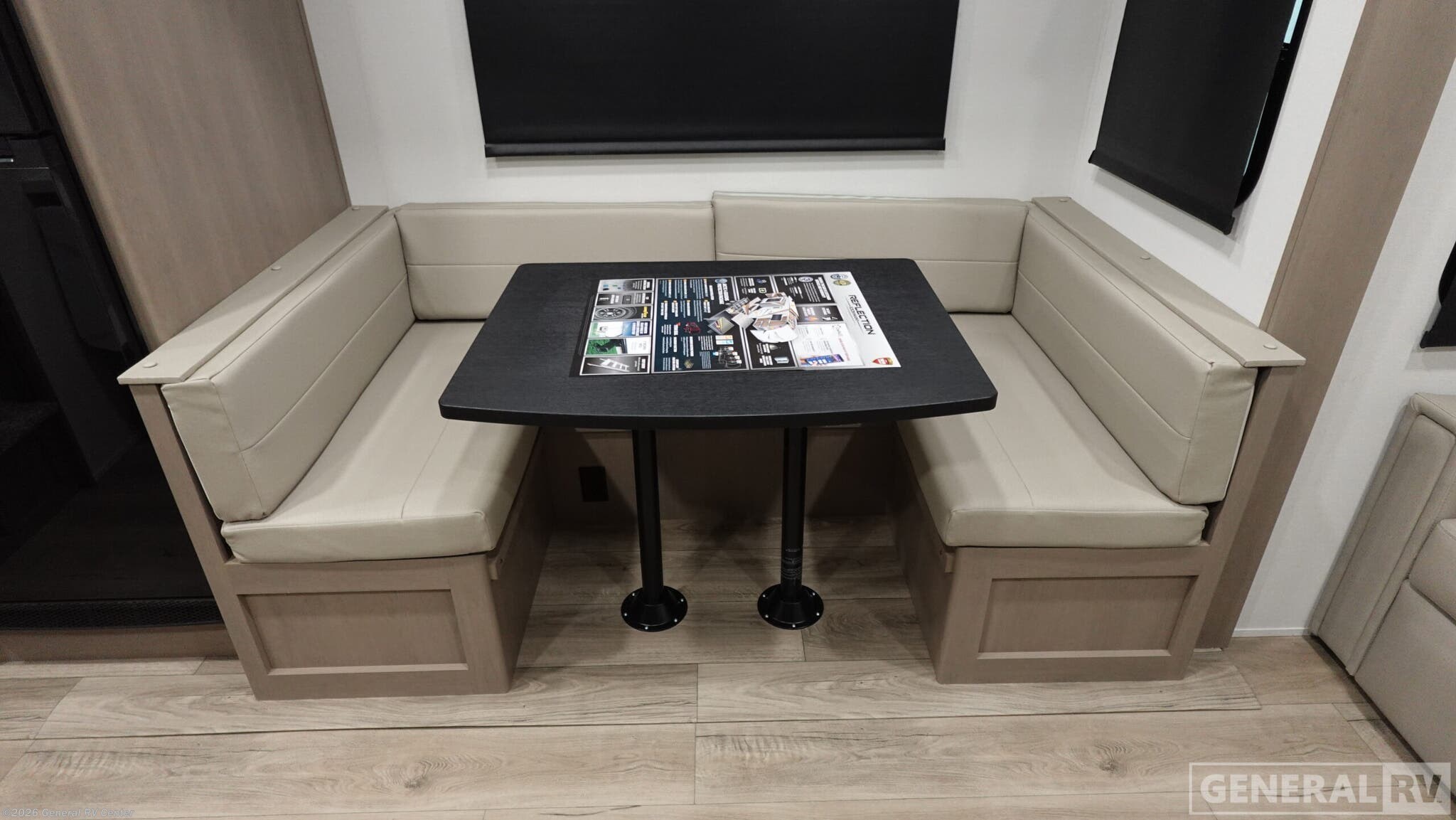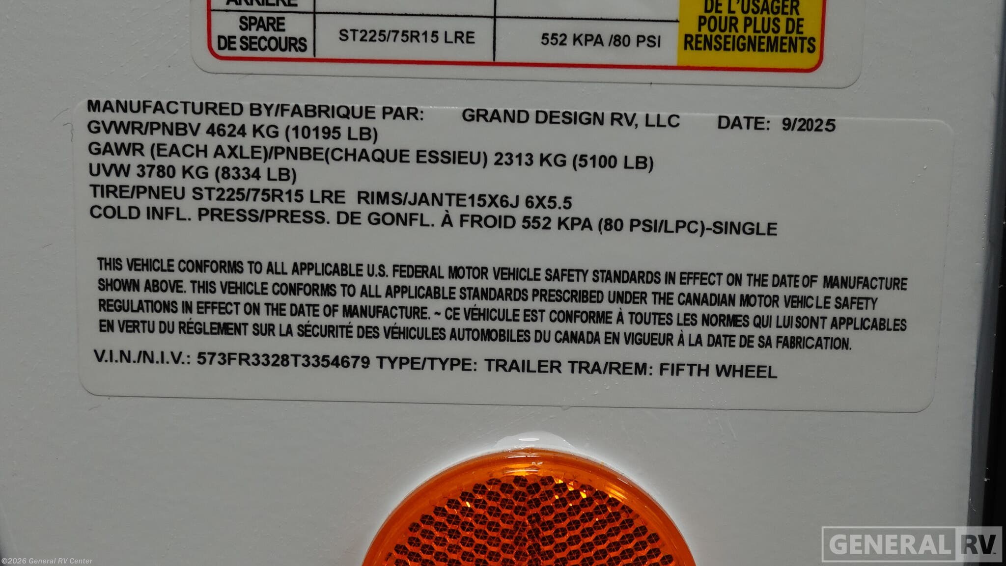 Experience the ultimate in family-friendly RV living with the 2026 Grand Design Reflection 100 Series 27BH. This spacious and versatile fifth wheel is designed to accommodate up to ten sleepers comfortably, making it perfect for family adventures or trips with friends. The thoughtful layout includes two double beds, a cozy queen bed, and convertible sleeping options, ensuring everyone has a comfortable place to rest after a day of exploring. The heart of the 27BH is its central kitchen and living area, featuring a full-size electric refrigerator and a three-burner cooktop, perfect for preparing meals on the go. The U-shaped dinette and tri-fold sofa offer ample seating for dining and relaxation, while the 40" TV provides entertainment for cozy nights in. The rear bunkhouse is a delightful retreat for the kids, offering them their own private space. With a 20 ft. powered retractable awning, you can effortlessly extend your living space outdoors, creating the perfect setting for enjoying the great outdoors. Practicality meets luxury with features like the center bath and rear bedroom, ensuring convenience and privacy. Ample storage, including unobstructed pass-through storage, means you can bring along all your adventure gear. With a robust GVWR of 10,195 lbs and a cargo capacity of 2,157 lbs, this RV is as capable as it is comfortable. Visit your nearest General RV dealership to explore the Reflection 27BH and start planning your next getaway.