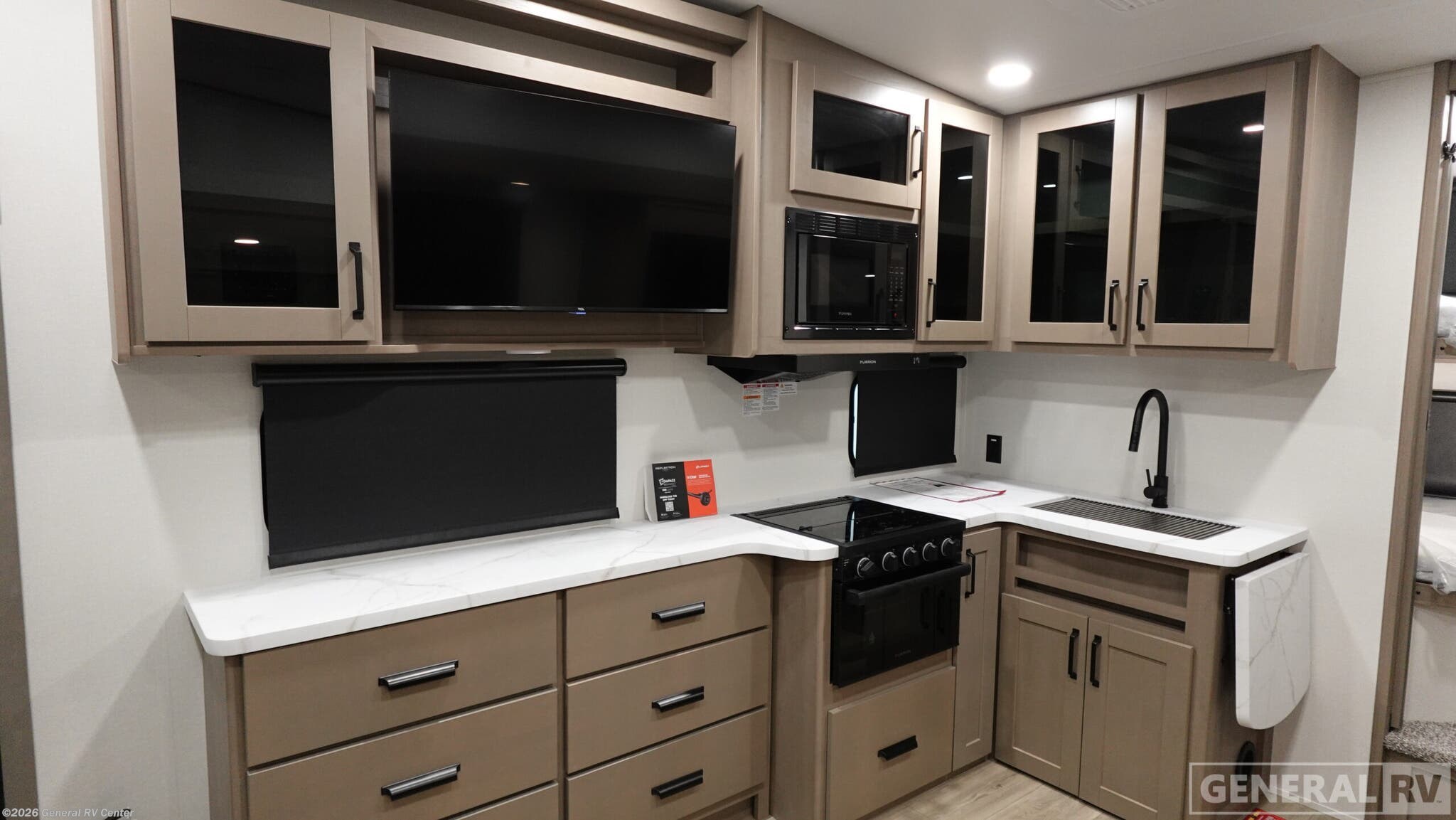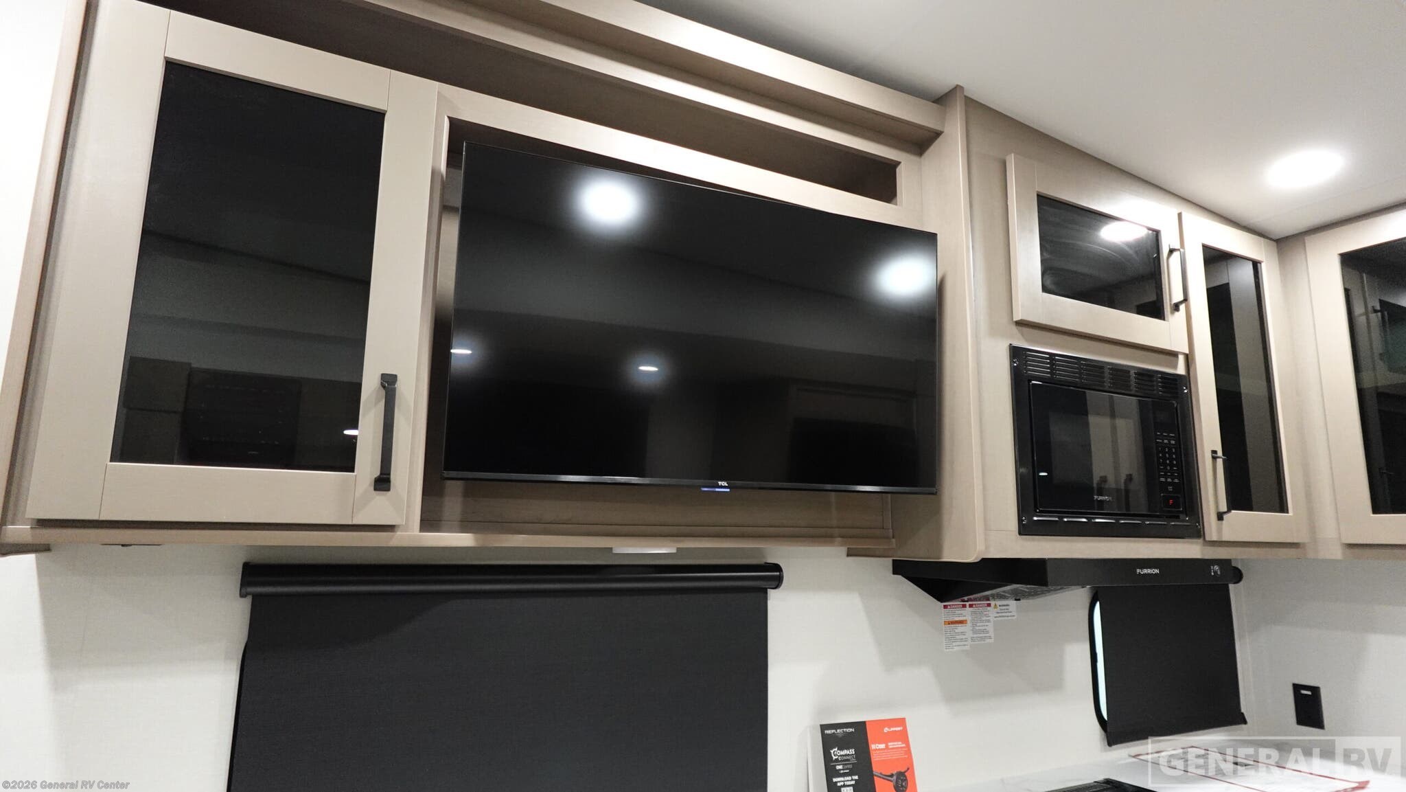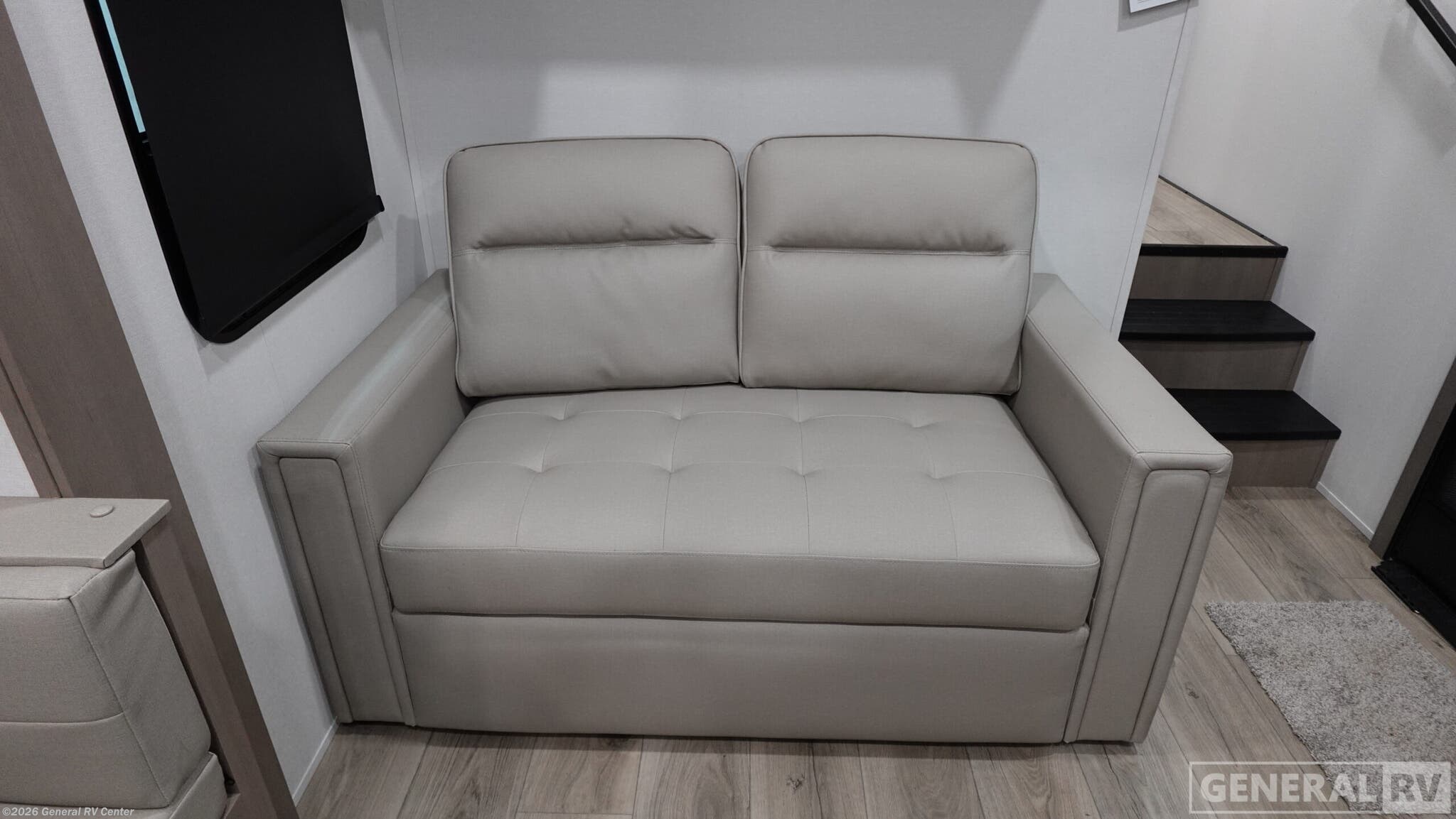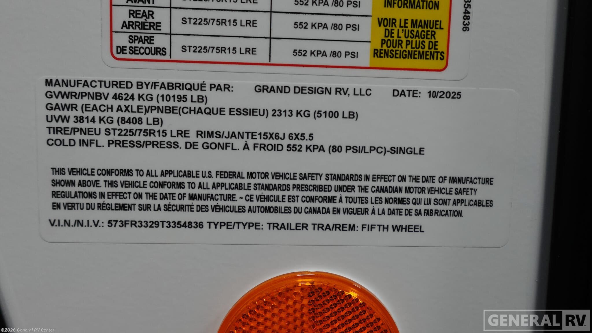 Experience the ultimate in family-friendly RV living with the 2026 Grand Design Reflection 100 Series 27BH. This spacious and versatile fifth wheel is designed to accommodate up to ten sleepers comfortably, making it perfect for family adventures or trips with friends. The thoughtful layout includes two double beds, a cozy queen bed, and convertible sleeping options, ensuring everyone has a comfortable place to rest after a day of exploring. The heart of the 27BH is its central kitchen and living area, featuring a full-size electric refrigerator and a three-burner cooktop, perfect for preparing meals on the go. The U-shaped dinette and tri-fold sofa offer ample seating for dining and relaxation, while the 40" TV provides entertainment for cozy nights in. The rear bunkhouse is a delightful retreat for the kids, offering them their own private space. With a 20 ft. powered retractable awning, you can effortlessly extend your living space outdoors, creating the perfect setting for enjoying the great outdoors. Practicality meets luxury with features like the center bath and rear bedroom, ensuring convenience and privacy. Ample storage, including unobstructed pass-through storage, means you can bring along all your adventure gear. With a robust GVWR of 10,195 lbs and a cargo capacity of 2,157 lbs, this RV is as capable as it is comfortable. Visit your nearest General RV dealership to explore the Reflection 27BH and start planning your next getaway.