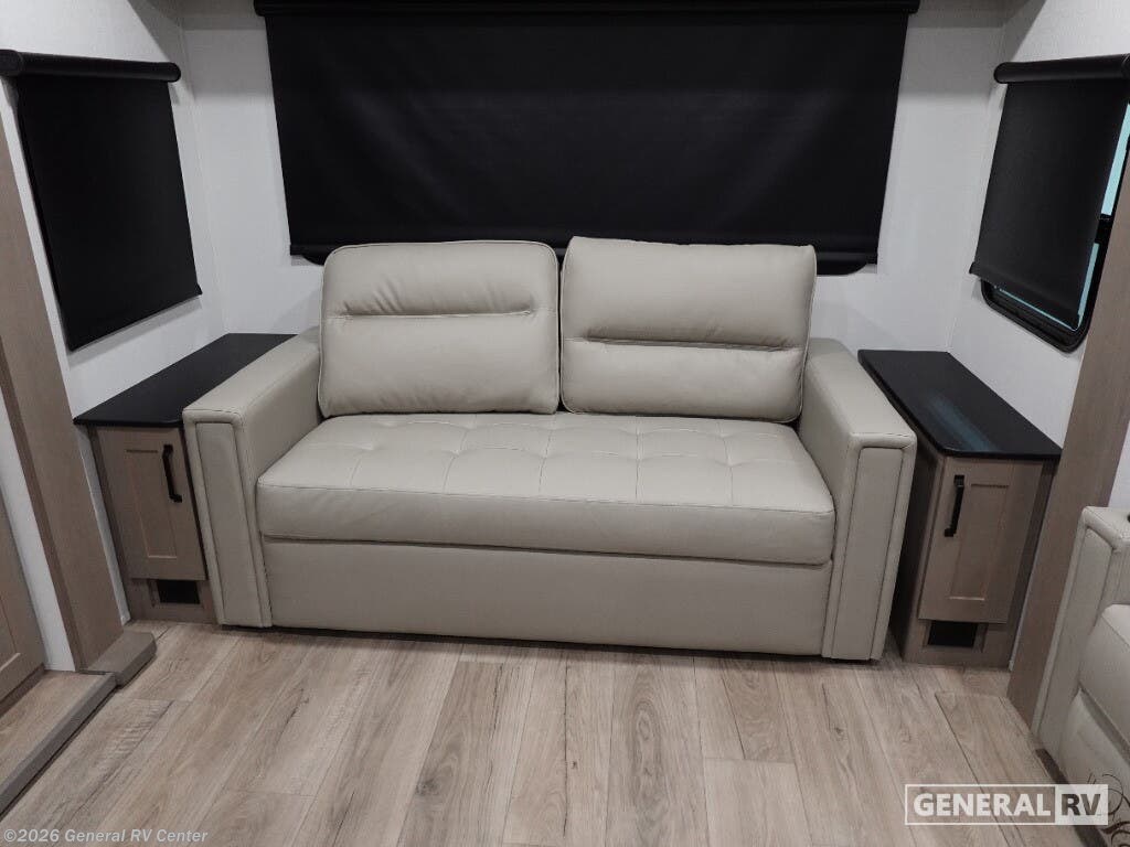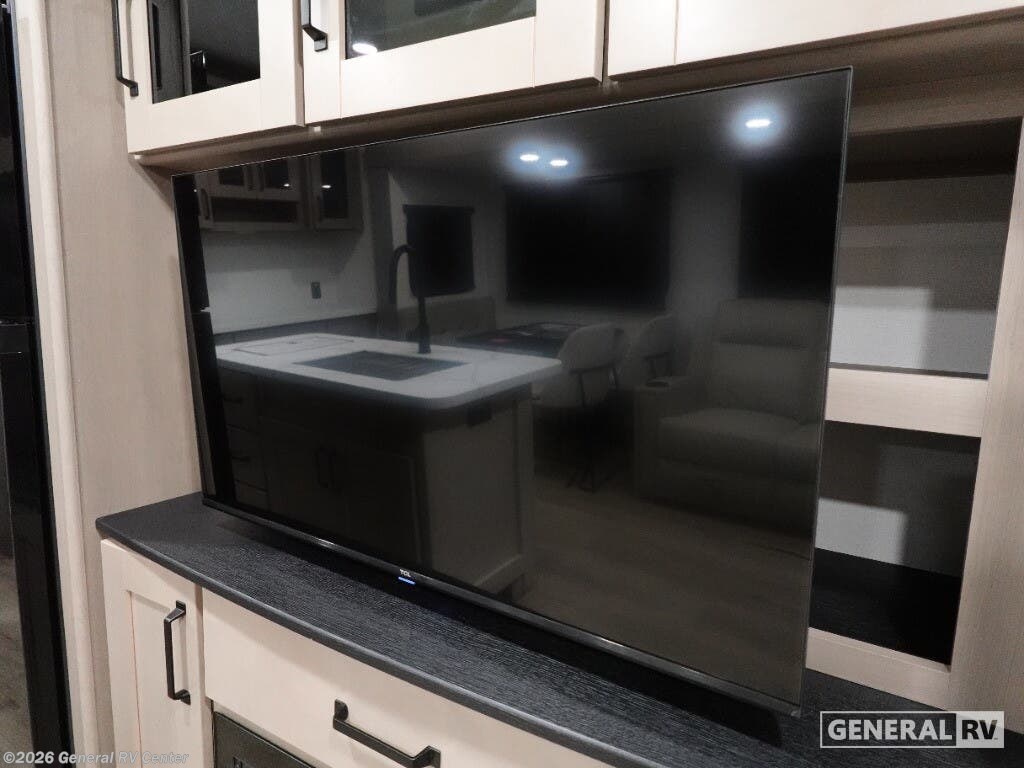 Discover the 2026 Grand Design Reflection 100 Series 28RL, a perfect blend of comfort and style for your next adventure. This RV offers a spacious and inviting atmosphere with its rear living area, where you can relax on the plush theater seating or the convertible tri-fold sofa. The elegant center kitchen, equipped with a full-size electric refrigerator and a three-burner cooktop, provides the ideal setting for preparing your favorite meals. The swivel dinette is perfect for cozy dinners or game nights, ensuring every moment is enjoyable. As you move towards the front, you'll find a serene bedroom featuring a luxurious queen bed, offering a restful retreat after a day of exploration. The center bath, with its stylish plastic and glass shower, ensures you have all the comforts of home on the road. With a 13-foot powered retractable awning, you can enjoy outdoor living, while the unobstructed pass-thru storage offers ample space for all your travel essentials. This RV is designed to provide a seamless blend of functionality and comfort, making it an excellent choice for both short getaways and extended journeys. For more details or to see this model in person, visit your nearest General RV dealership.