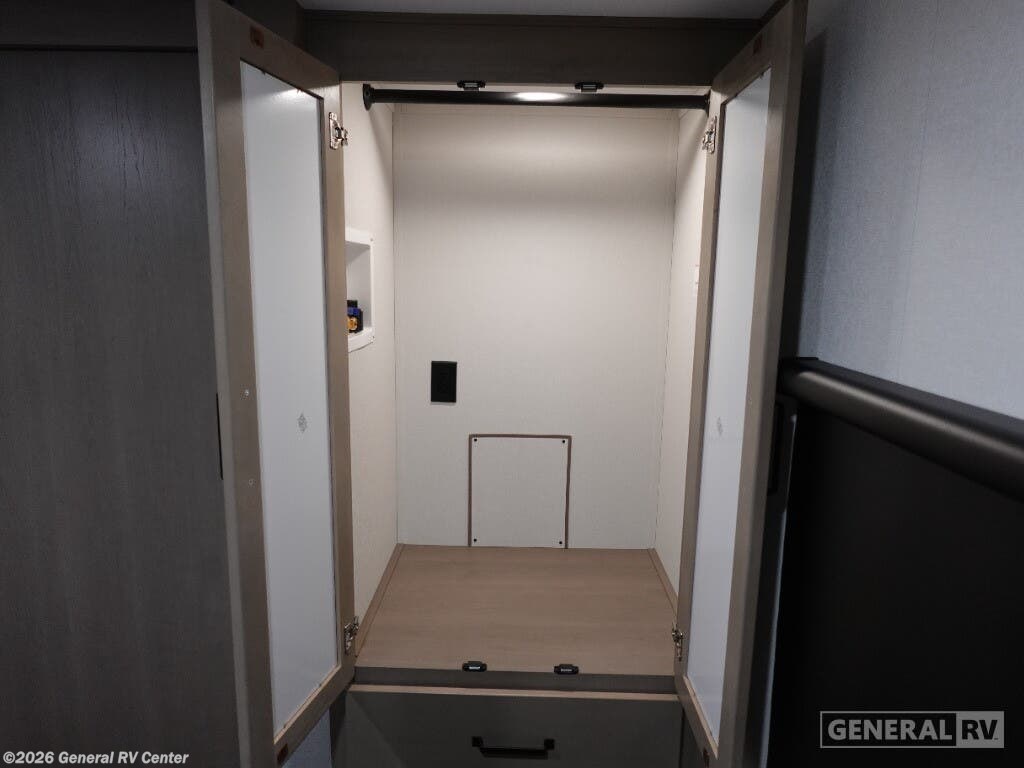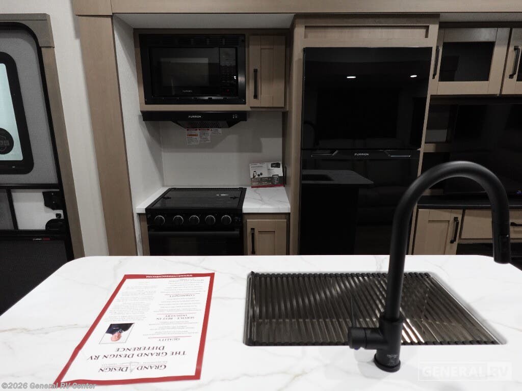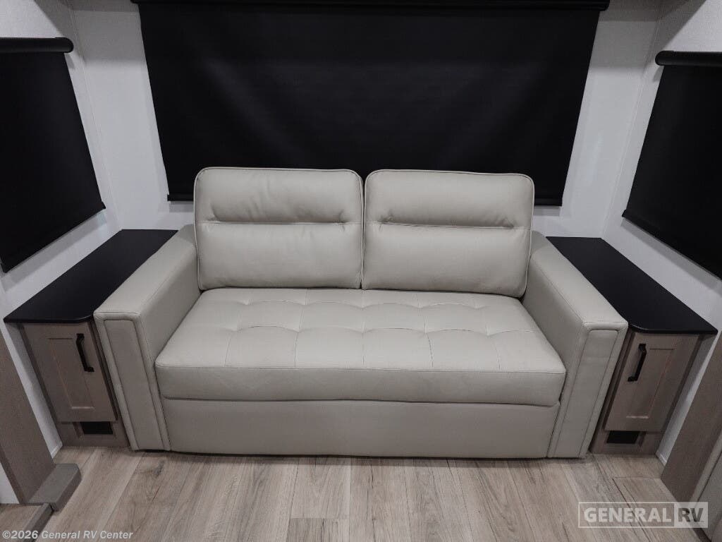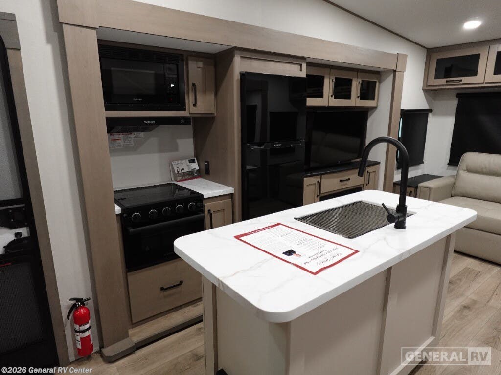 Discover the 2026 Grand Design Reflection 100 Series 28RL, a perfect blend of comfort and style for your next adventure. This RV offers a spacious and inviting atmosphere with its rear living area, where you can relax on the plush theater seating or the convertible tri-fold sofa. The elegant center kitchen, equipped with a full-size electric refrigerator and a three-burner cooktop, provides the ideal setting for preparing your favorite meals. The swivel dinette is perfect for cozy dinners or game nights, ensuring every moment is enjoyable. As you move towards the front, you'll find a serene bedroom featuring a luxurious queen bed, offering a restful retreat after a day of exploration. The center bath, with its stylish plastic and glass shower, ensures you have all the comforts of home on the road. With a 13-foot powered retractable awning, you can enjoy outdoor living, while the unobstructed pass-thru storage offers ample space for all your travel essentials. This RV is designed to provide a seamless blend of functionality and comfort, making it an excellent choice for both short getaways and extended journeys. For more details or to see this model in person, visit your nearest General RV dealership.