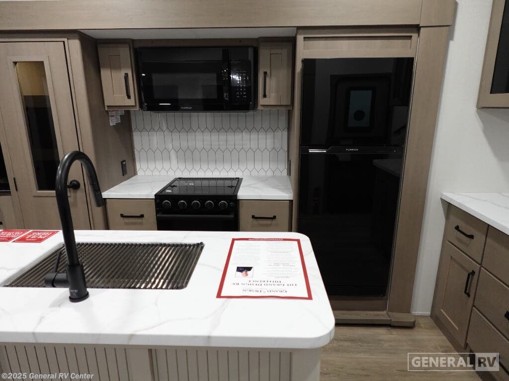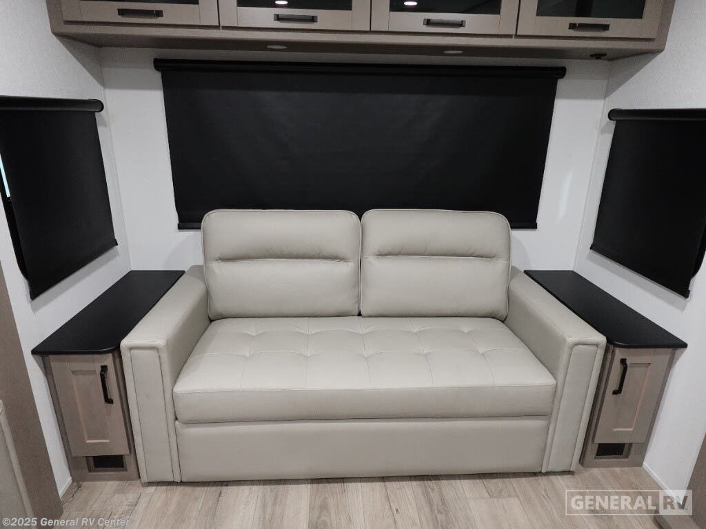 Experience the perfect blend of luxury and comfort with the 2026 Grand Design Reflection 150 Series 295RL. This fifth wheel redefines travel with its spacious design and thoughtful amenities. Measuring just under 33 feet, this RV offers a beautifully designed rear living area where you can unwind on the tri-fold sofa or enjoy the theater seating while watching your favorite shows. The center kitchen is a culinary delight, featuring a full-size electric refrigerator, a three-burner cooktop, and a convenient pantry, making meal preparation a breeze. The front bedroom is your private sanctuary, boasting a cozy queen bed and ample storage space. The center bath is thoughtfully designed with a stylish plastic and glass shower. With two powered retractable awnings, you can extend your living space outdoors and enjoy the fresh air. The Reflection 150 Series is not only about comfort but also practicality, with generous fresh, gray, and black water capacities, ensuring your adventures are uninterrupted. Discover the ultimate travel companion at your nearest General RV dealership.
