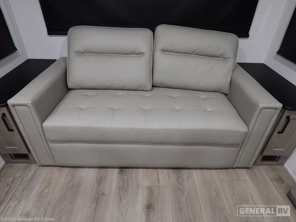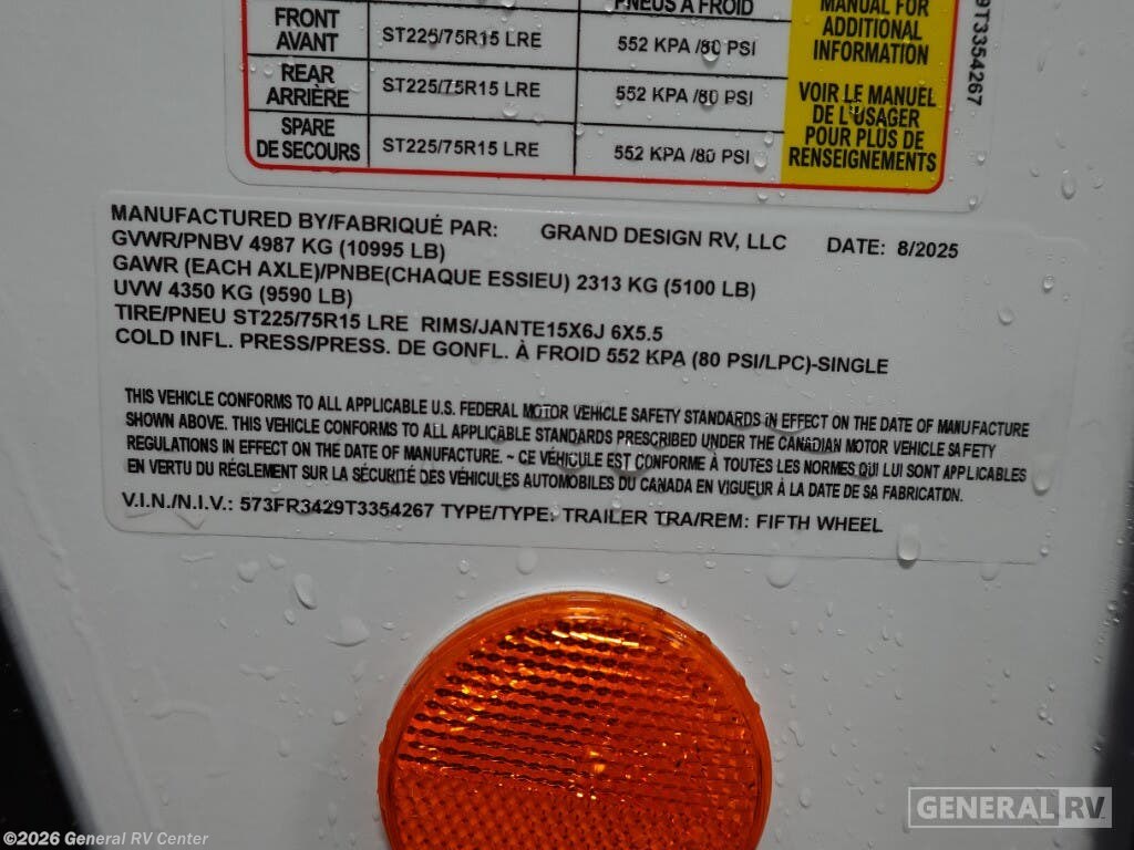 Experience the perfect blend of luxury and comfort with the 2026 Grand Design Reflection 150 Series 295RL. This fifth wheel redefines travel with its spacious design and thoughtful amenities. Measuring just under 33 feet, this RV offers a beautifully designed rear living area where you can unwind on the tri-fold sofa or enjoy the theater seating while watching your favorite shows. The center kitchen is a culinary delight, featuring a full-size electric refrigerator, a three-burner cooktop, and a convenient pantry, making meal preparation a breeze. The front bedroom is your private sanctuary, boasting a cozy queen bed and ample storage space. The center bath is thoughtfully designed with a stylish plastic and glass shower. With two powered retractable awnings, you can extend your living space outdoors and enjoy the fresh air. The Reflection 150 Series is not only about comfort but also practicality, with generous fresh, gray, and black water capacities, ensuring your adventures are uninterrupted. Discover the ultimate travel companion at your nearest General RV dealership.