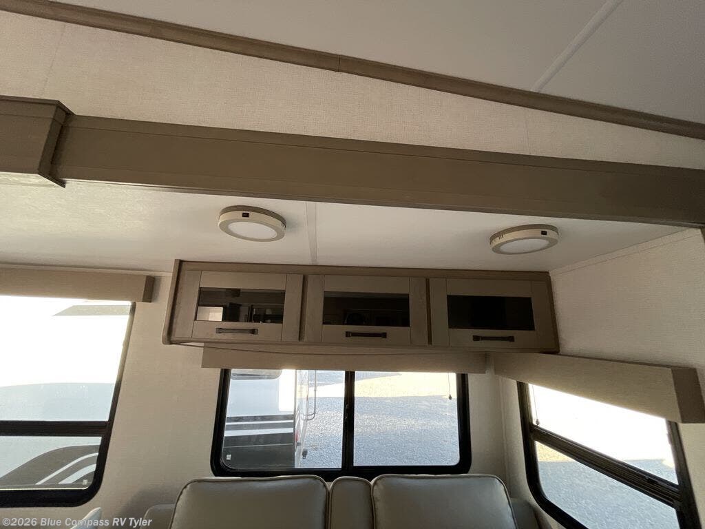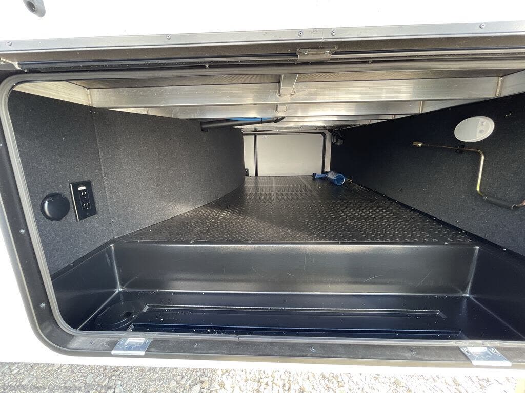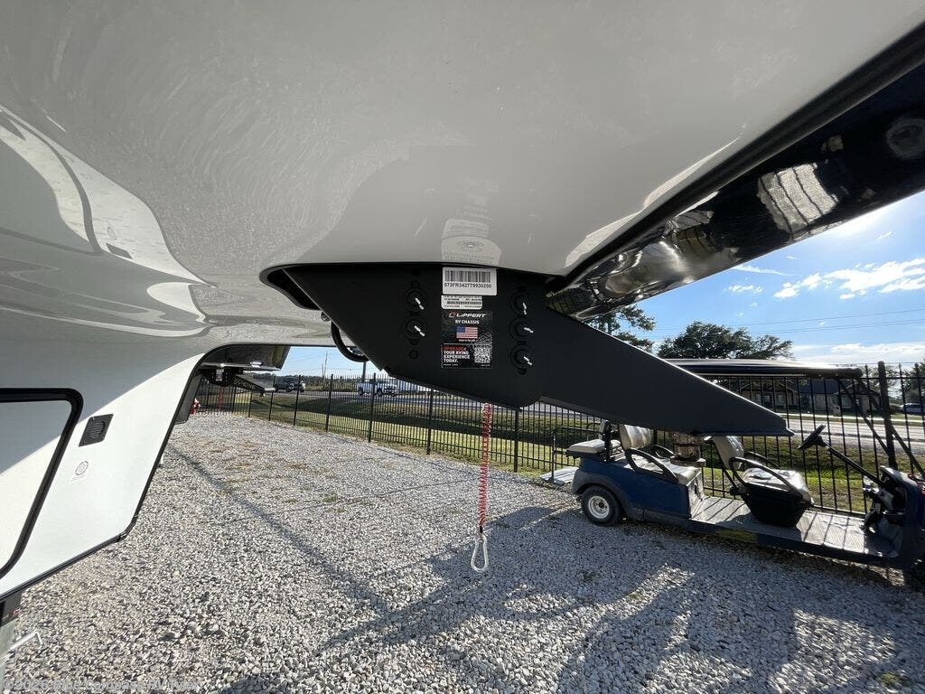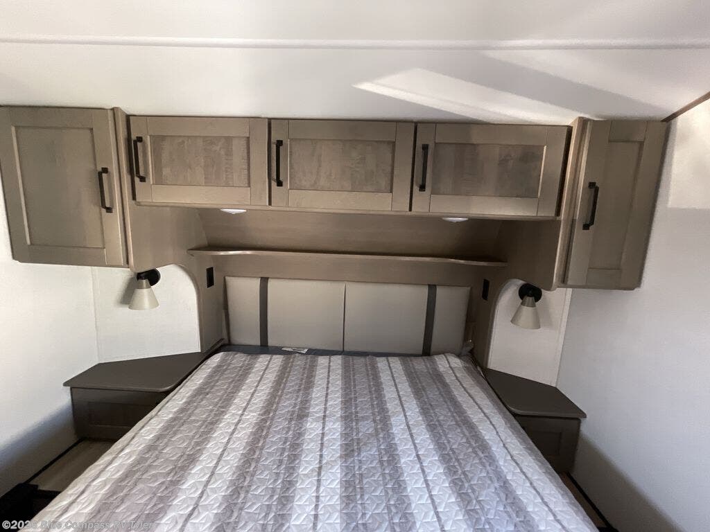Whether you travel for pleasure or work, you will love the spacious main living and kitchen area with a rear tri-fold sofa that doubles as extra sleeping space, and the theater seating directly across from the entertainment center with a 40" LED HDTV and a fireplace below. The kitchen island will make meal prepping and drying the dishes easier and the hutch is the perfect place to place your picture frames, nice dishes, and extra cooking items. There is even a pantry that is big enough to store all of your favorite snacks, dry ingredients and such. Outside you can enjoy two electric awnings that provide protection from the elements as you relax and visit with other RVers, and your camping chairs can easily be stored in the pass-through compartment. The double entry bathroom is convenient especially at night when you can slide the door to enter from the front master bedroom. You will find plenty of storage for your clothing and gear, plus the bedroom slide out gives you drawers and linen storage that stretches into the full bathroom.