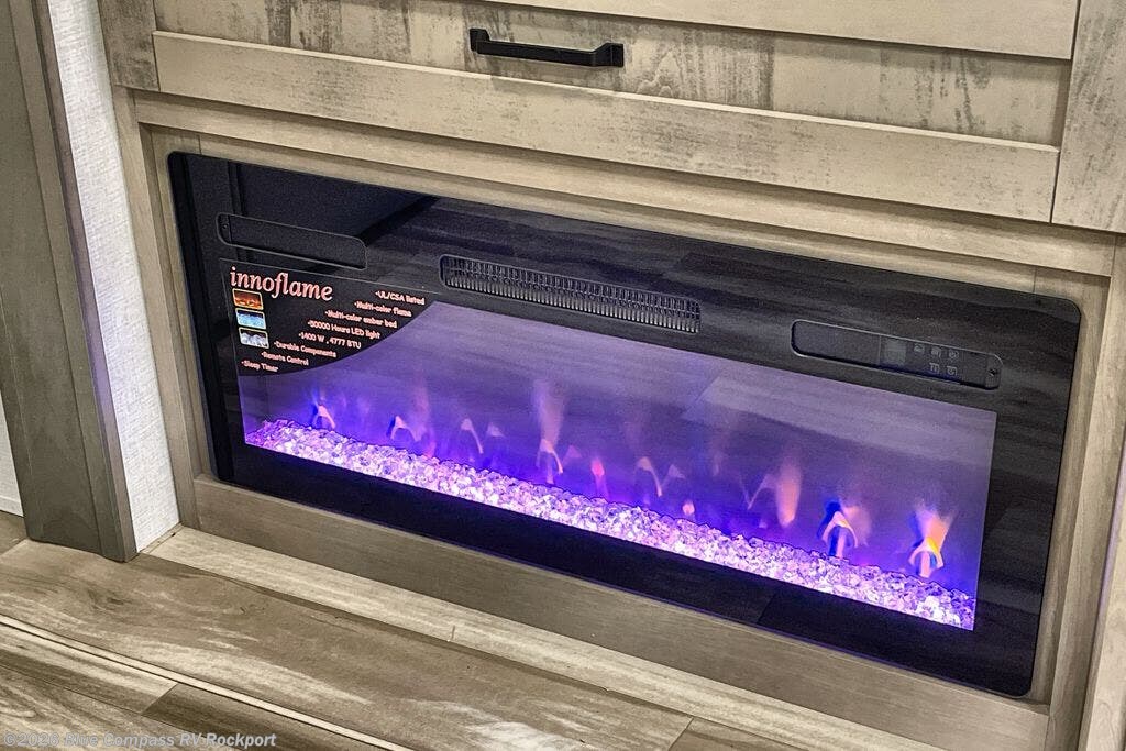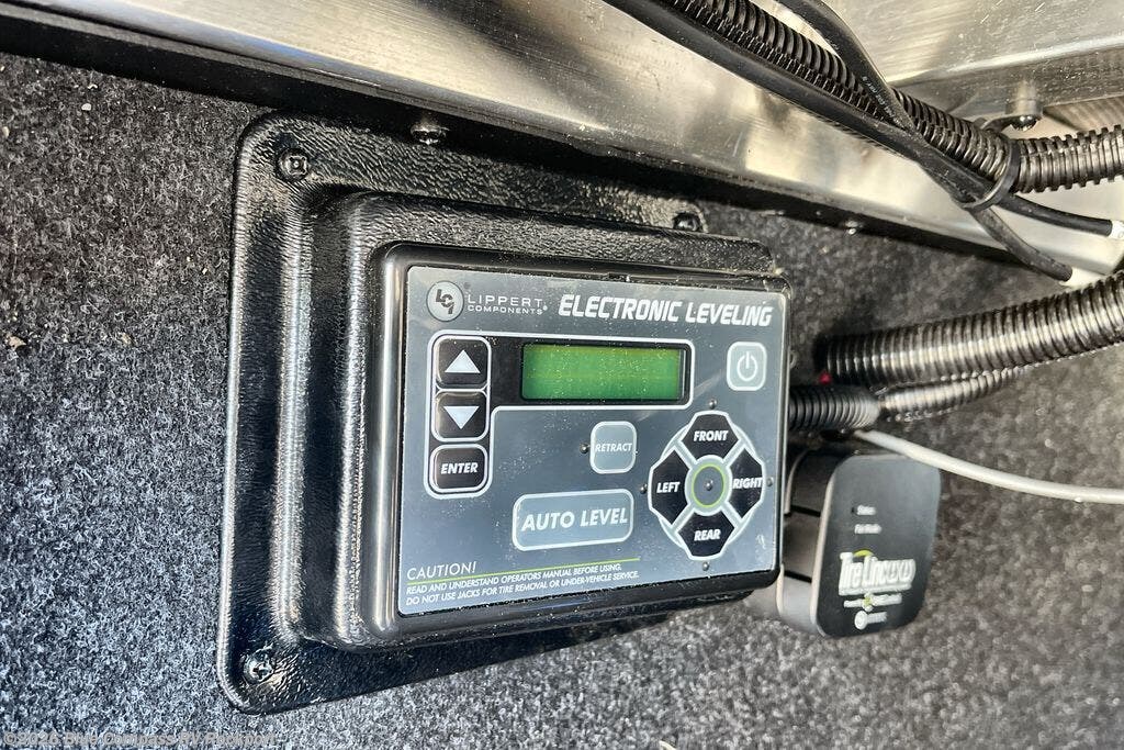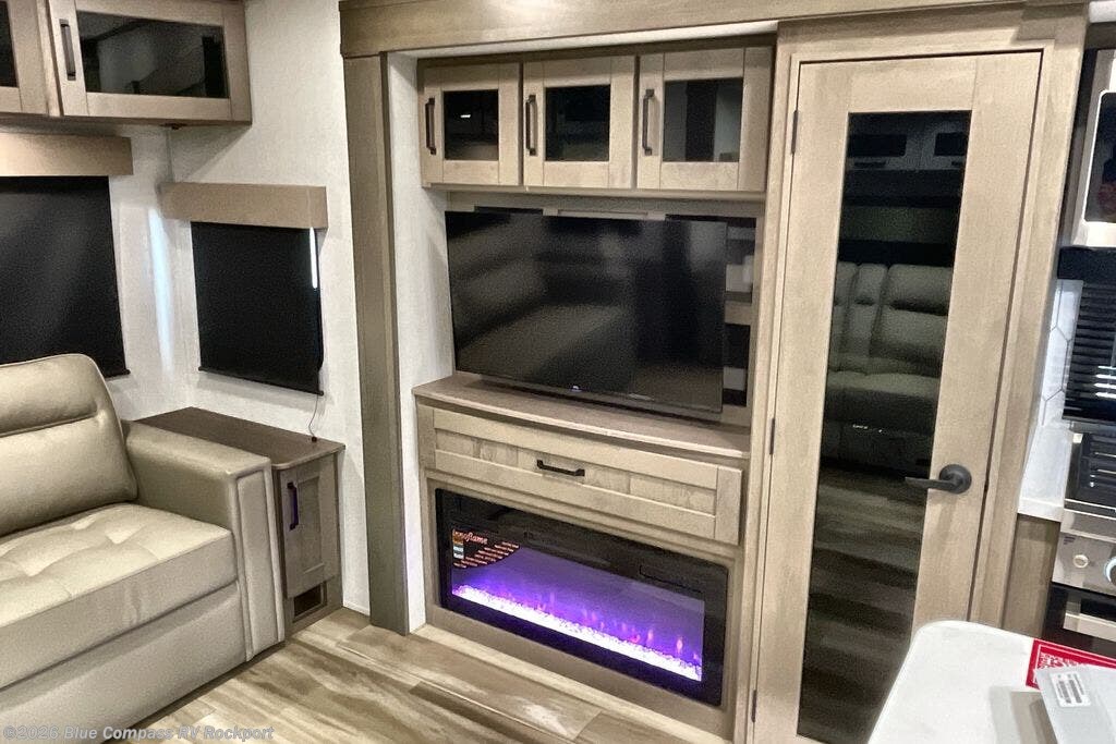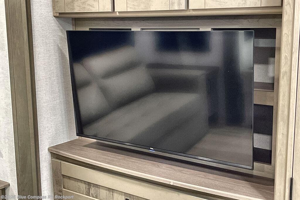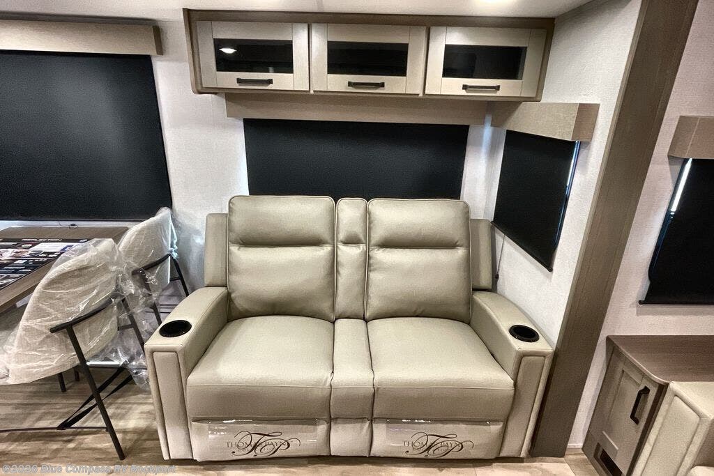 Whether you travel for pleasure or work, you will love the spacious main living and kitchen area with a rear tri-fold sofa that doubles as extra sleeping space, and the theater seating directly across from the entertainment center with a 40" LED HDTV and a fireplace below. The kitchen island will make meal prepping and drying the dishes easier and the hutch is the perfect place to place your picture frames, nice dishes, and extra cooking items. There is even a pantry that is big enough to store all of your favorite snacks, dry ingredients and such. Outside you can enjoy two electric awnings that provide protection from the elements as you relax and visit with other RVers, and your camping chairs can easily be stored in the pass-through compartment. The double entry bathroom is convenient especially at night when you can slide the door to enter from the front master bedroom. You will find plenty of storage for your clothing and gear, plus the bedroom slide out gives you drawers and linen storage that stretches into the full bathroom.