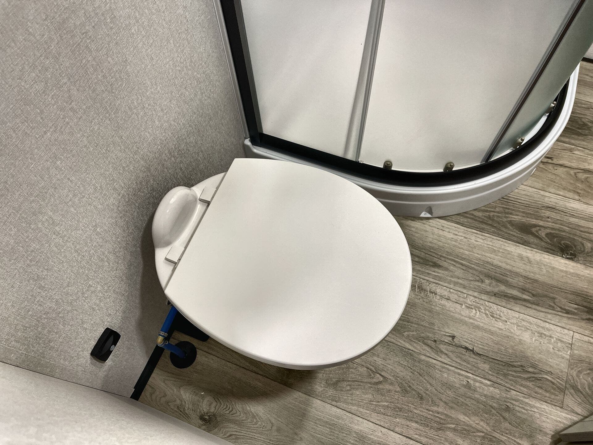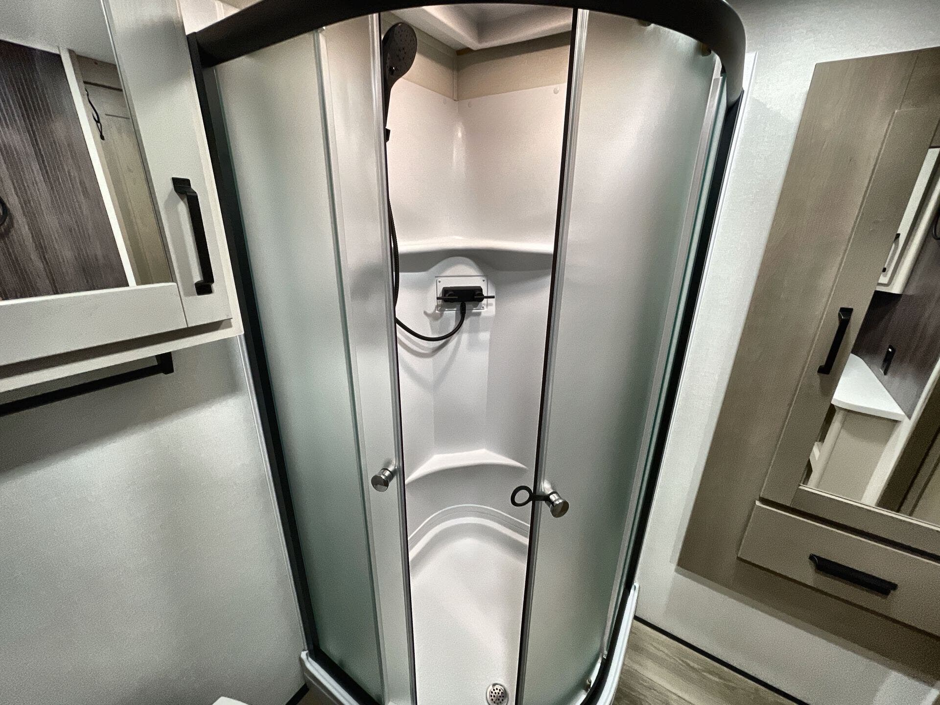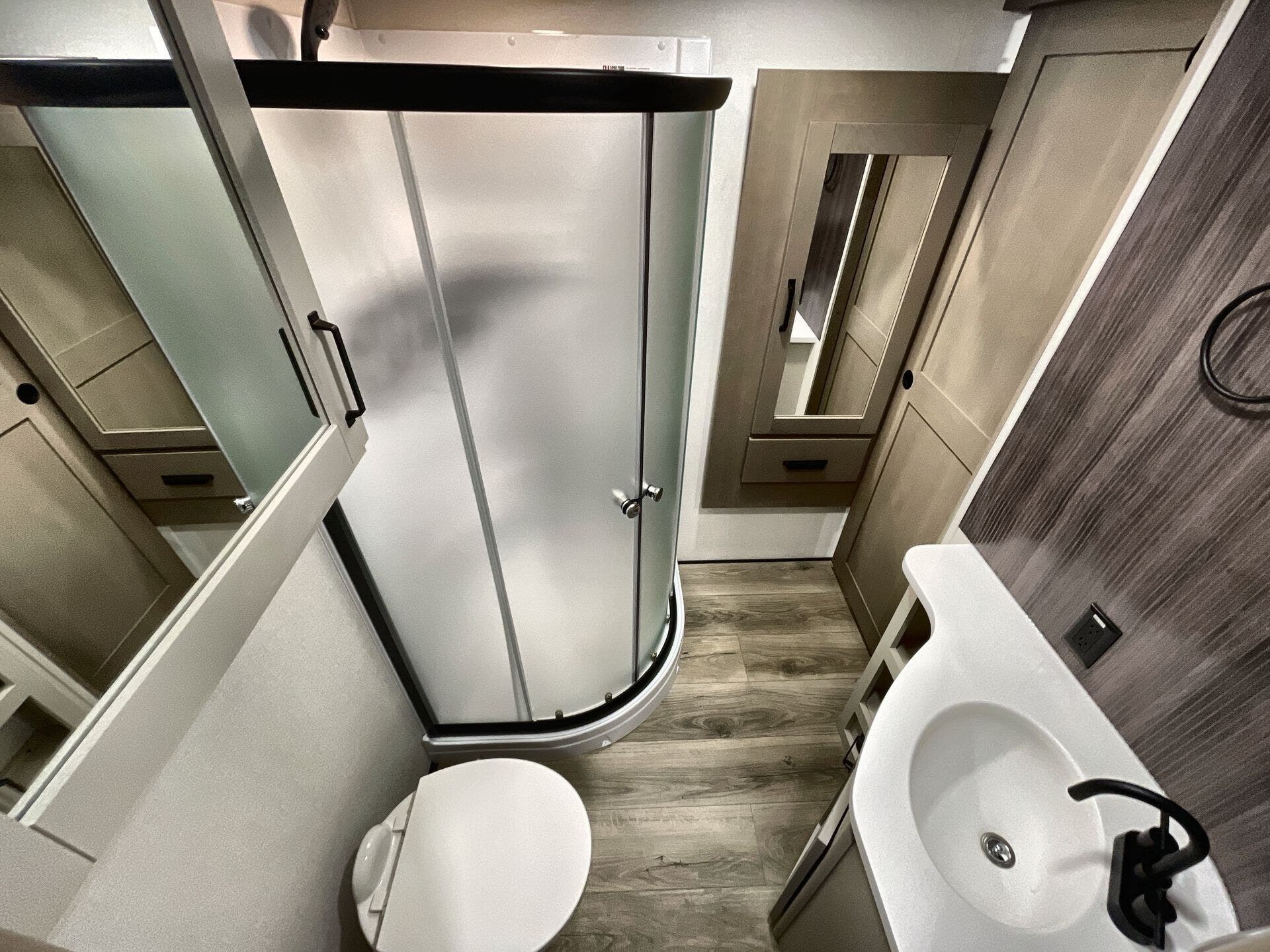 Booth Dinette, Dinette, Hide-A-Bed, Medicine Cabinet, Shower, Solid Surface Countertops, Toilet, Vanity