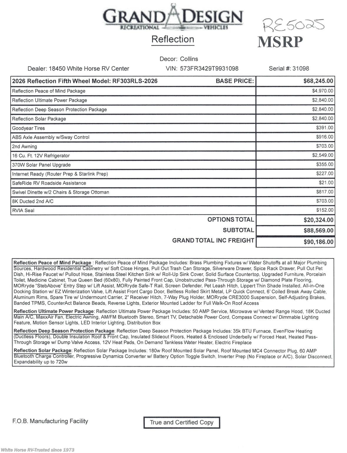 Request More Info on this 2026 Grand Design Reflection 303RLS Offered for sale by White Horse RV Center