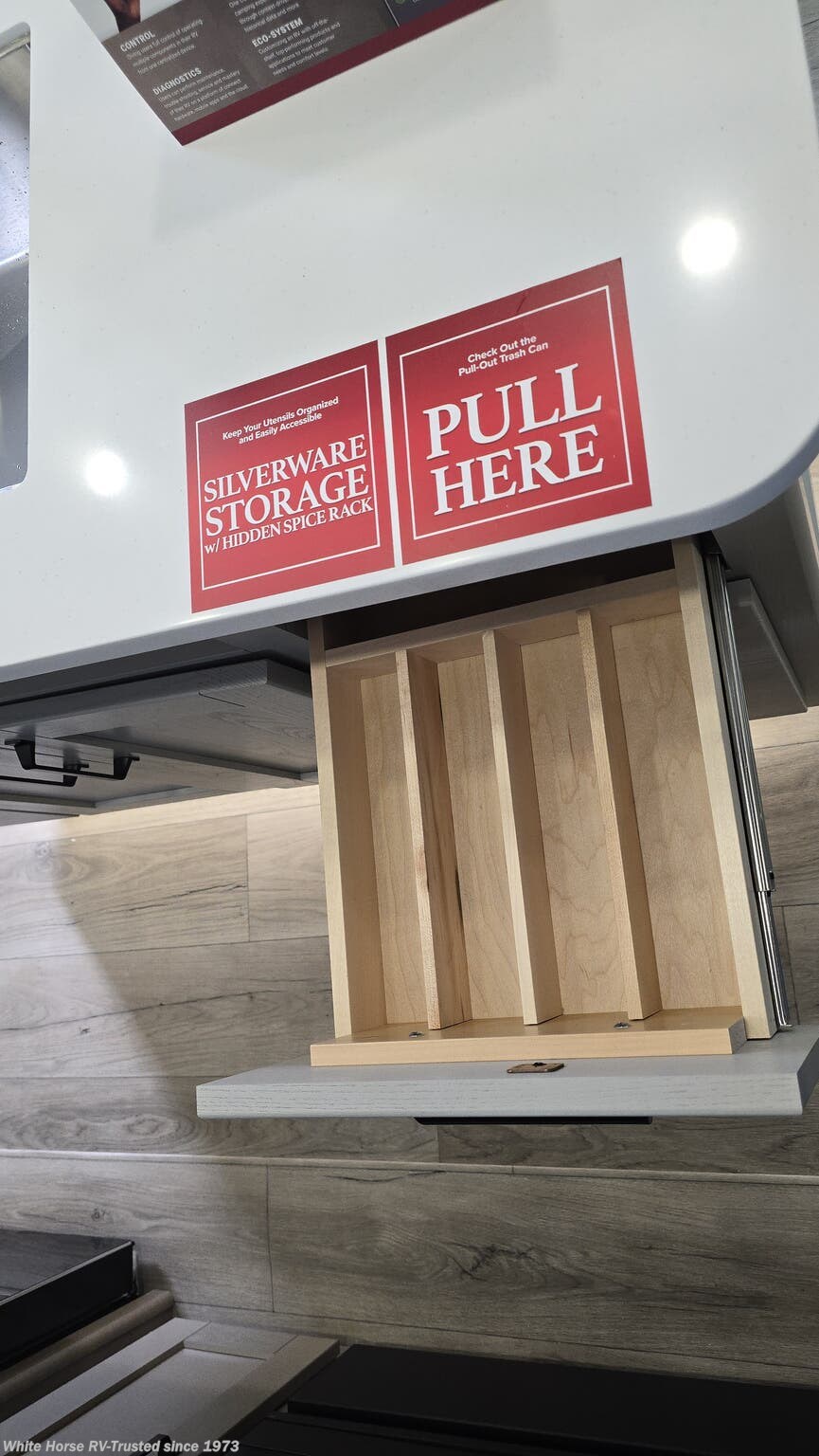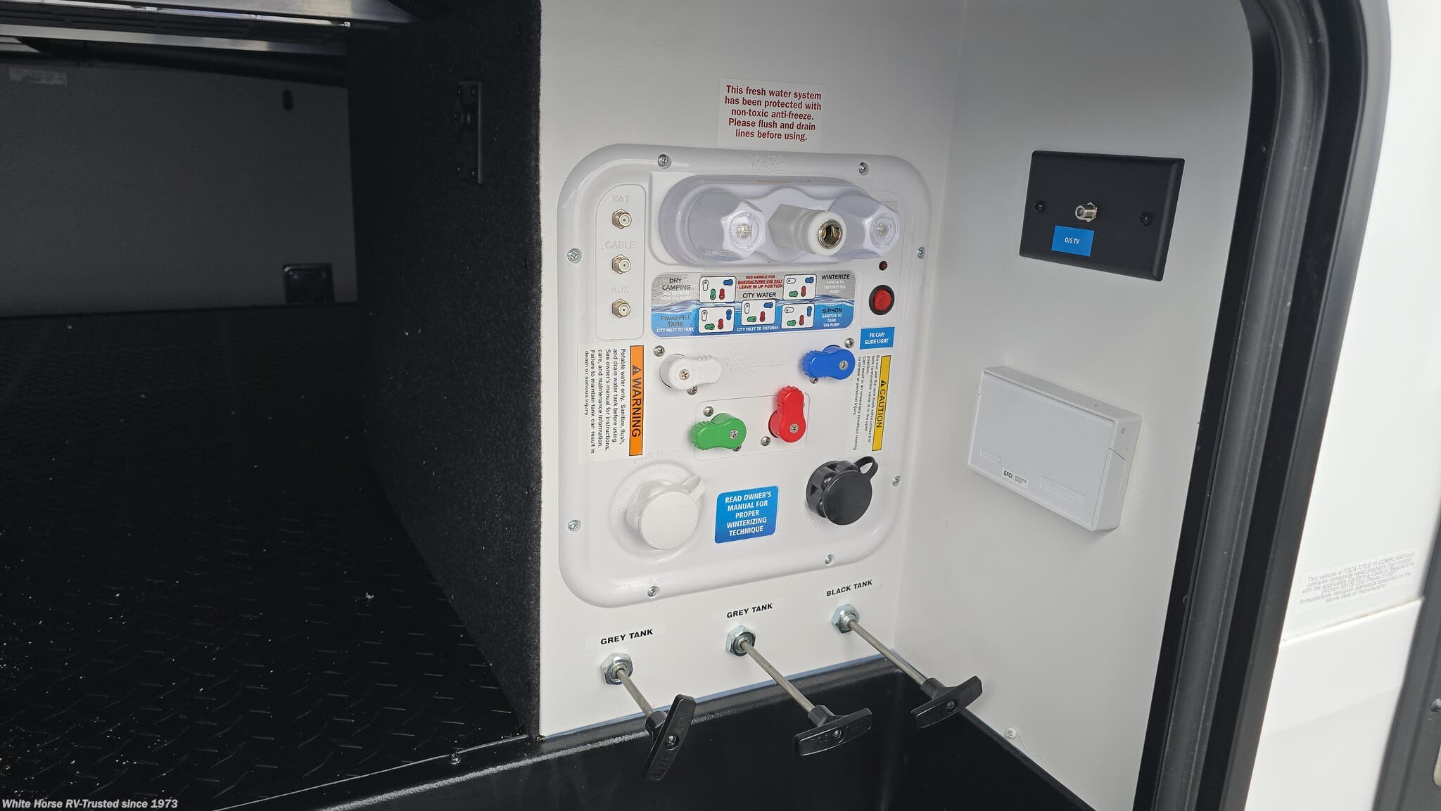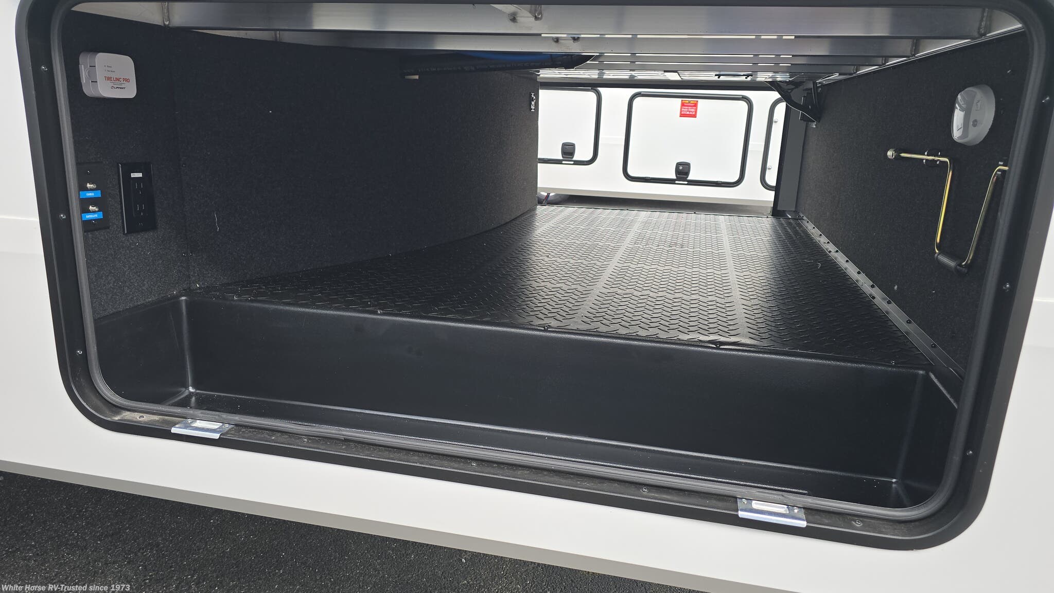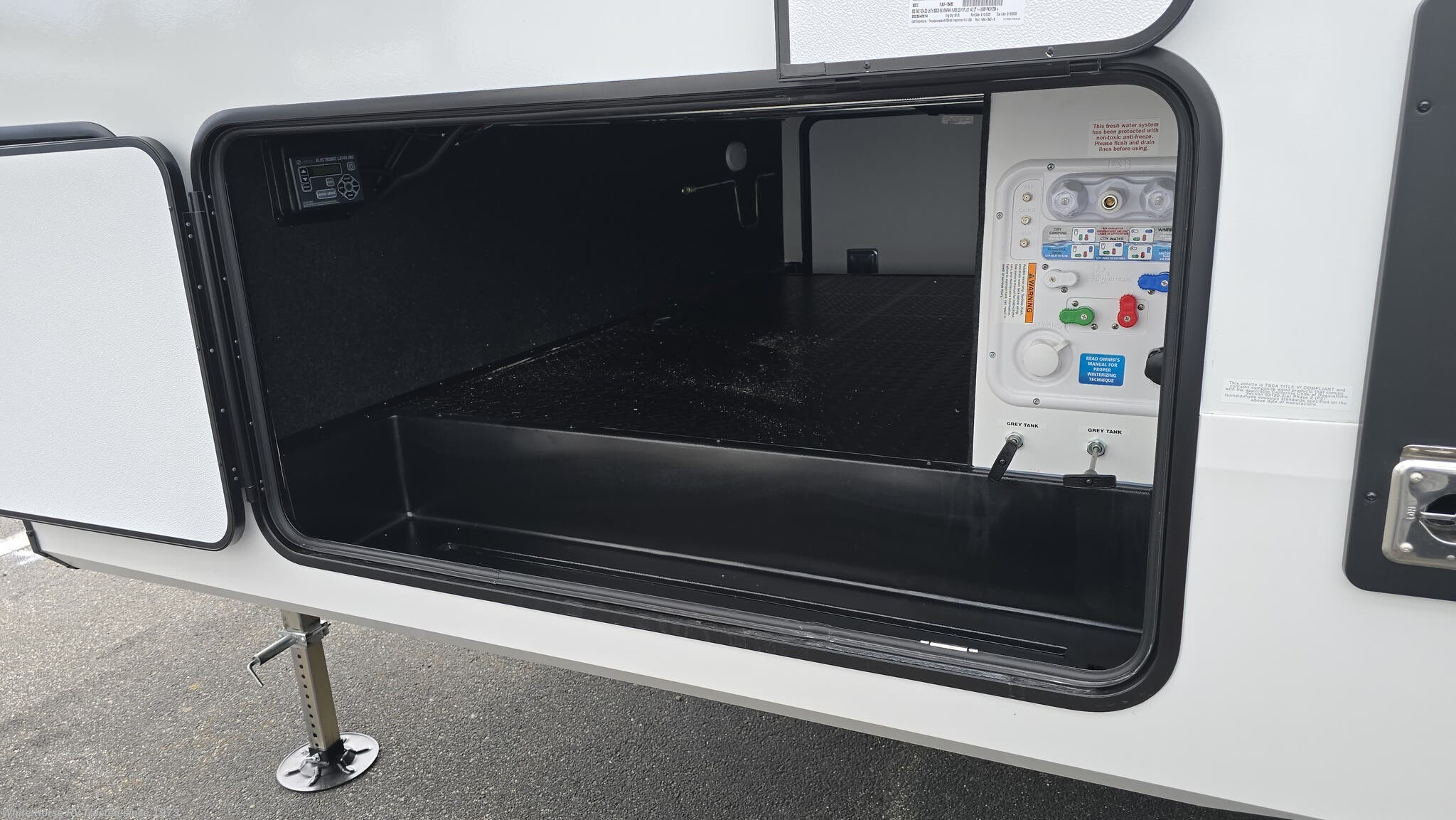 Outdoor Living: Dual power awnings, LP quick connect, coax TV hookup, and outside storage to maximize your campsite experience