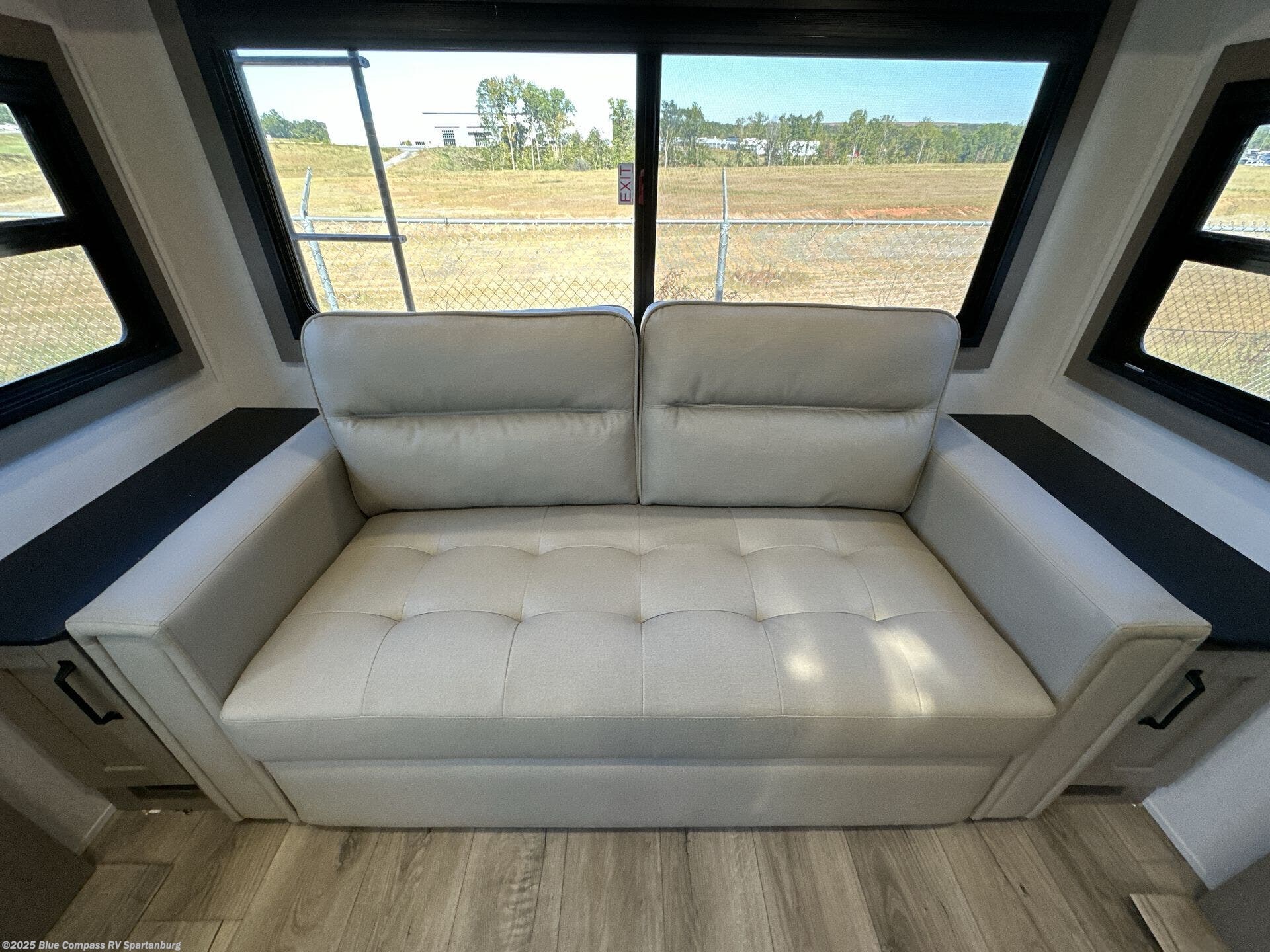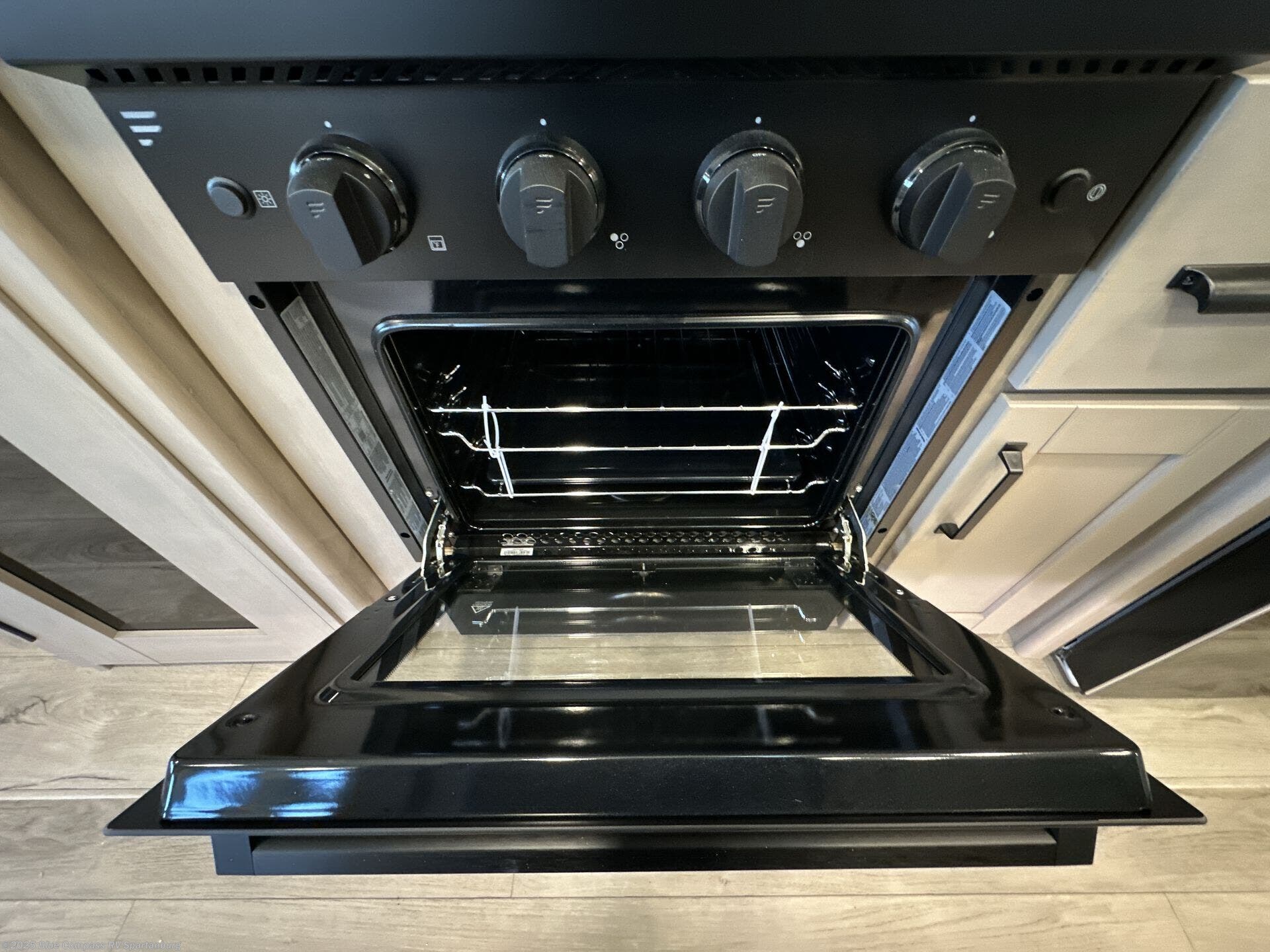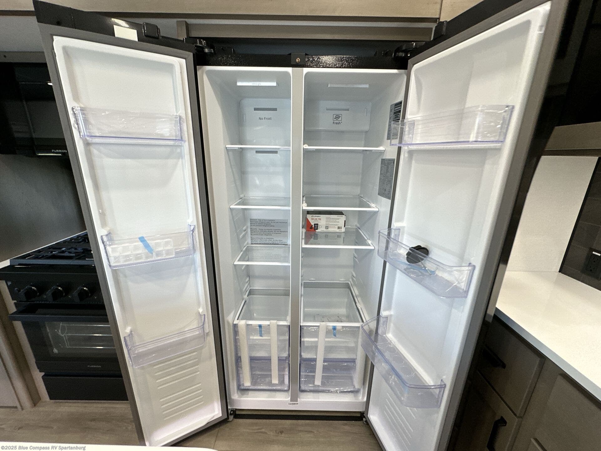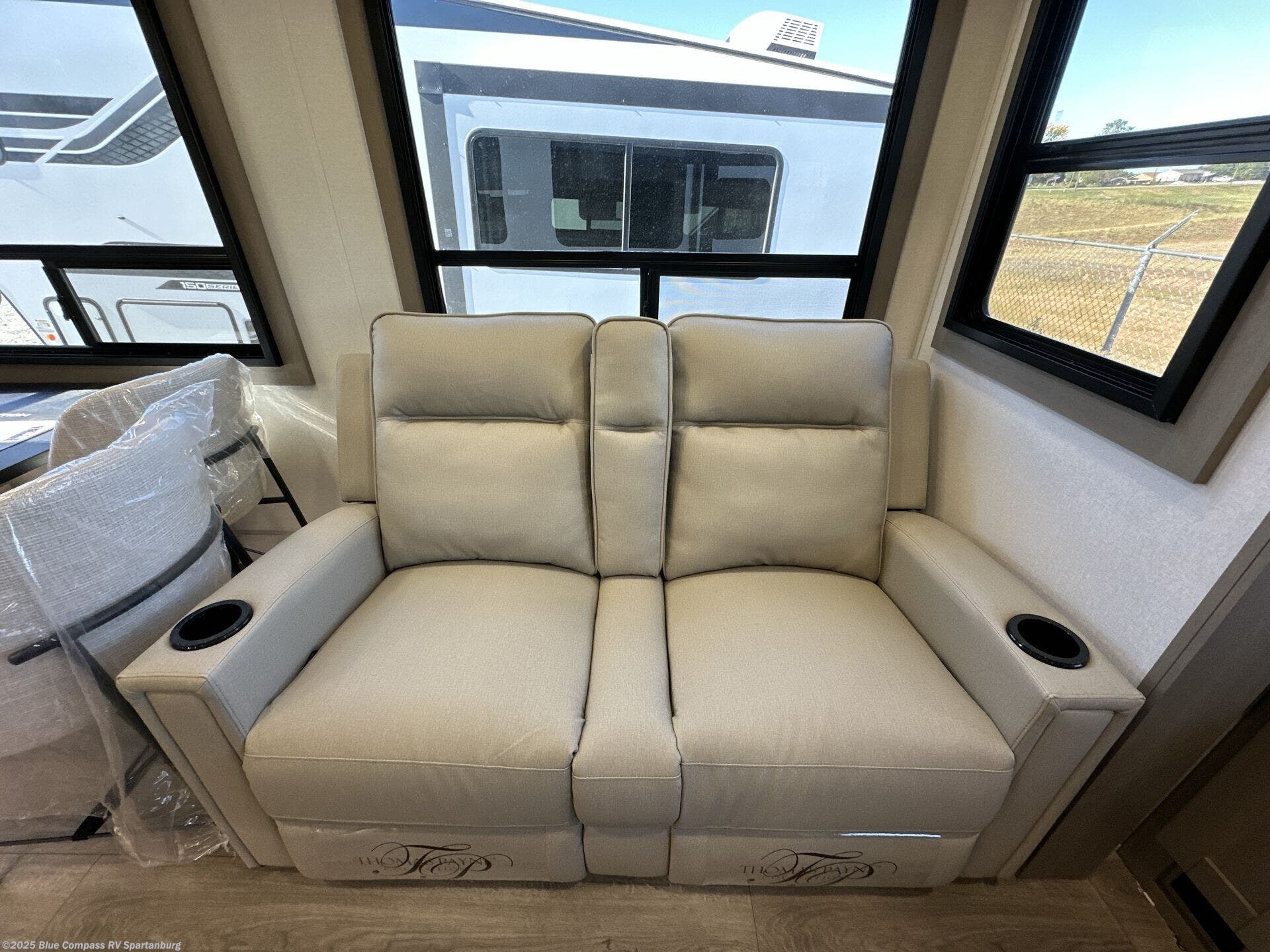 Whether you travel for pleasure or work, you will love the spacious main living and kitchen area with a rear tri-fold sofa that doubles as extra sleeping space, and the theater seating directly across from the entertainment center with a 40" LED HDTV and a fireplace below. The kitchen island will make meal prepping and drying the dishes easier and the hutch is the perfect place to place your picture frames, nice dishes, and extra cooking items. There is even a pantry that is big enough to store all of your favorite snacks, dry ingredients and such. Outside you can enjoy two electric awnings that provide protection from the elements as you relax and visit with other RVers, and your camping chairs can easily be stored in the pass-through compartment. The double entry bathroom is convenient especially at night when you can slide the door to enter from the front master bedroom. You will find plenty of storage for your clothing and gear, plus the bedroom slide out gives you drawers and linen storage that stretches into the full bathroom.
