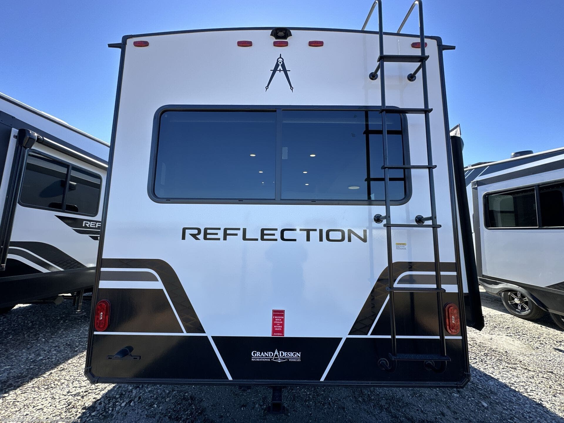 With any Reflection fifth wheel by Grand Design, you will have a solar panel for off-grid camping and a 60 amp charge controller and inverter prep, a Universal All-In-One docking station, unobstructed pass-through storage, and Goodyear Endurance tires. Each is constructed of gel coat exterior sidewalls, residential 5" truss rafters, walk-on roof decking, a fiberglass and radiant foil roof and front cap insulation plus laminated aluminum framed side walls, roof and end walls in slide rooms. Head inside to enjoy residential hardwood cabinet doors, premium Congoleum flooring, a spacious shower with a glass door, and many more comforts!