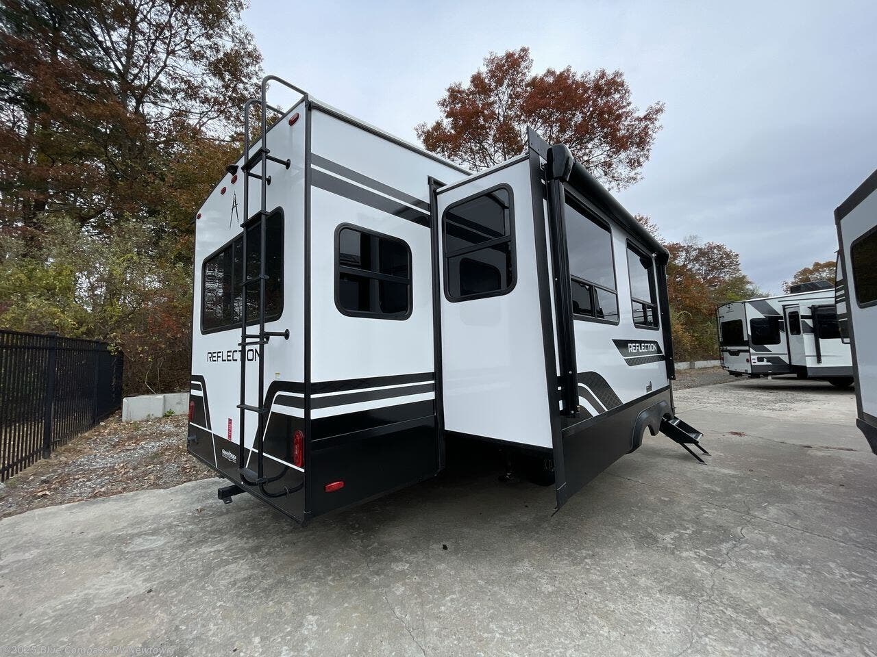 With any Reflection fifth wheel by Grand Design, you will have a solar panel for off-grid camping and a 60 amp charge controller and inverter prep, a Universal All-In-One docking station, unobstructed pass-through storage, and Goodyear Endurance tires. Each is constructed of gel coat exterior sidewalls, residential 5" truss rafters, walk-on roof decking, a fiberglass and radiant foil roof and front cap insulation plus laminated aluminum framed side walls, roof and end walls in slide rooms. Head inside to enjoy residential hardwood cabinet doors, premium Congoleum flooring, a spacious shower with a glass door, and many more comforts!