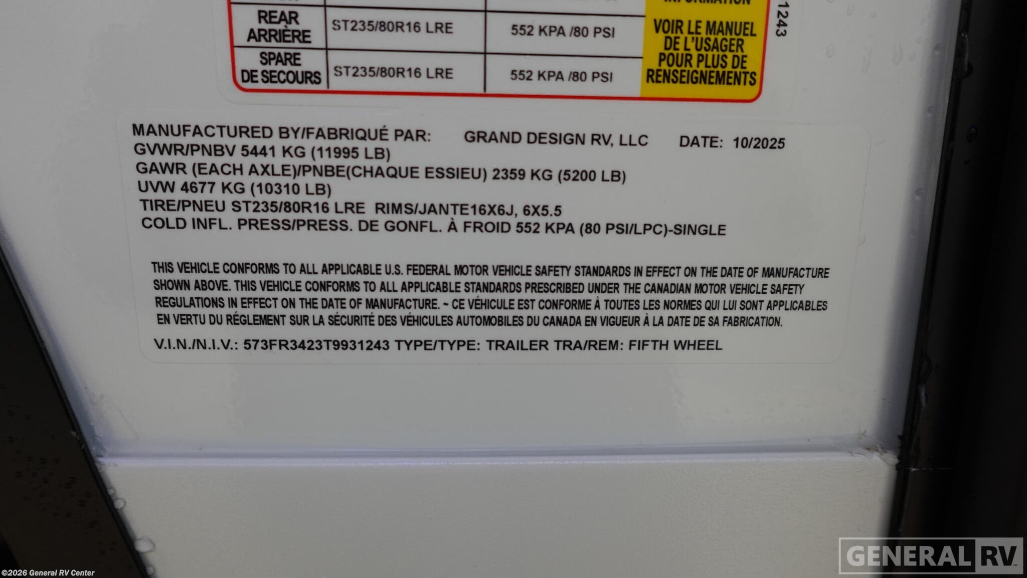 - VIN573FR3423T9931243