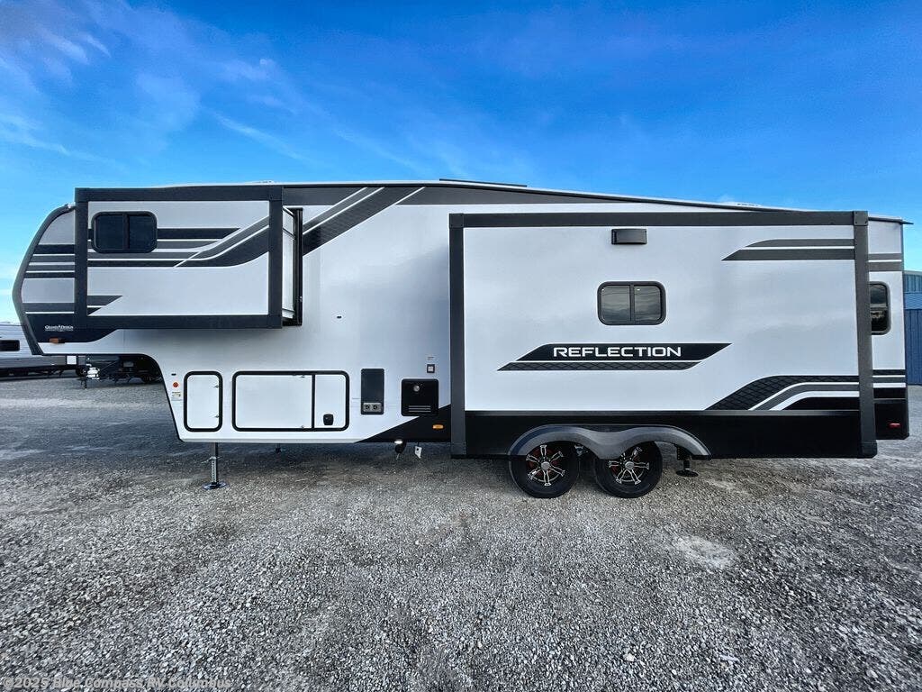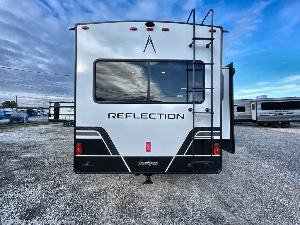 With any Reflection fifth wheel by Grand Design, you will have a solar panel for off-grid camping and a 60 amp charge controller and inverter prep, a Universal All-In-One docking station, unobstructed pass-through storage, and Goodyear Endurance tires. Each is constructed of gel coat exterior sidewalls, residential 5" truss rafters, walk-on roof decking, a fiberglass and radiant foil roof and front cap insulation plus laminated aluminum framed side walls, roof and end walls in slide rooms. Head inside to enjoy residential hardwood cabinet doors, premium Congoleum flooring, a spacious shower with a glass door, and many more comforts!