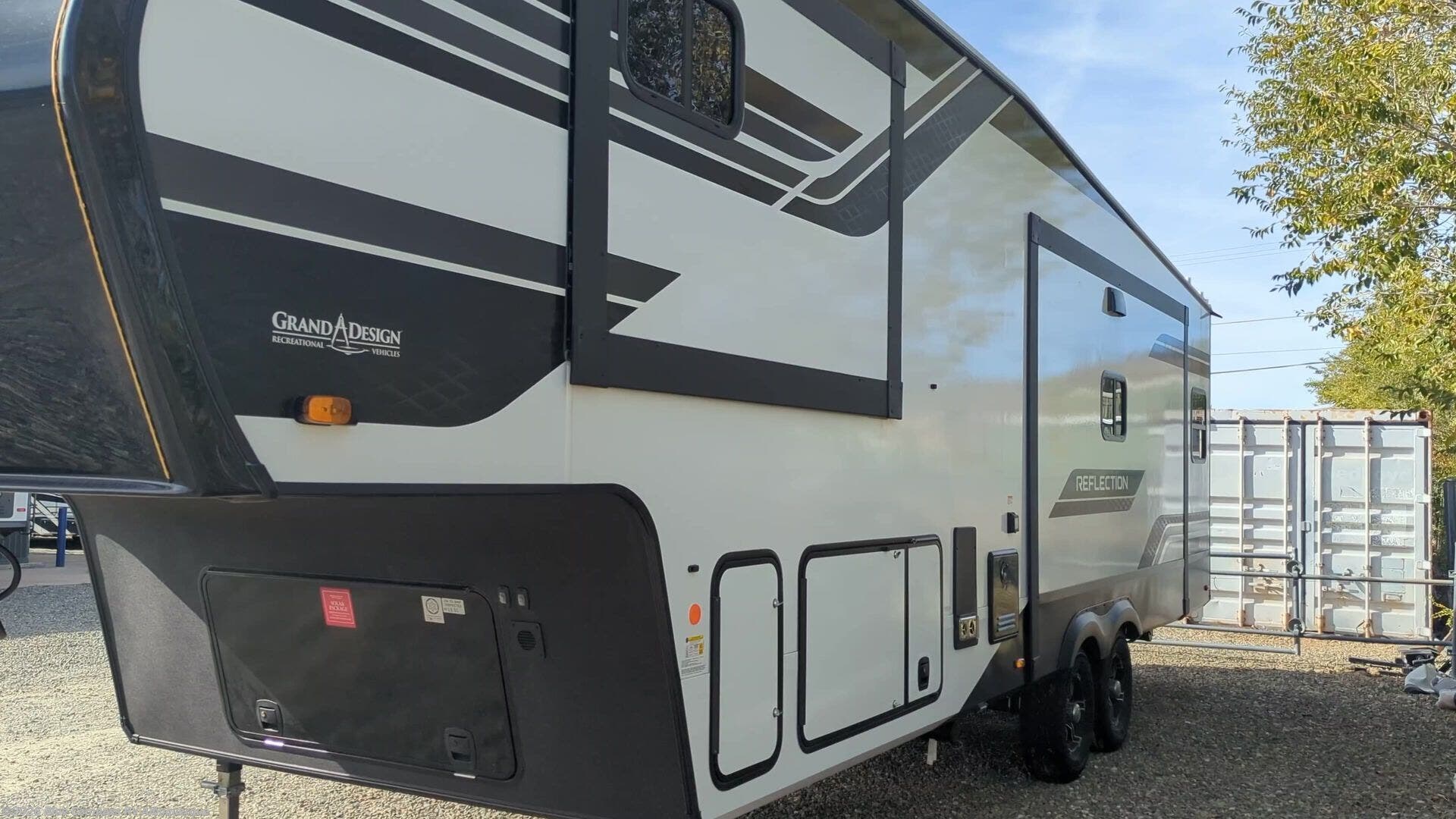 With any Reflection fifth wheel by Grand Design, you will have a solar panel for off-grid camping and a 60 amp charge controller and inverter prep, a Universal All-In-One docking station, unobstructed pass-through storage, and Goodyear Endurance tires. Each is constructed of gel coat exterior sidewalls, residential 5" truss rafters, walk-on roof decking, a fiberglass and radiant foil roof and front cap insulation plus laminated aluminum framed side walls, roof and end walls in slide rooms. Head inside to enjoy residential hardwood cabinet doors, premium Congoleum flooring, a spacious shower with a glass door, and many more comforts!