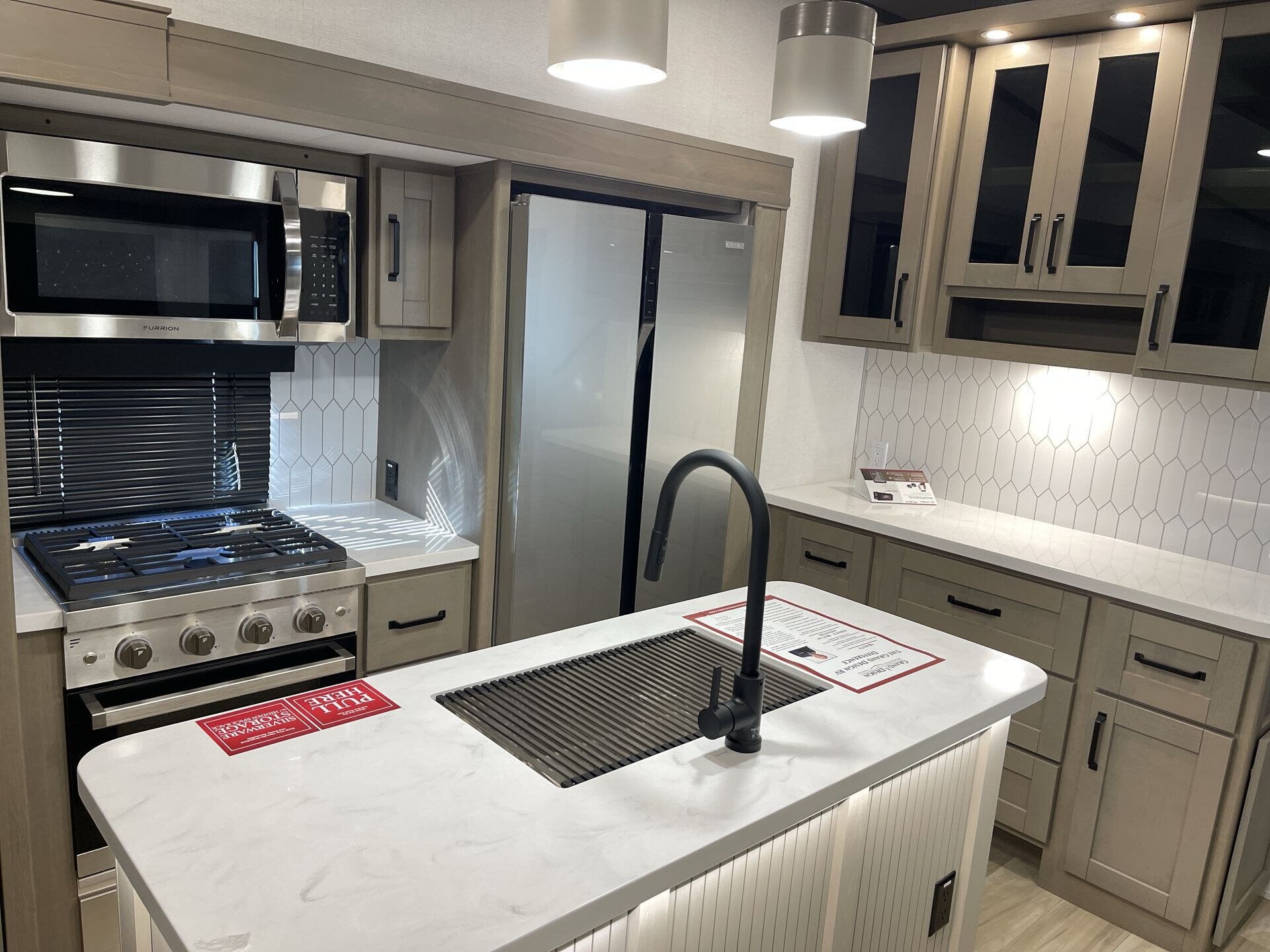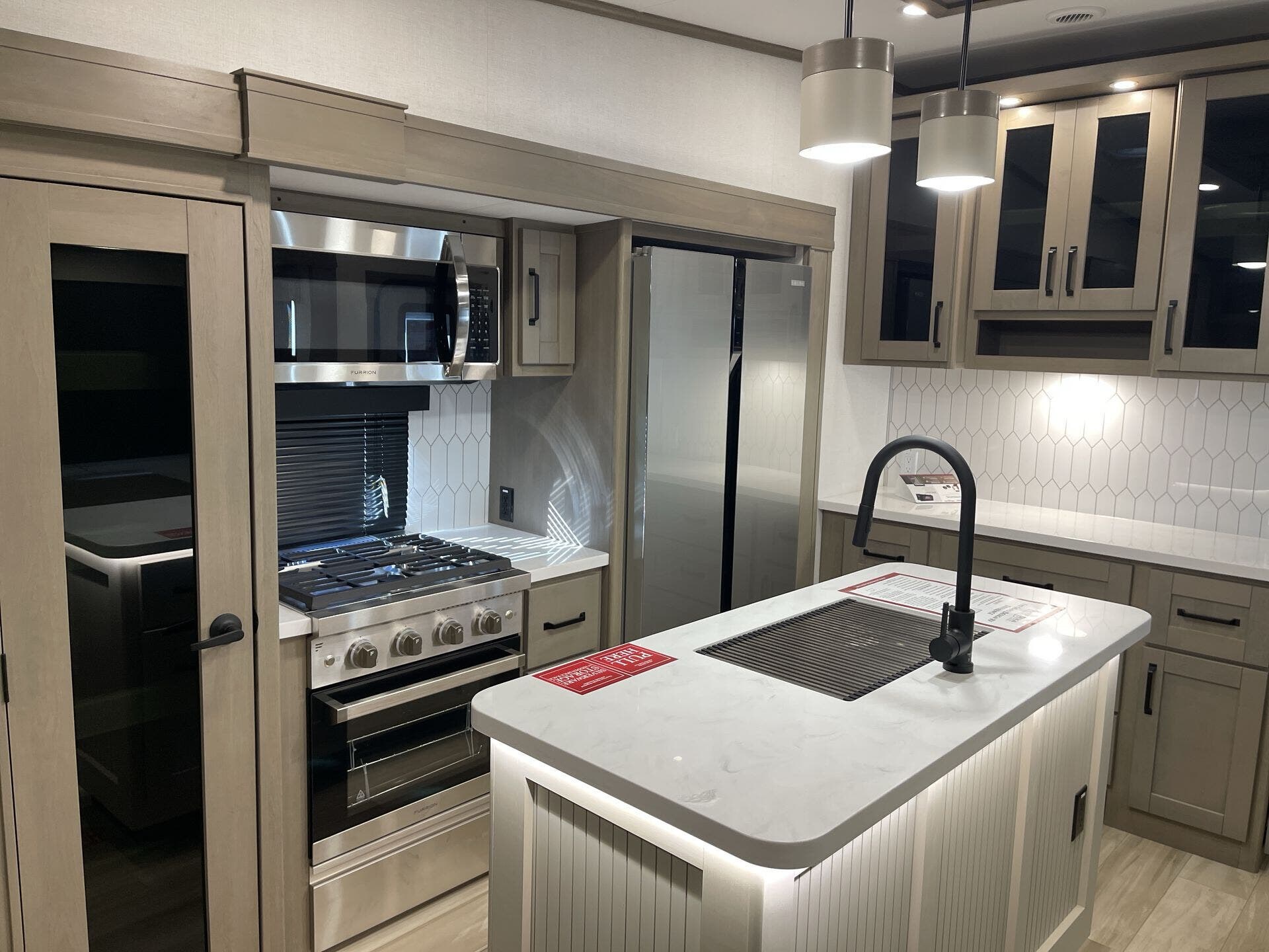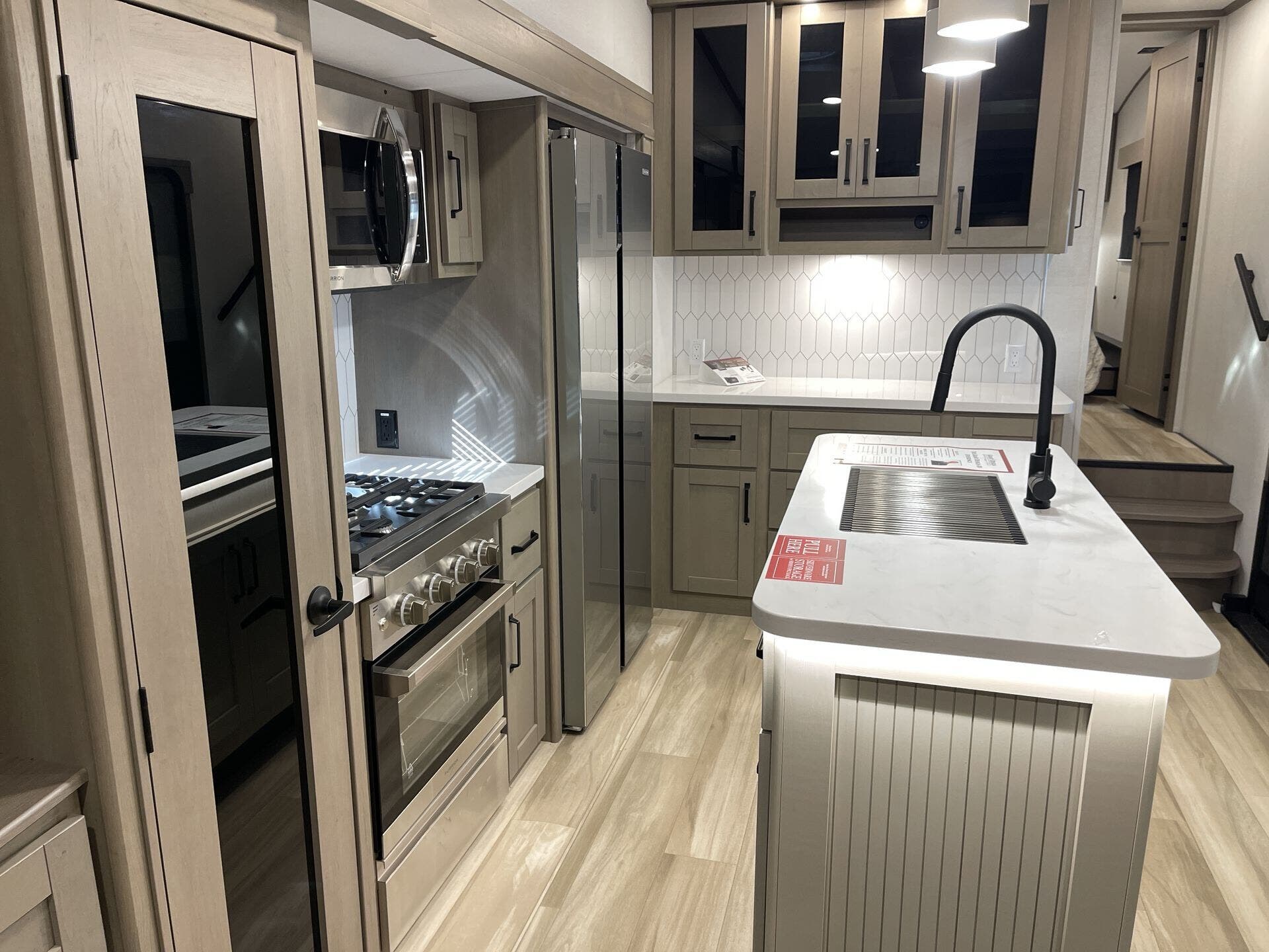 - Floorplan/Layout: Front Bedroom, Kitchen Island, Mid Kitchen, Rear Living Area