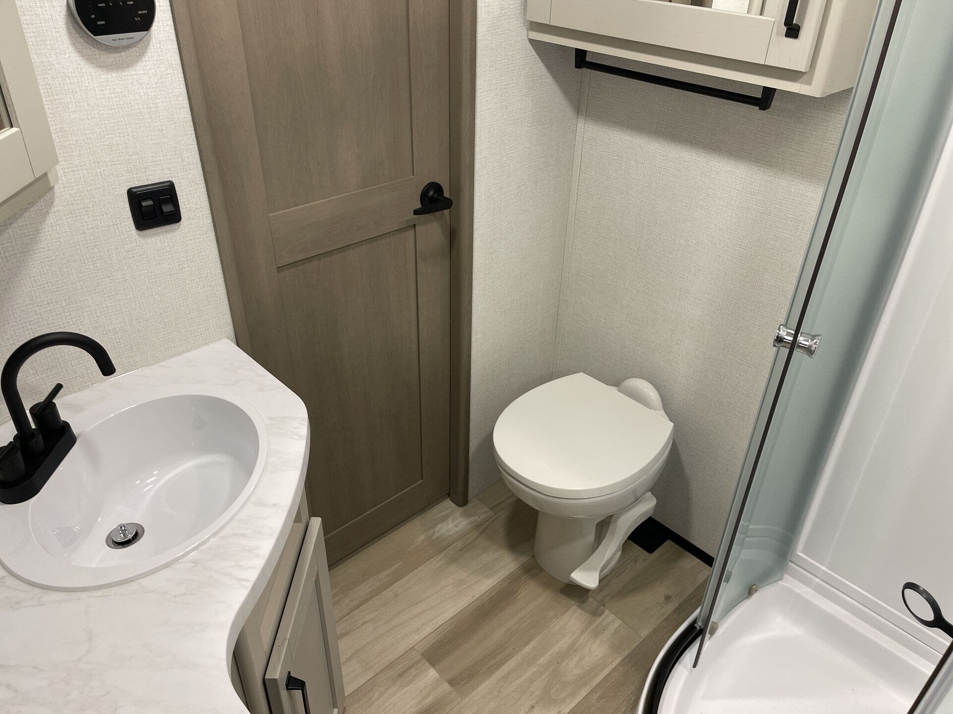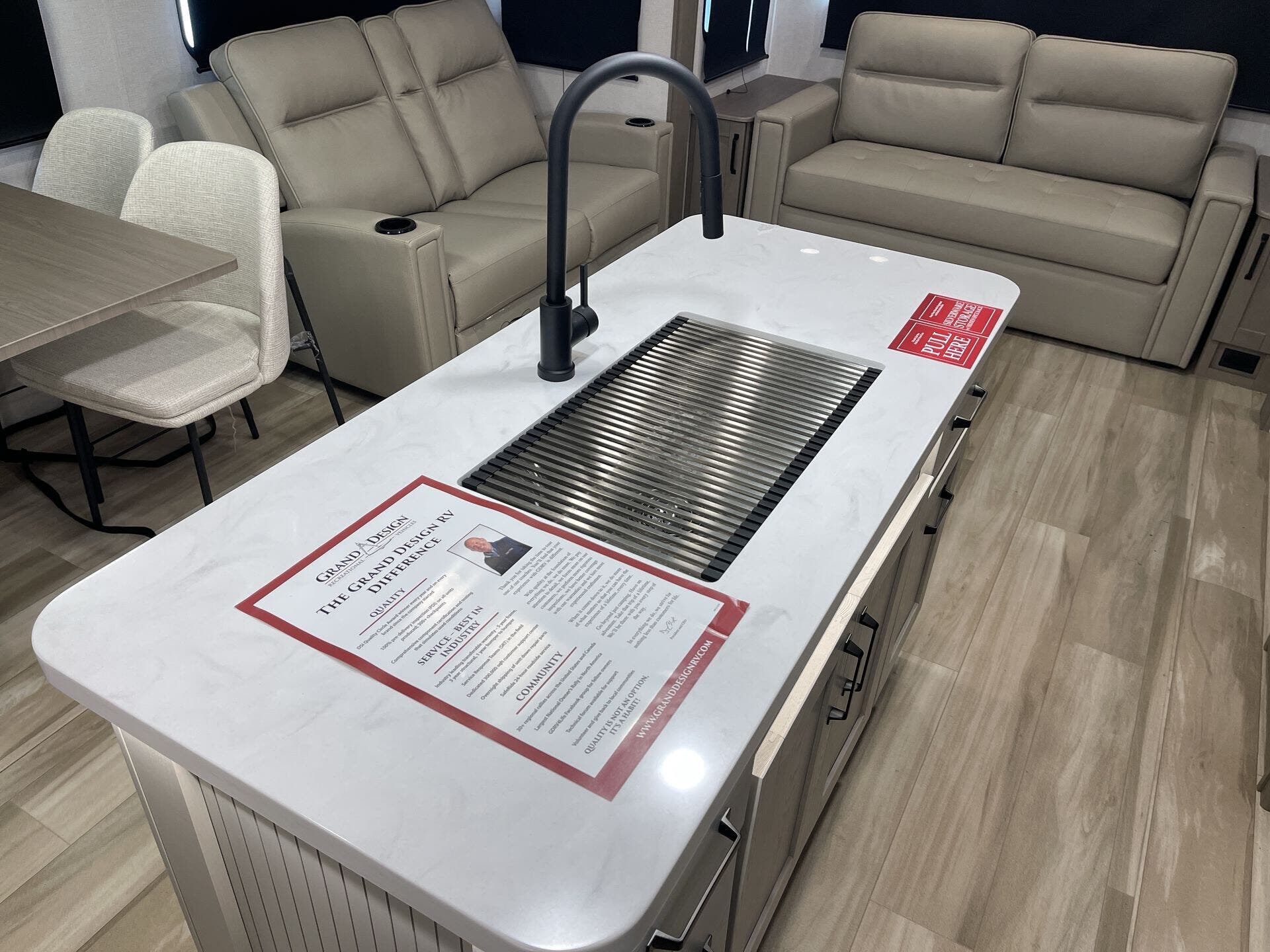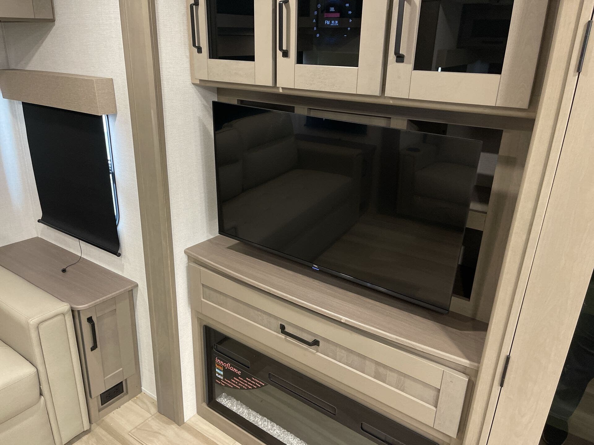 - Interior Details: Island Kitchen, Kitchen Sink, Pantry, Medicine Cabinet, Overhead Cabinetry, Booth Dinette, Dinette Bed, Theater Seating, Day/Night Shades, Wardrobes