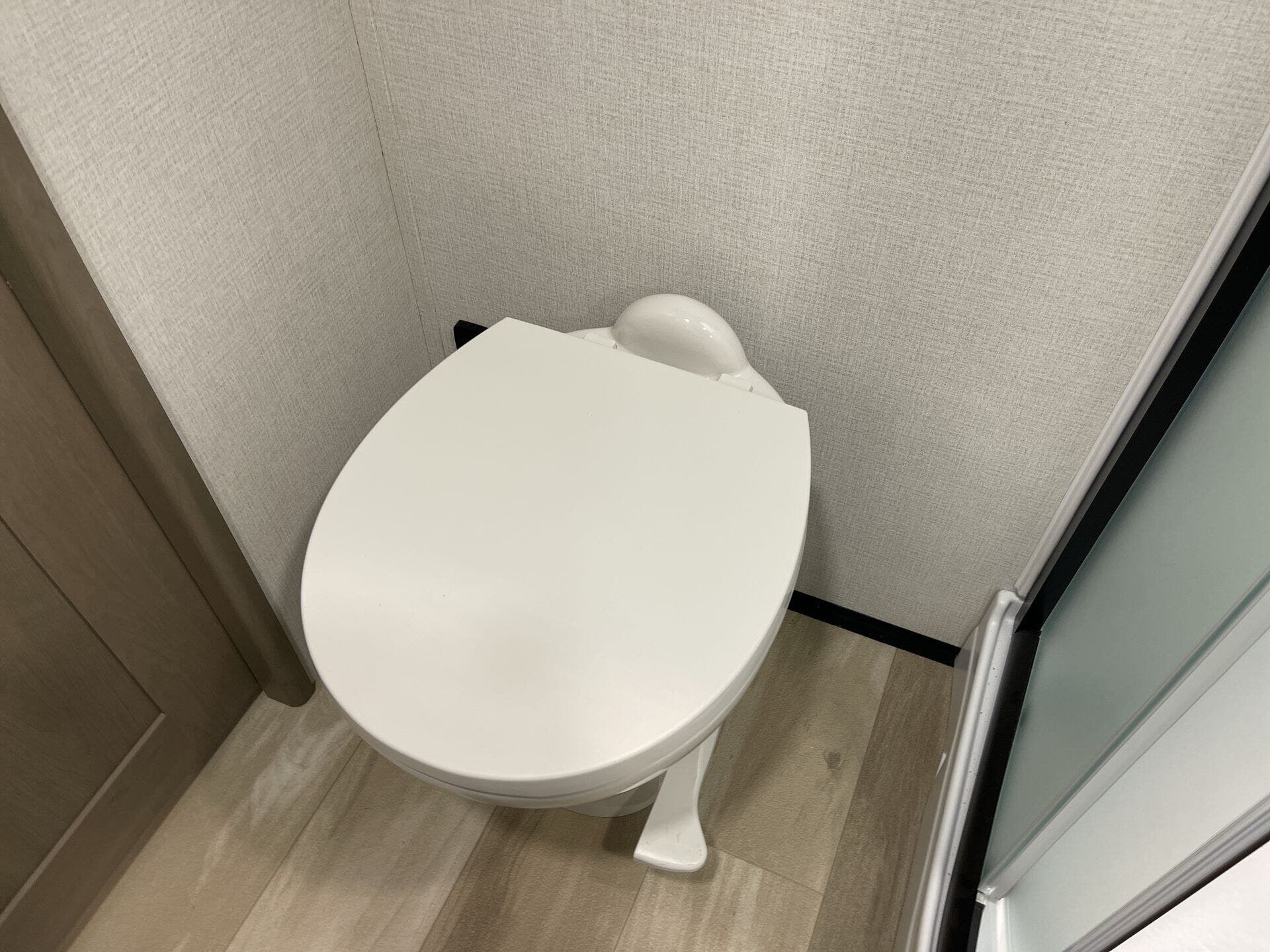 Booth Dinette, Day/Night Shades, Dinette Bed, Island Kitchen, Medicine Cabinet, Overhead Cabinetry, Pantry, Queen Bed, Roof Vents, Shower, Theater Seating, Toilet, Wardrobe(s)