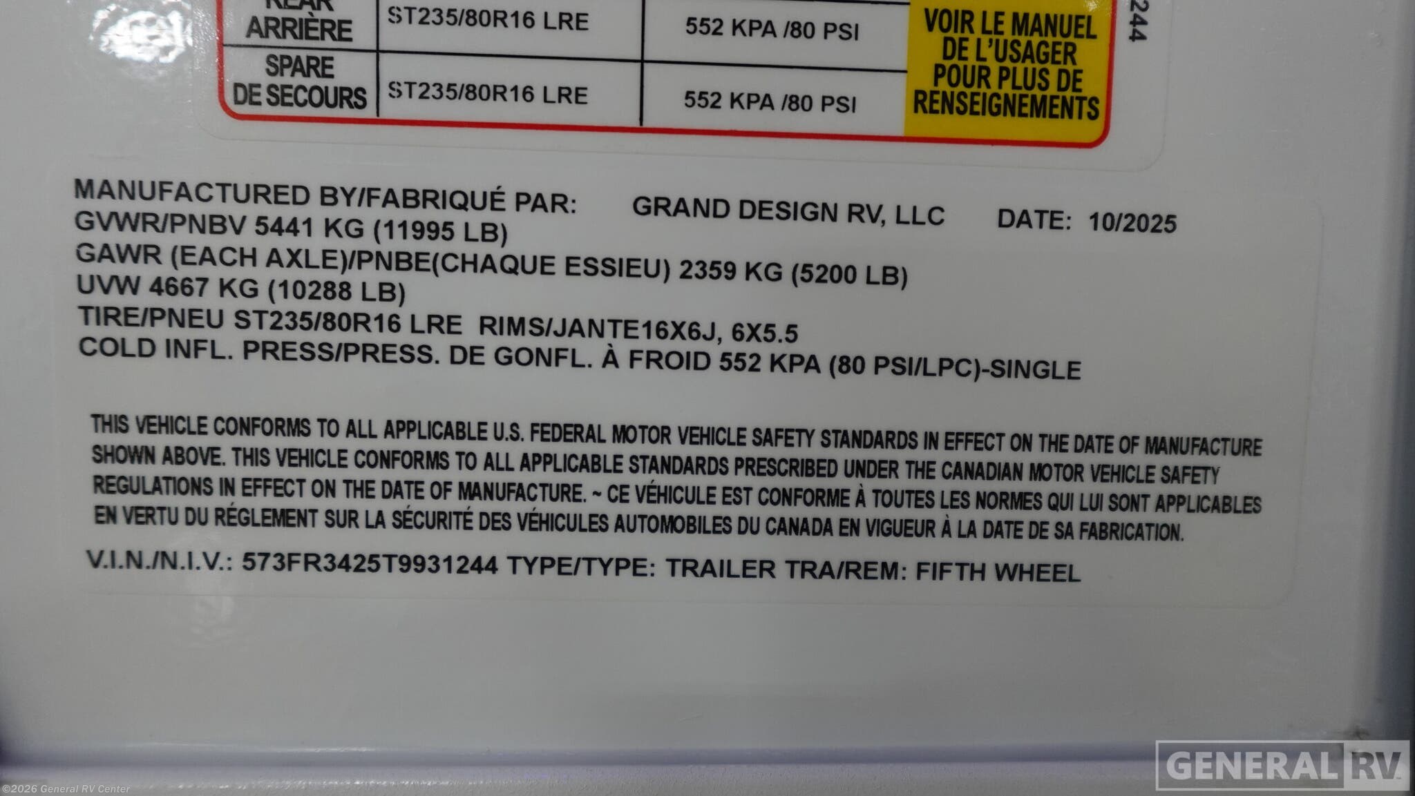 Request More Info on this 2026 Grand Design Reflection 303RLS Offered for sale by General RV Center