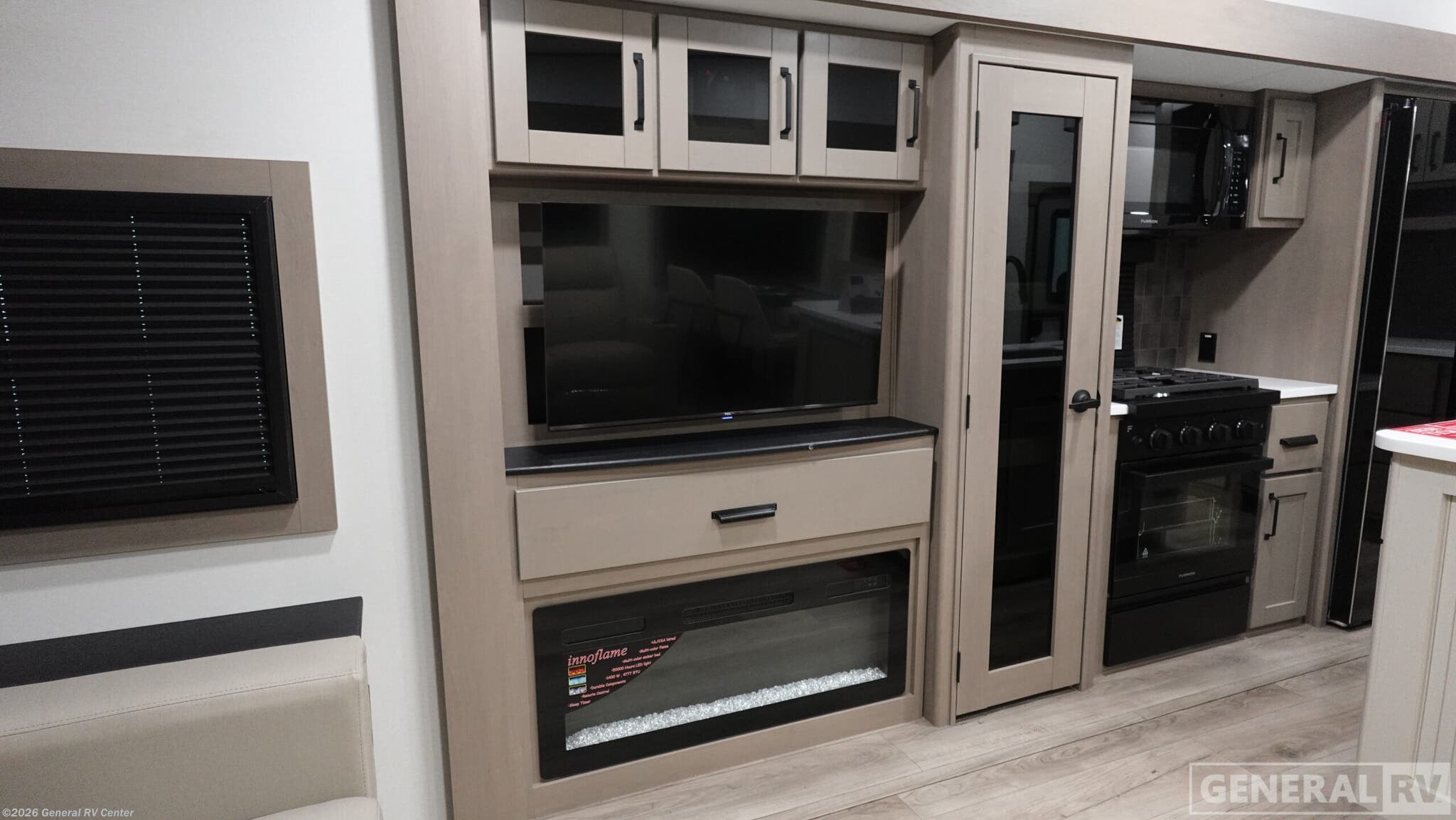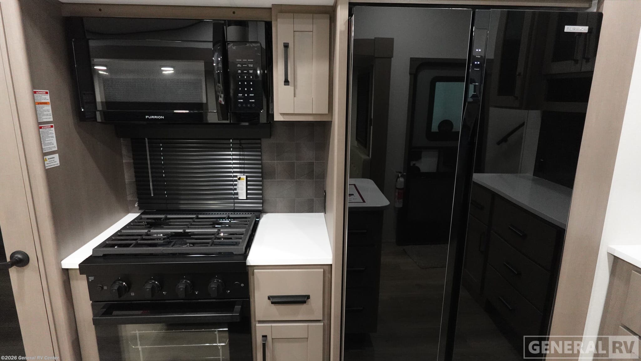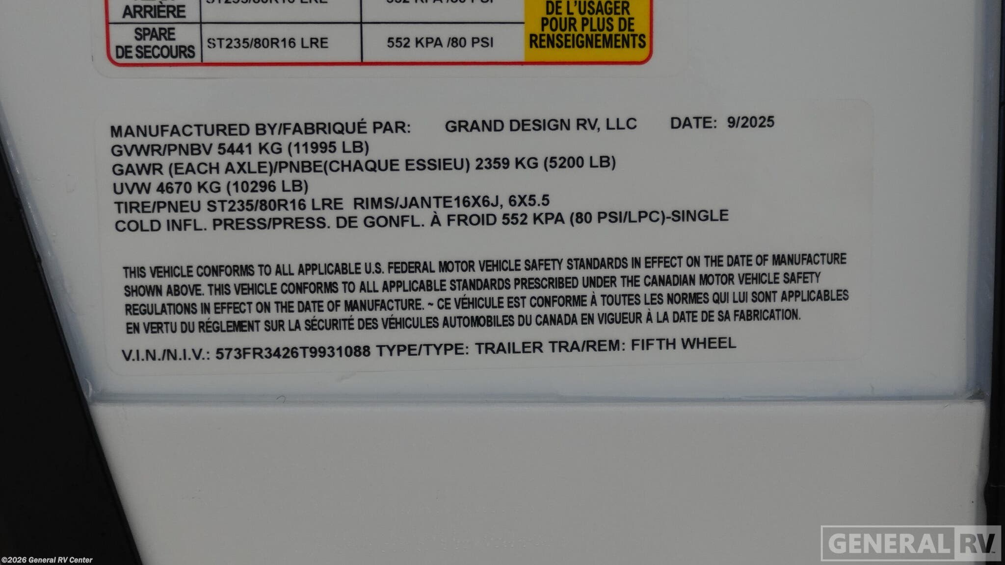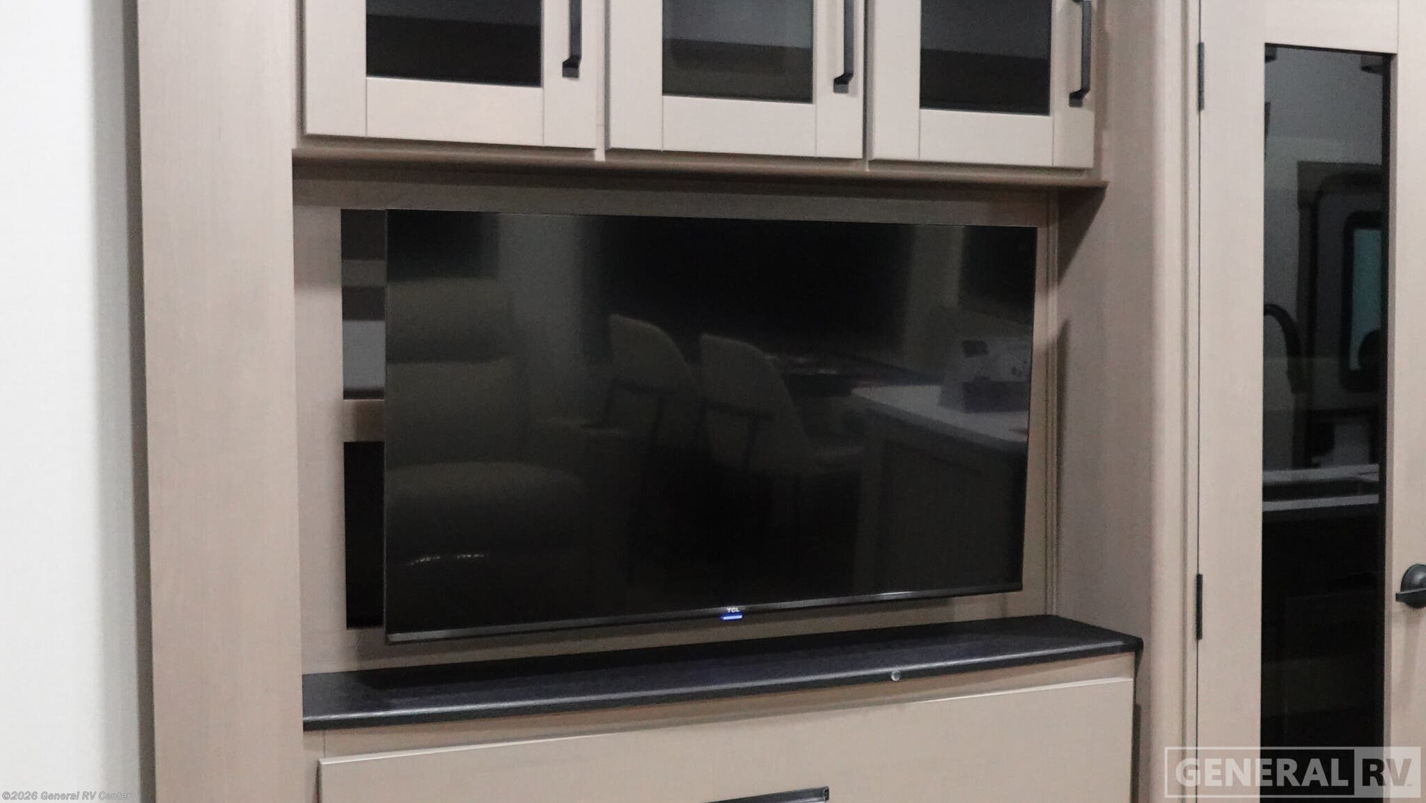 Discover the 2026 Grand Design Reflection 303RLS, where luxury meets practicality in a beautifully designed space. This fifth wheel is your perfect getaway companion, offering the comforts of home wherever you roam. With a spacious rear living area featuring theater seating and a tri-fold sofa, you can relax in style while watching your favorite shows on the entertainment center. The center kitchen is a culinary dream, equipped with a full-size refrigerator, three-burner cooktop, and a generous pantry, making meal prep a breeze. The front bedroom offers a serene retreat with a 60" x 80" queen bed, ensuring a restful night's sleep. The center bath provides convenience and privacy, featuring a stylish plastic and glass shower. With the ability to sleep up to six, thanks to convertible seating options, this RV is perfect for family adventures. Enjoy outdoor living under the two powered retractable awnings, and take advantage of the ample pass-through storage for all your gear. Ready to experience the Reflection 303RLS for yourself? Visit your nearest General RV dealership today!