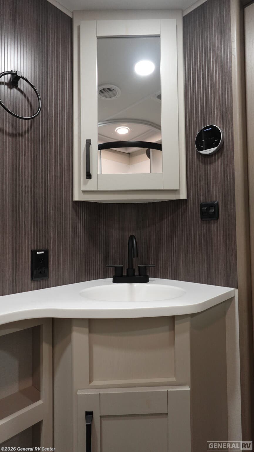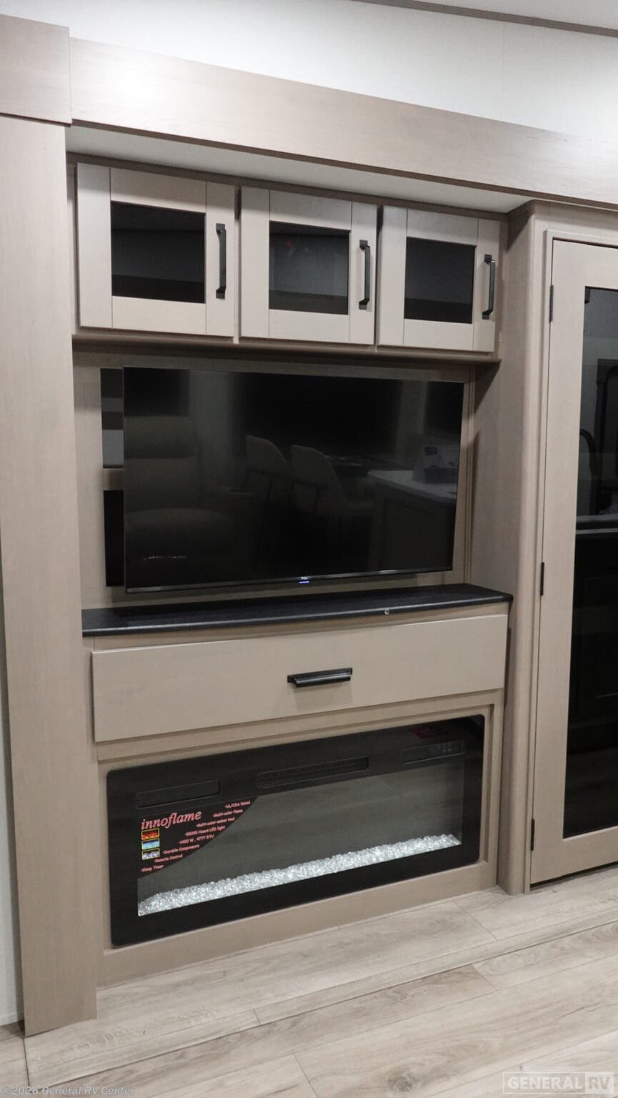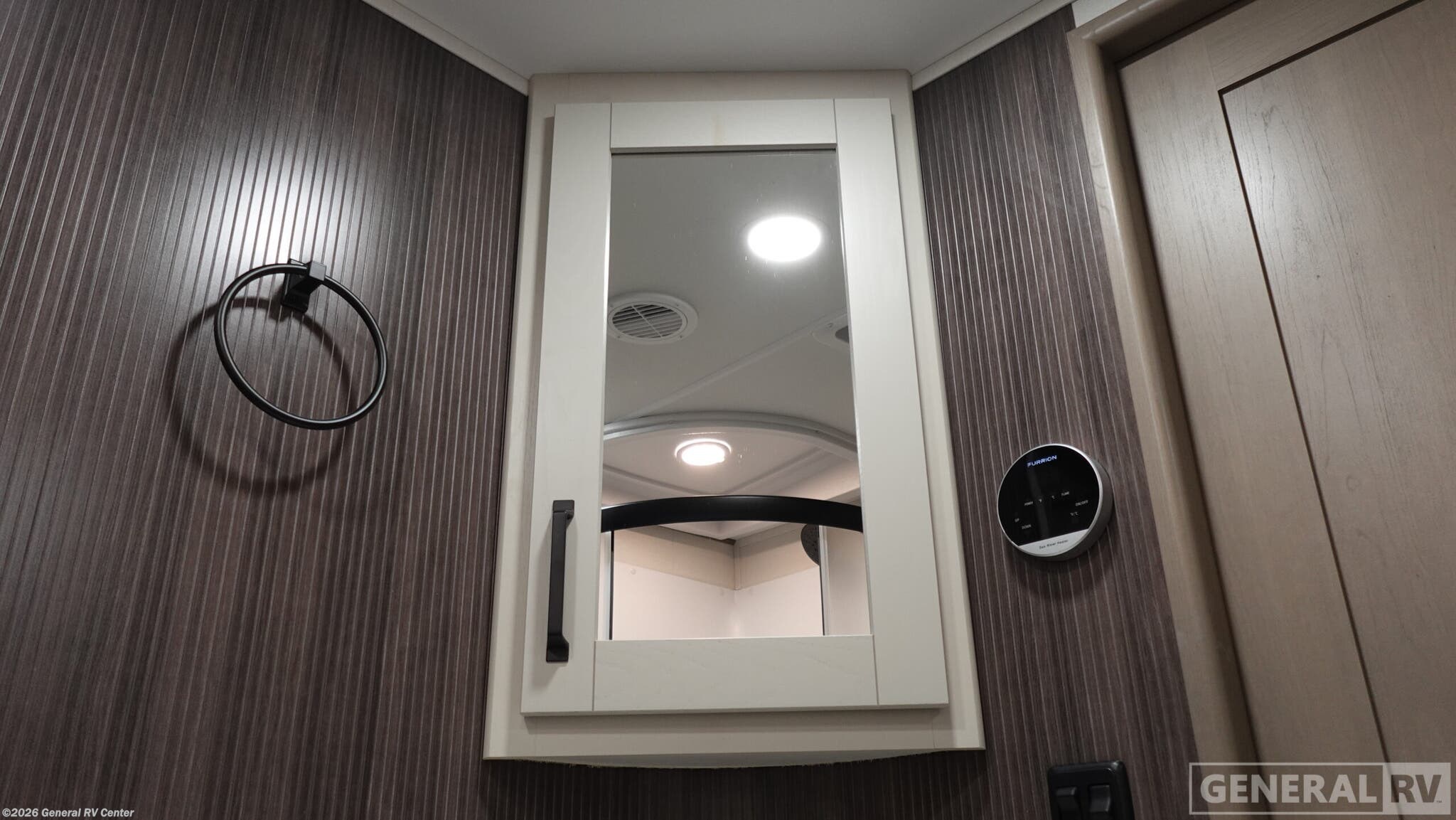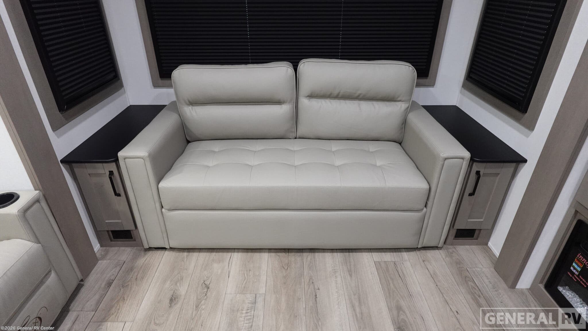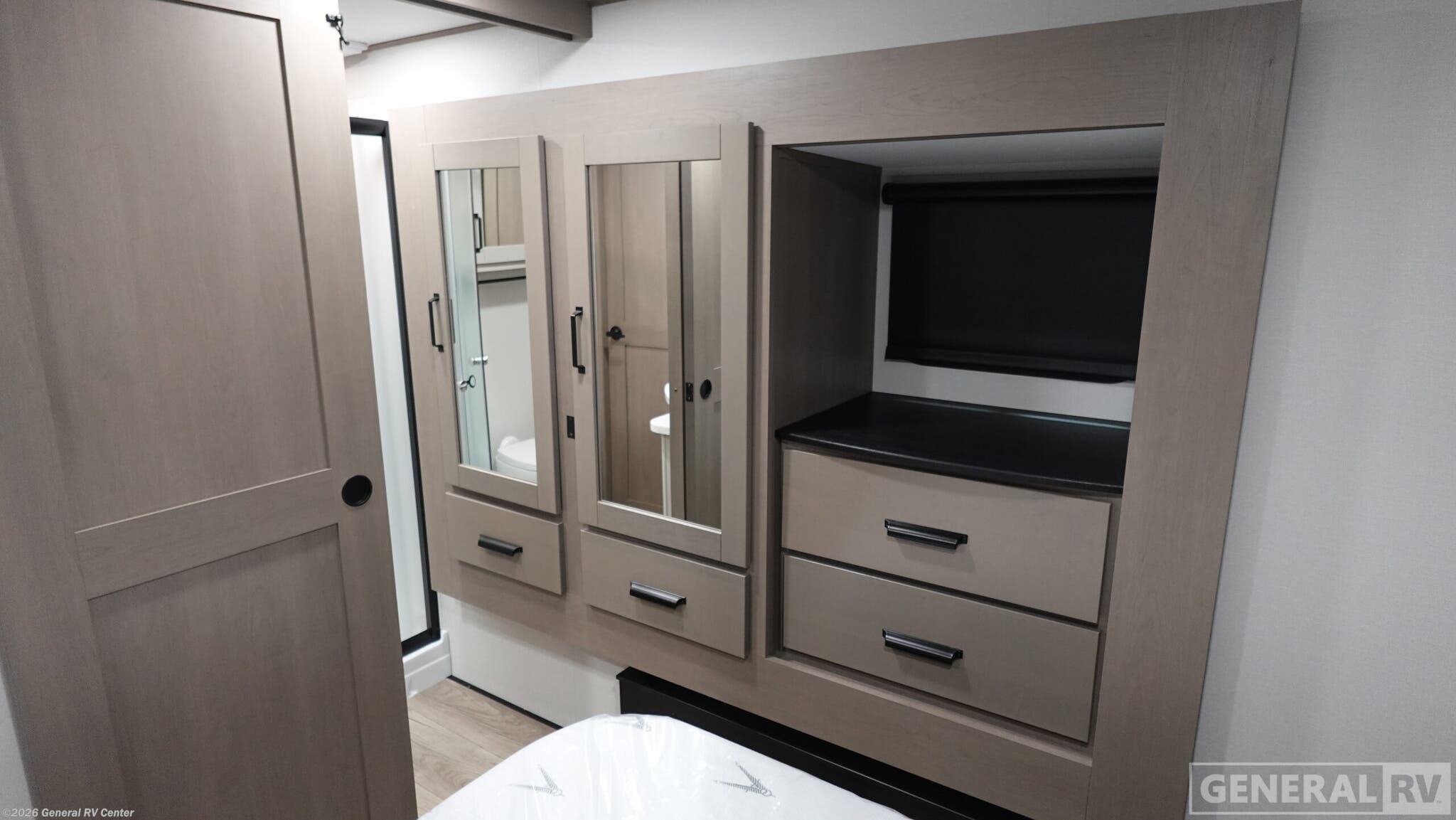 Discover the 2026 Grand Design Reflection 303RLS, where luxury meets practicality in a beautifully designed space. This fifth wheel is your perfect getaway companion, offering the comforts of home wherever you roam. With a spacious rear living area featuring theater seating and a tri-fold sofa, you can relax in style while watching your favorite shows on the entertainment center. The center kitchen is a culinary dream, equipped with a full-size refrigerator, three-burner cooktop, and a generous pantry, making meal prep a breeze. The front bedroom offers a serene retreat with a 60" x 80" queen bed, ensuring a restful night's sleep. The center bath provides convenience and privacy, featuring a stylish plastic and glass shower. With the ability to sleep up to six, thanks to convertible seating options, this RV is perfect for family adventures. Enjoy outdoor living under the two powered retractable awnings, and take advantage of the ample pass-through storage for all your gear. Ready to experience the Reflection 303RLS for yourself? Visit your nearest General RV dealership today!