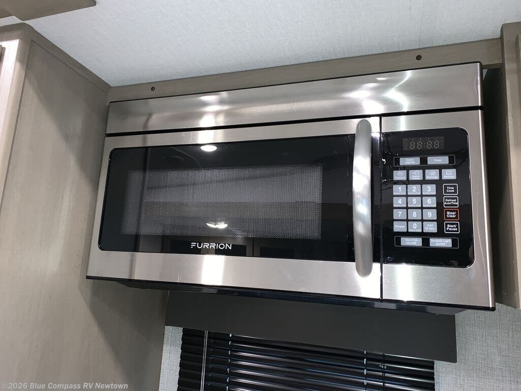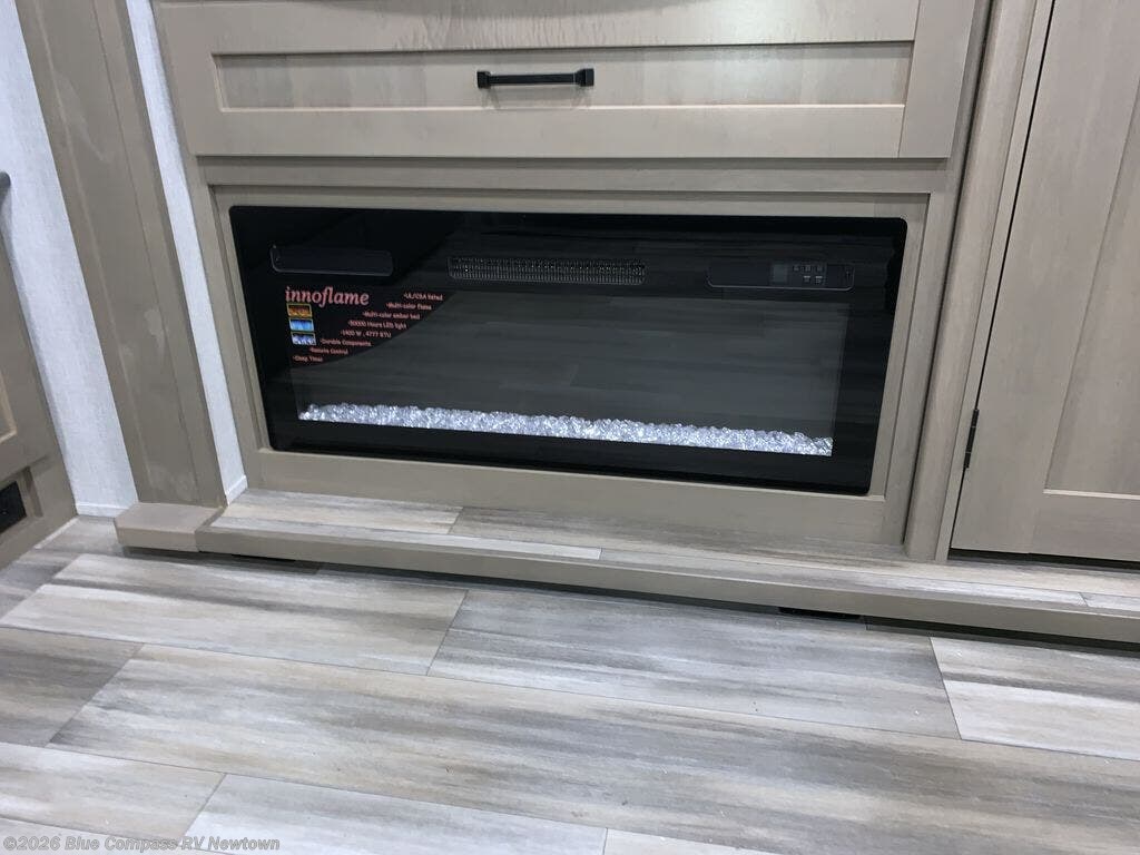 Whether you travel for pleasure or work, you will love the spacious main living and kitchen area with a rear tri-fold sofa that doubles as extra sleeping space, and the theater seating directly across from the entertainment center with a 40" LED HDTV and a fireplace below. The kitchen island will make meal prepping and drying the dishes easier and the hutch is the perfect place to place your picture frames, nice dishes, and extra cooking items. There is even a pantry that is big enough to store all of your favorite snacks, dry ingredients and such. Outside you can enjoy two electric awnings that provide protection from the elements as you relax and visit with other RVers, and your camping chairs can easily be stored in the pass-through compartment. The double entry bathroom is convenient especially at night when you can slide the door to enter from the front master bedroom. You will find plenty of storage for your clothing and gear, plus the bedroom slide out gives you drawers and linen storage that stretches into the full bathroom.