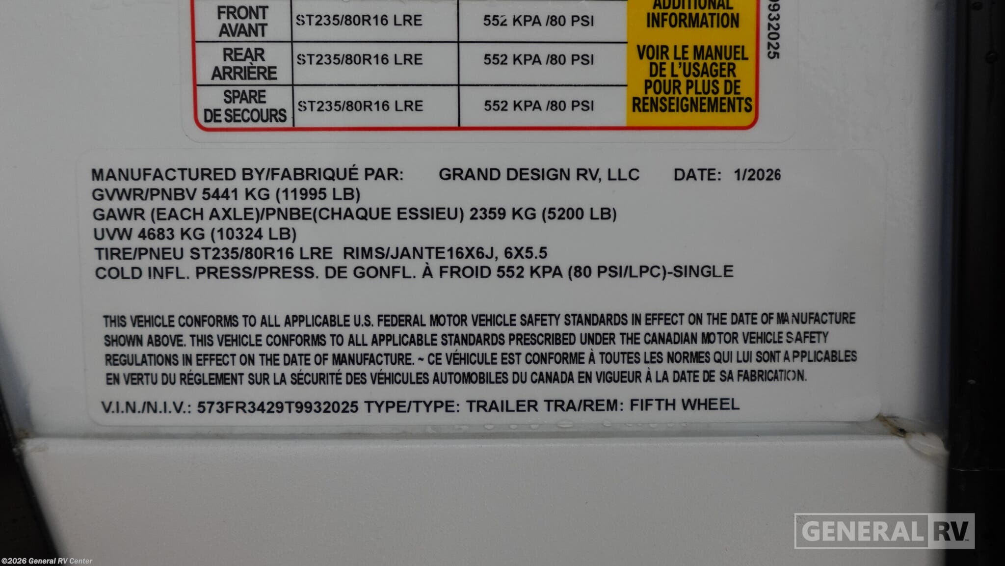 Request More Info on this 2026 Grand Design Reflection 303RLS Offered for sale by General RV Center