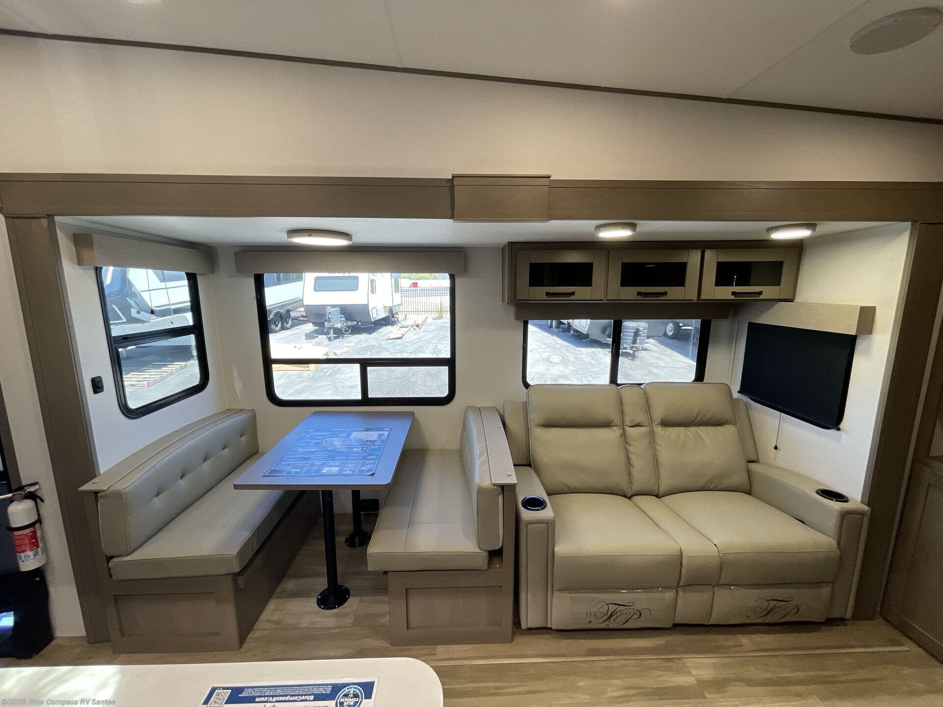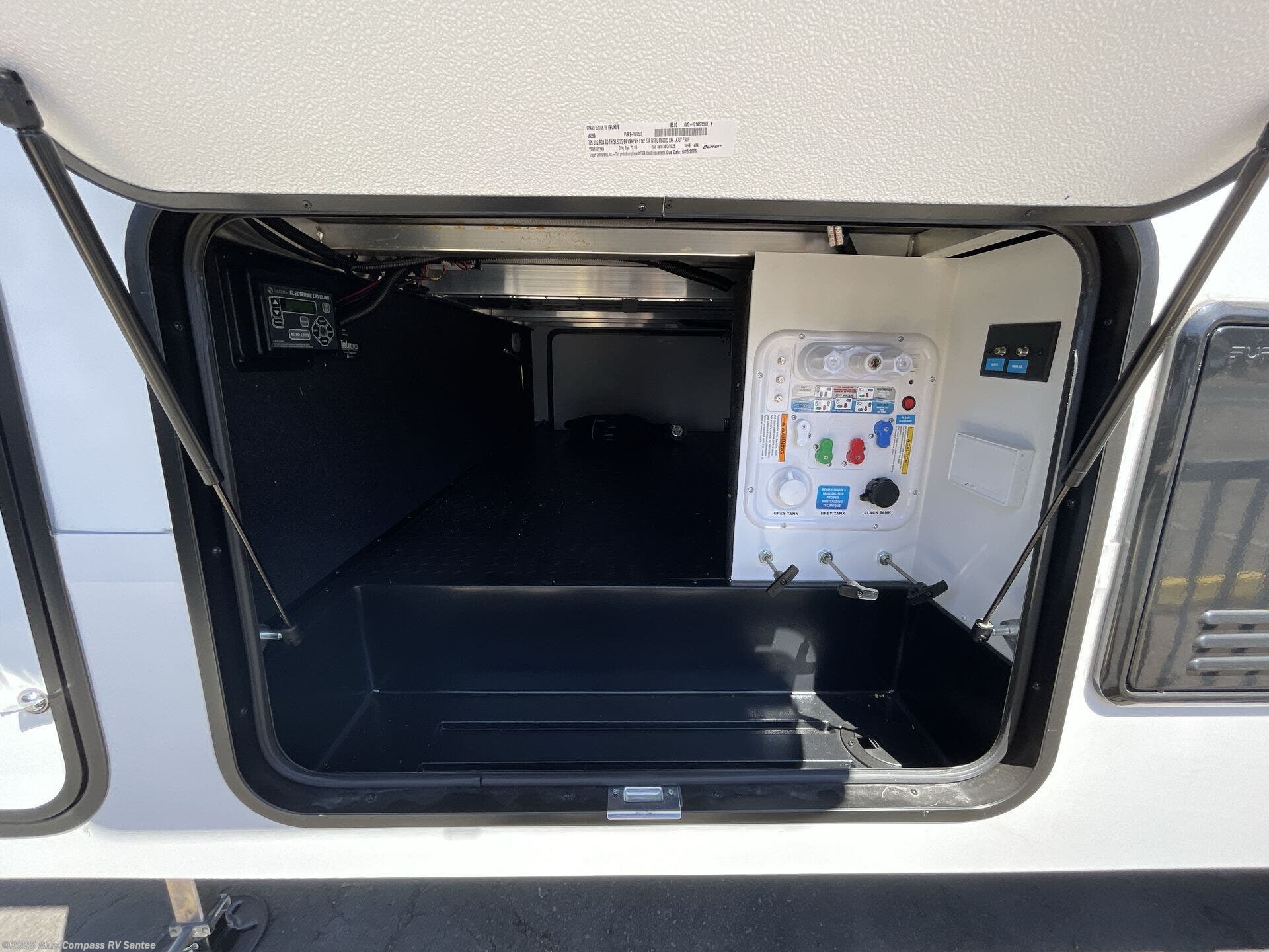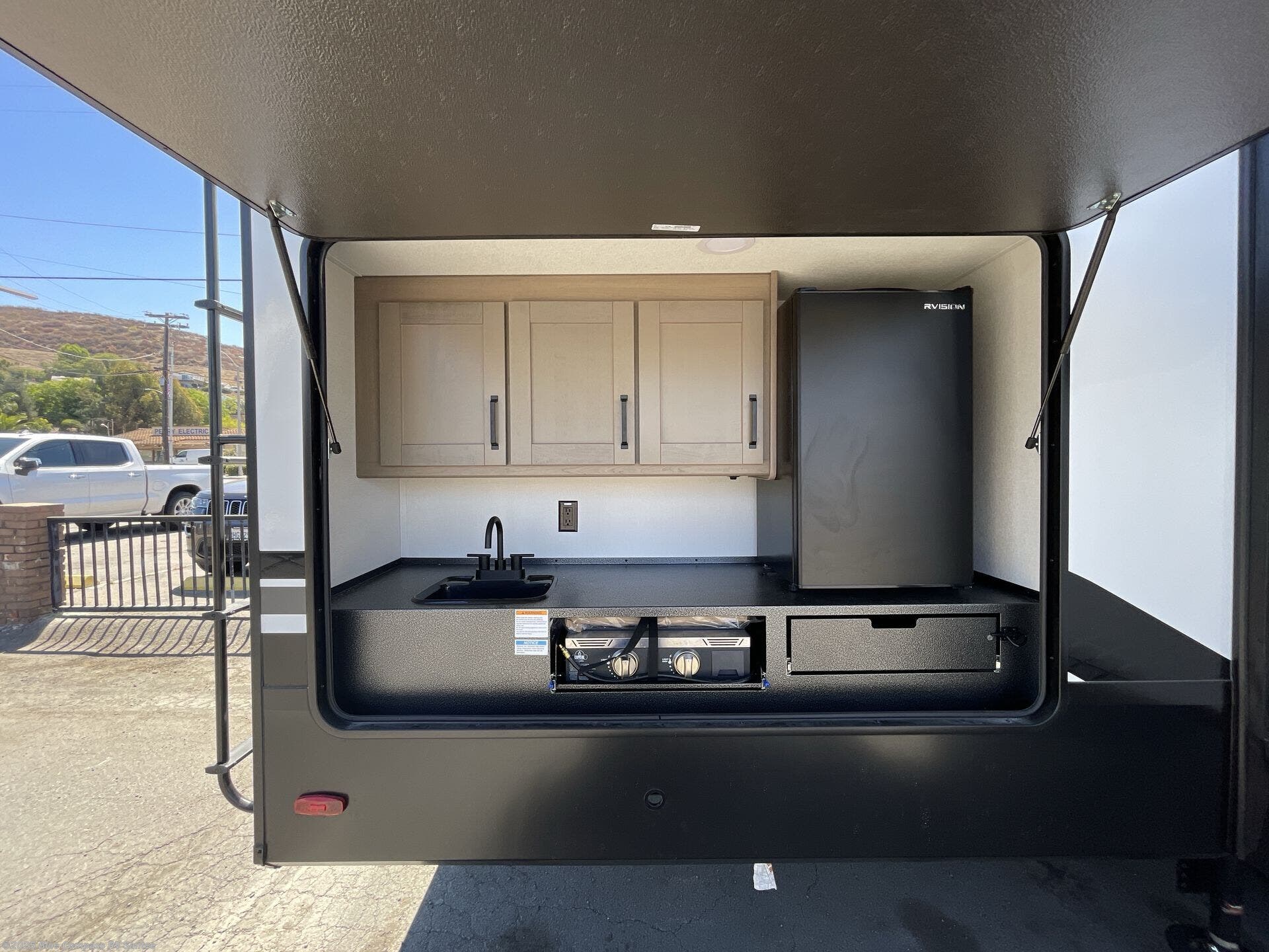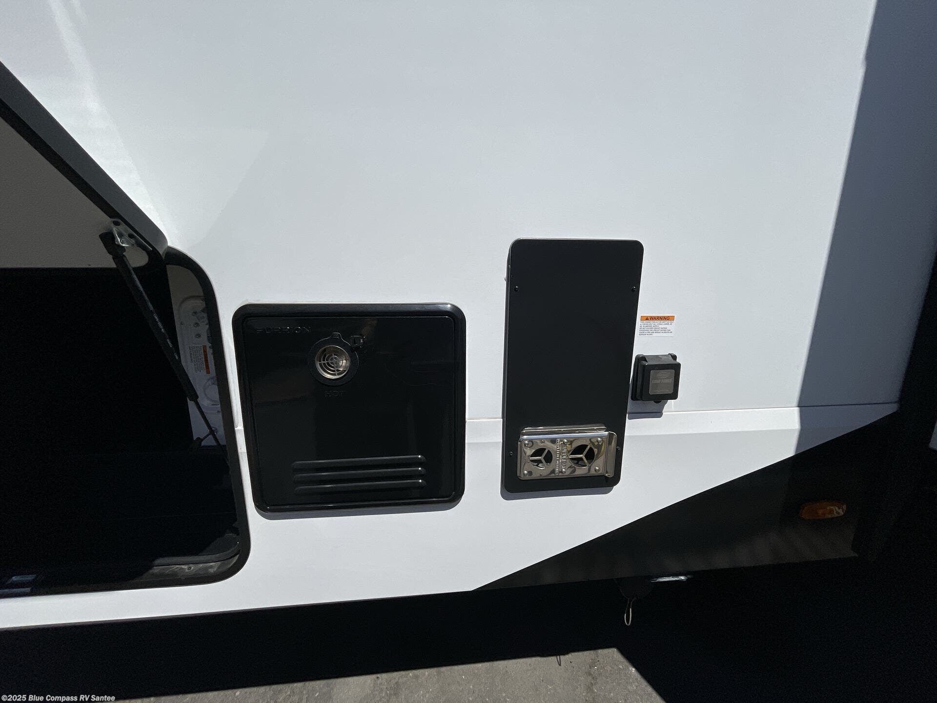 Are you looking to travel with your family and friends and want enough space for everyone to be comfortable? Step inside using the Step Above wit lift assist entry steps, to find a private bunkhouse in the rear of this fifth wheel which offers a slide out flip bunk above a tri-fold sofa, a 44" bunk bed with window and storage below, plus its very own private half bathroom. The theater seating or tri-fold sofa option is a great place to unwind at night in front of the entertainment center with a 40" LED HDTV and fireplace below it. There is a booth dinette or you can a swivel dinette option to dine at, and the kitchen island will provide more counter space to prep meals. You will find full amenities including a 16 cu. ft. 12V refrigerator and a hutch. This fifth wheel also includes a double entry bathroom with a radius shower, and you can wake up refreshed each morning after sleeping on your own queen bed.