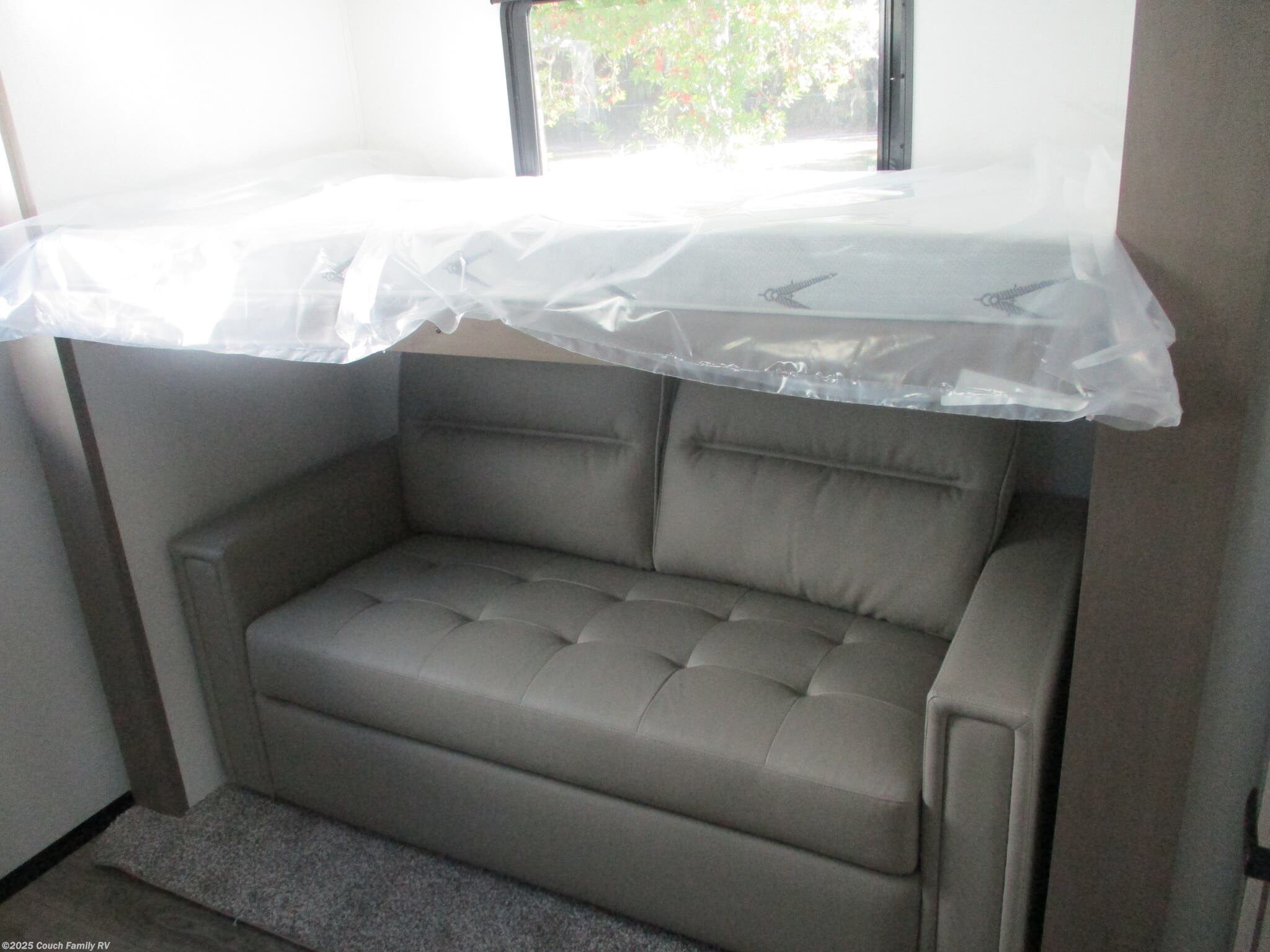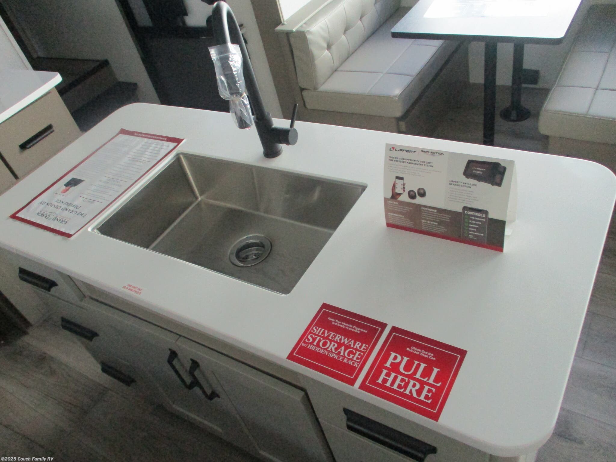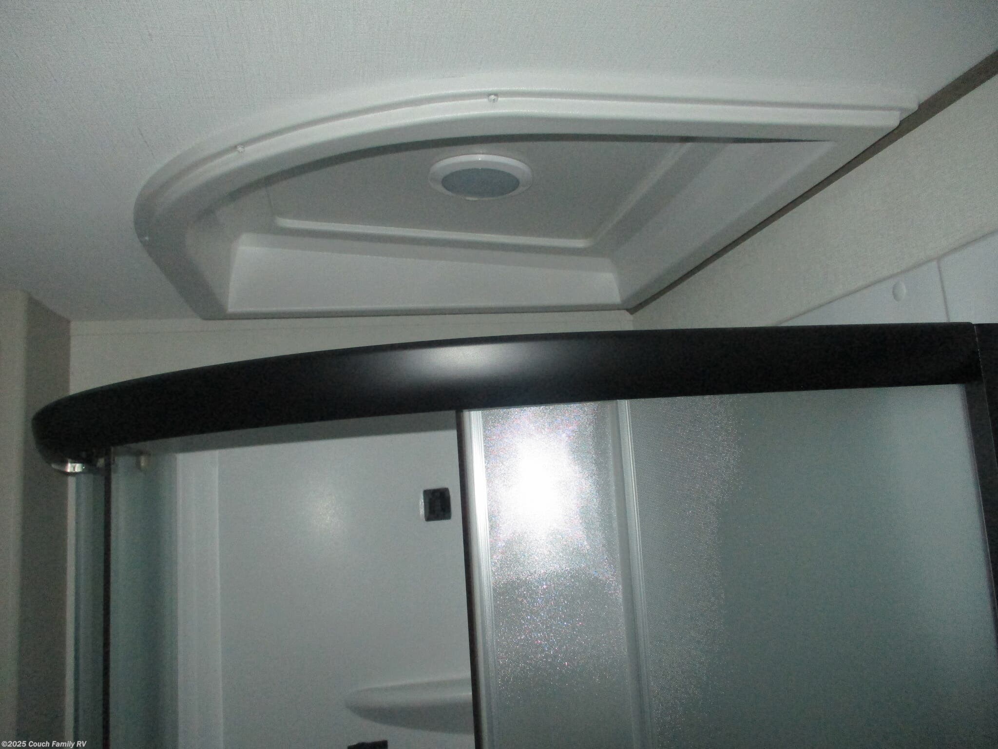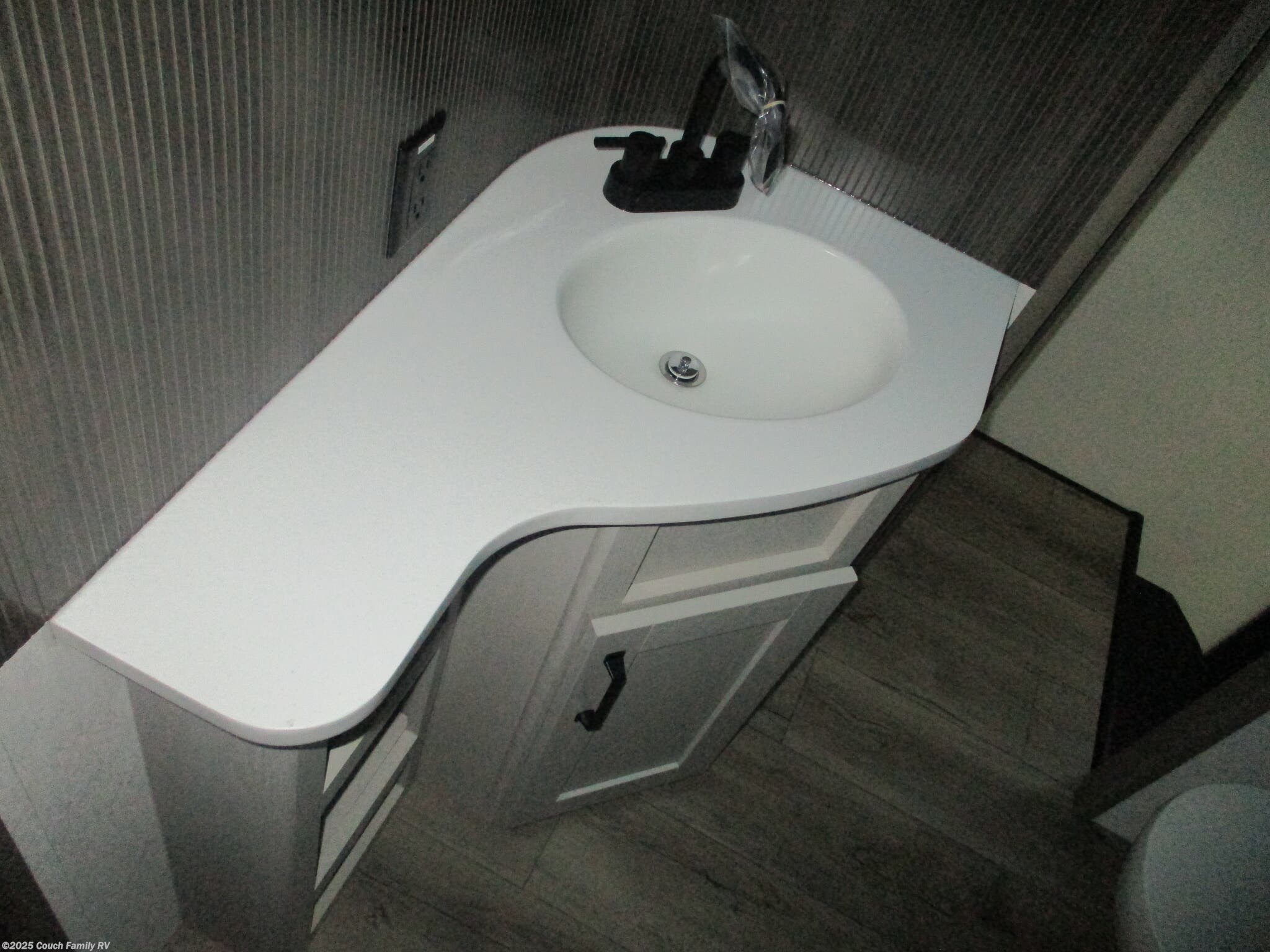 Inside, this new RV offers a thoughtful layout that emphasizes comfort and versatility. The floor plan blends a spacious living area with practical kitchen and dining spaces, including a booth dinette and a standard dinette setup. The design accommodates a hide-a-bed sofa for extra overnight guests, while solid surface countertops elevate the kitchen experience. A medical cabinet, vanity, and full bathroom amenities ensure convenient, home-like living on the road. The interior is designed to maximize storage and convenience for long trips and family excursions.