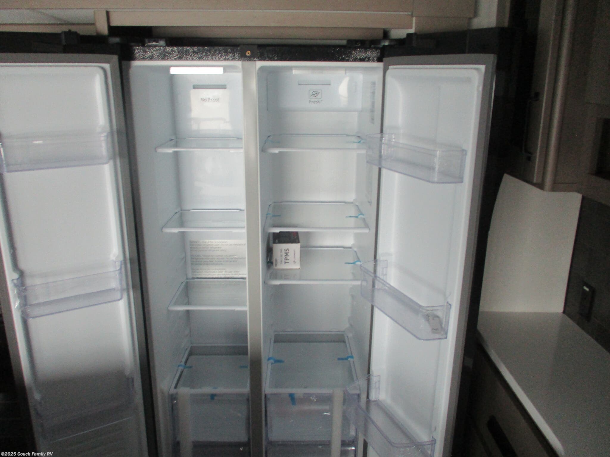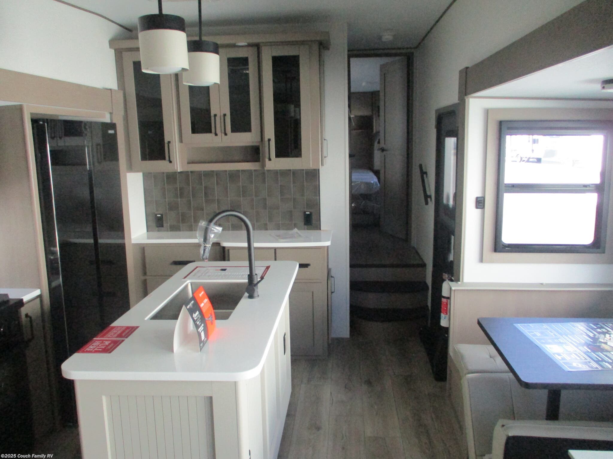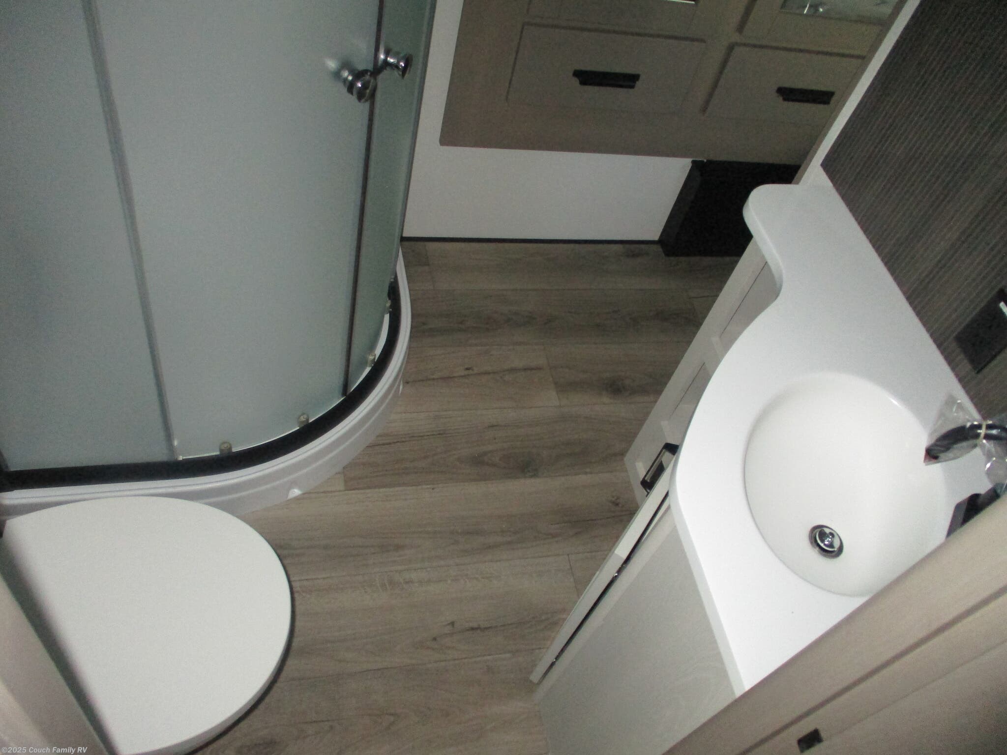 Inside, this new RV offers a thoughtful layout that emphasizes comfort and versatility. The floor plan blends a spacious living area with practical kitchen and dining spaces, including a booth dinette and a standard dinette setup. The design accommodates a hide-a-bed sofa for extra overnight guests, while solid surface countertops elevate the kitchen experience. A medical cabinet, vanity, and full bathroom amenities ensure convenient, home-like living on the road. The interior is designed to maximize storage and convenience for long trips and family excursions.
