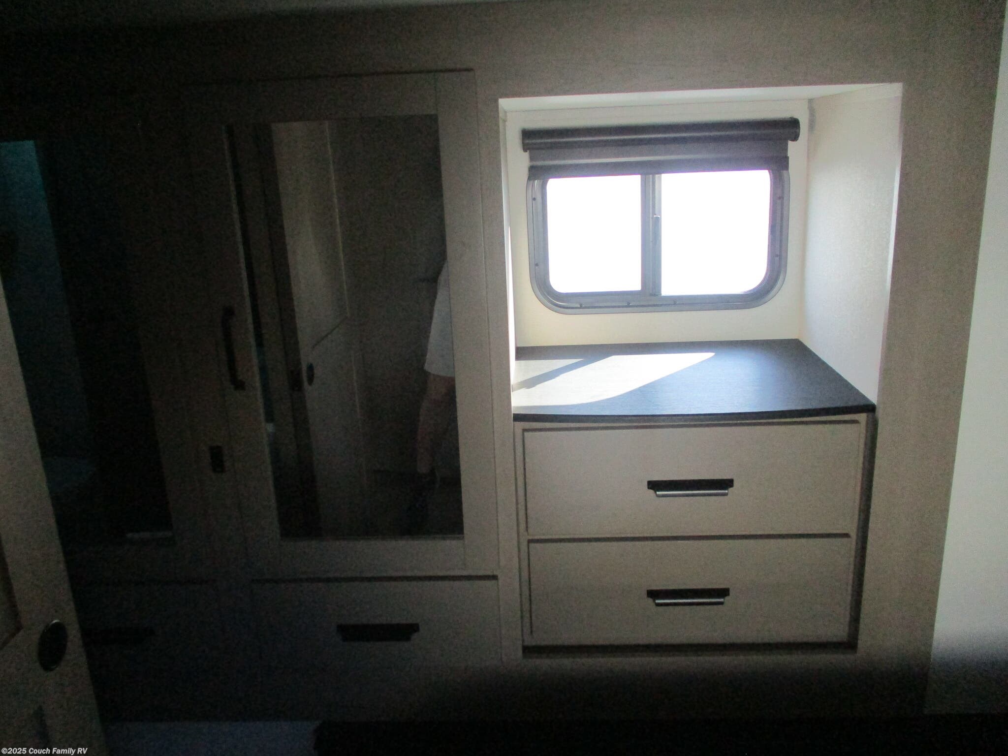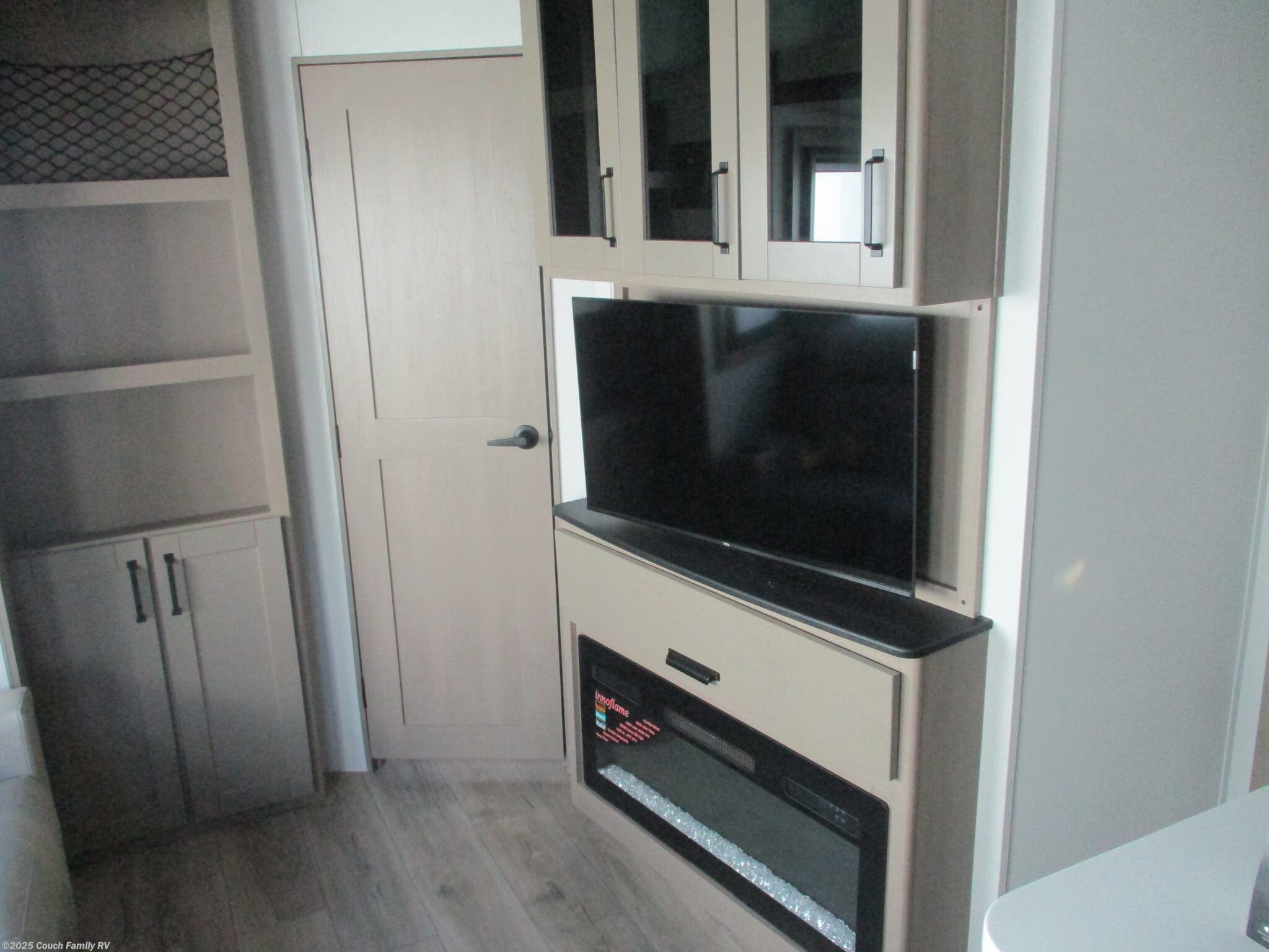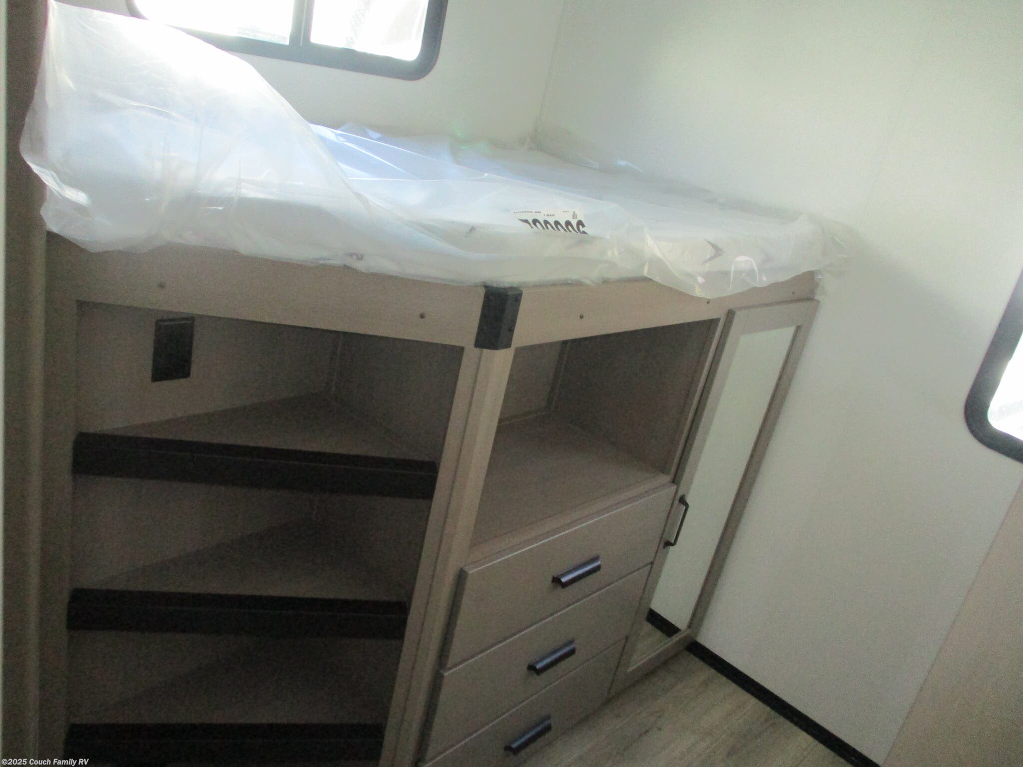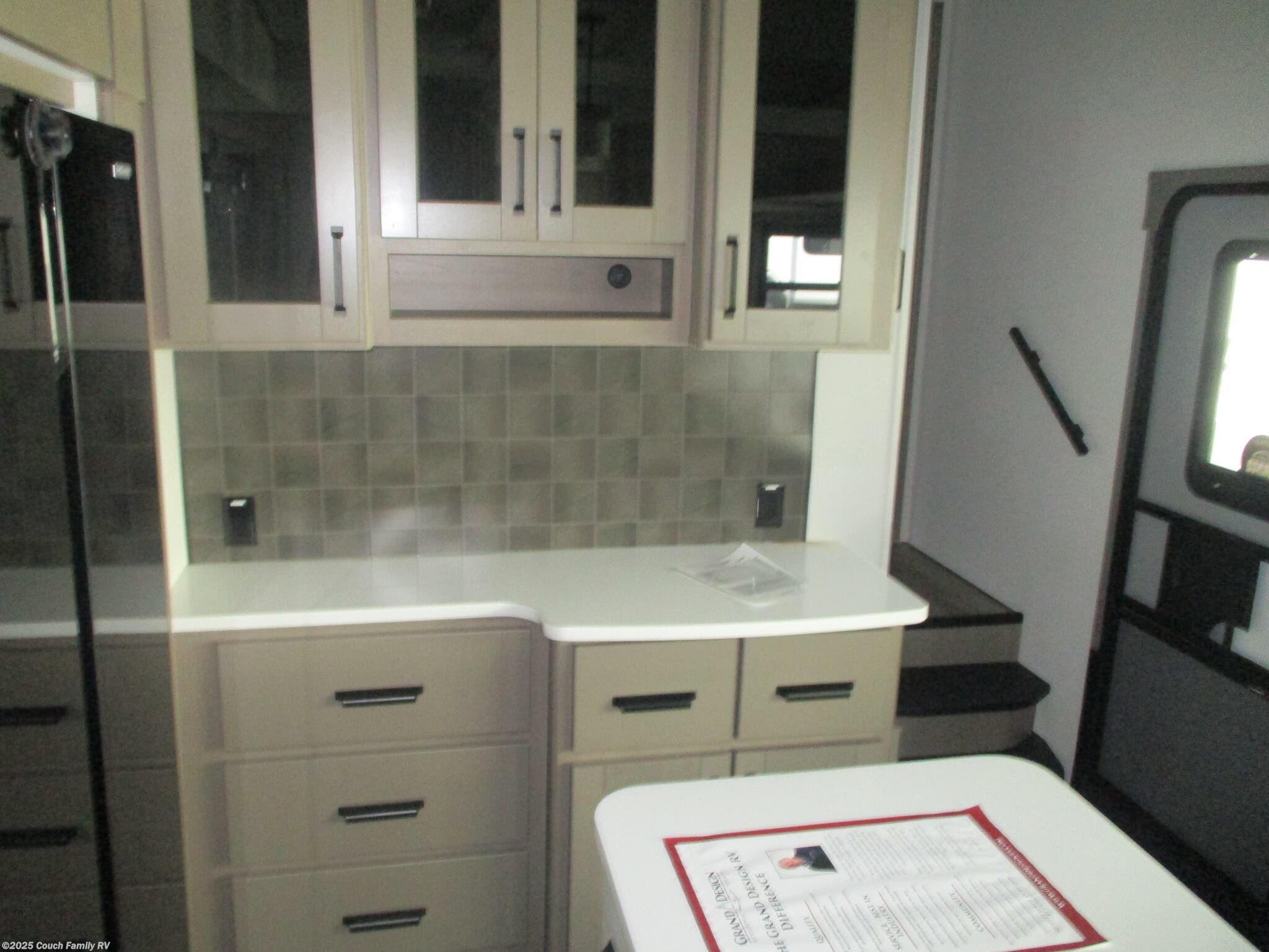 Inside, this new RV offers a thoughtful layout that emphasizes comfort and versatility. The floor plan blends a spacious living area with practical kitchen and dining spaces, including a booth dinette and a standard dinette setup. The design accommodates a hide-a-bed sofa for extra overnight guests, while solid surface countertops elevate the kitchen experience. A medical cabinet, vanity, and full bathroom amenities ensure convenient, home-like living on the road. The interior is designed to maximize storage and convenience for long trips and family excursions.