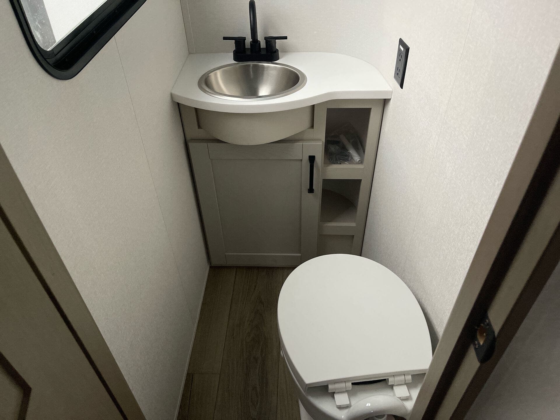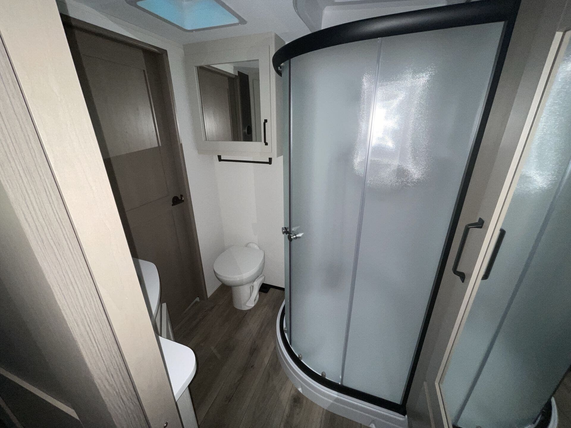 Booth Dinette, Dinette, Hide-A-Bed, Medicine Cabinet, Shower, Solid Surface Countertops, Toilet, Vanity