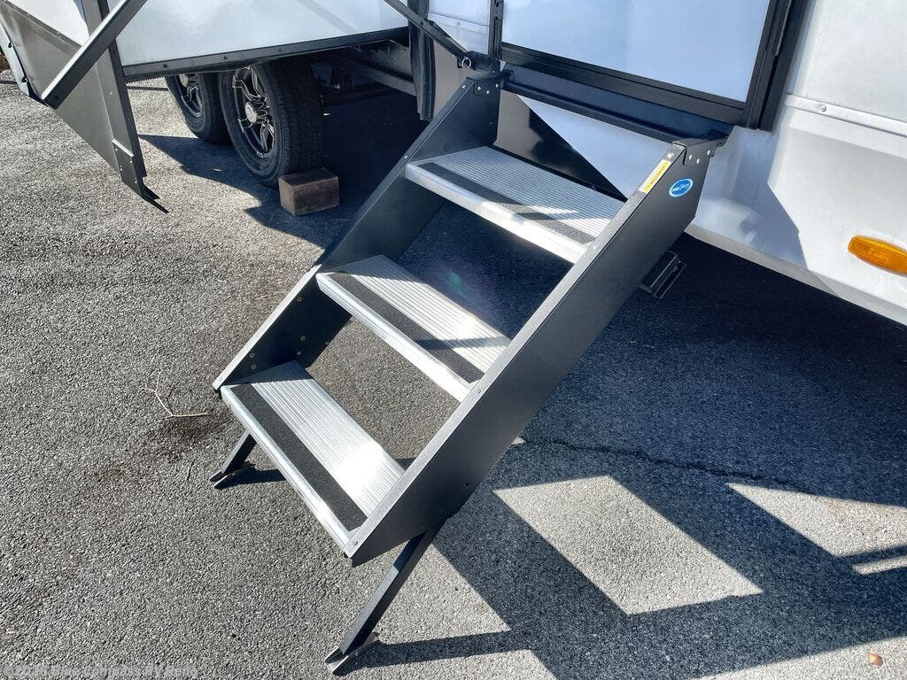 Finding the perfect trailer for a larger group is simple, take a look at this one for your next RV! The rear bunkhouse might be the first reason you fall in love because of the slide out with a flip bunk above a tri-fold sofa, the second bunk bed with a window on the opposite side and storage below, and the large rear window for great views. The outside kitchen might be another reason allowing you to enjoy the outdoors while providing meals for everyone, and/or the inside gourmet kitchen with a 16 cu. ft. refrigerator, an island, and two hutches. Everyone can gather together and relax on the theater seating with cupholders and the booth dinette or optional swivel dinette, or watch the 40" LED HDTV with fireplace below. The full bathroom includes a space savings sliding door and linen storage, and the bedroom gives you a front walk-around queen bed with storage for your clothes on each side, plus there is an additional wardrobe with drawers for your clothes!