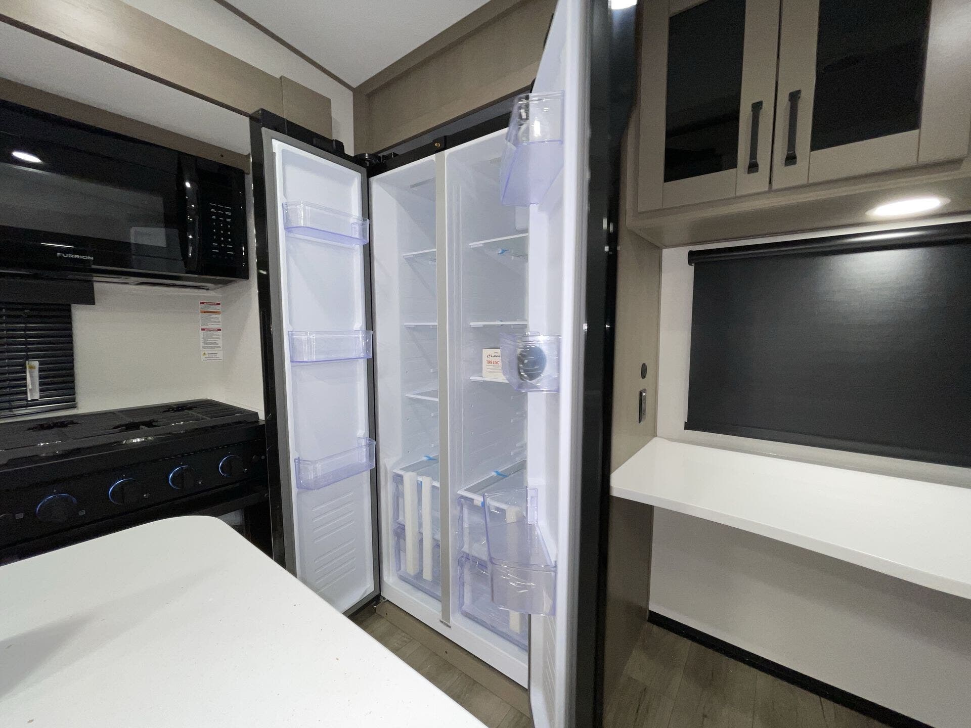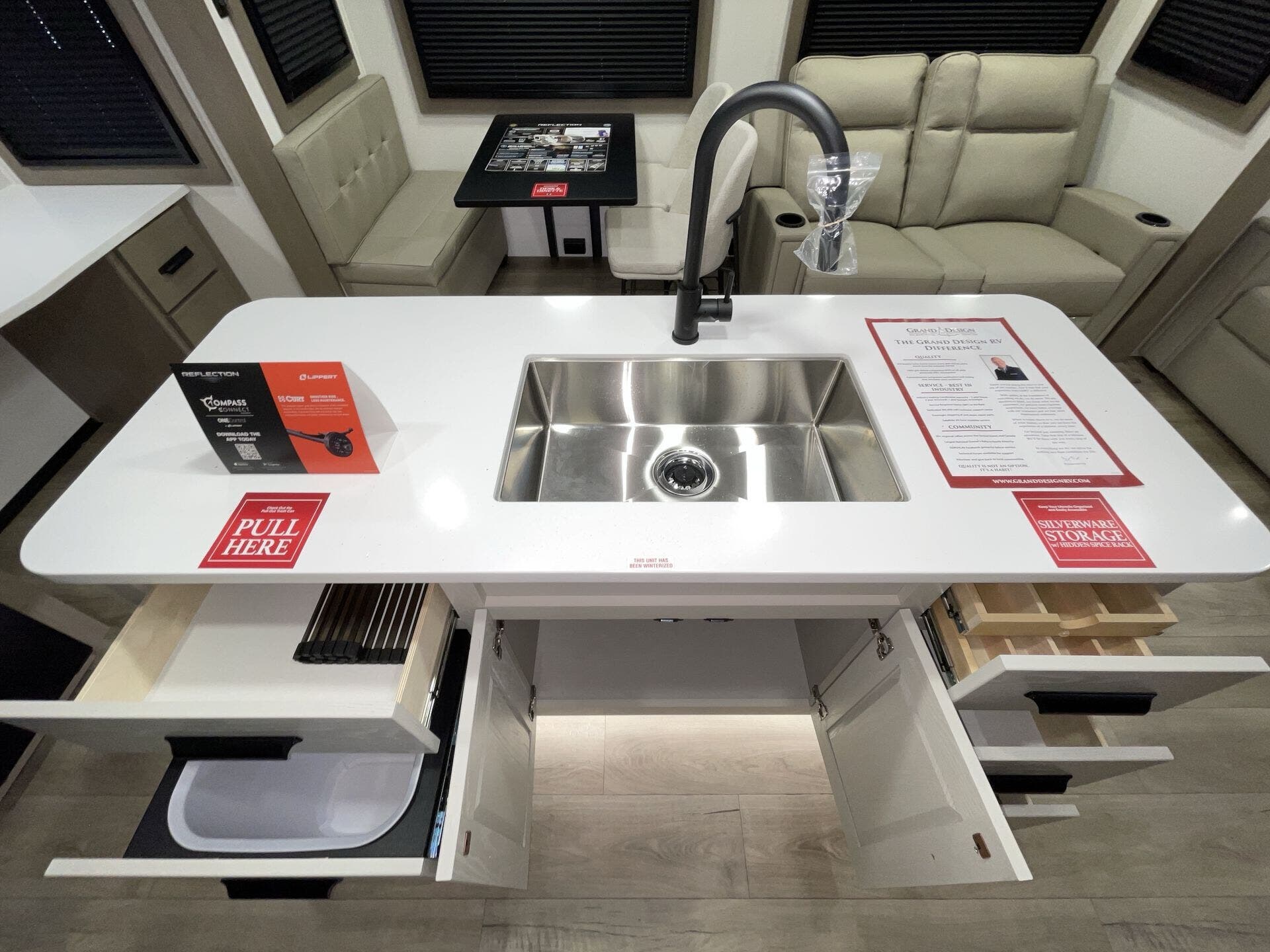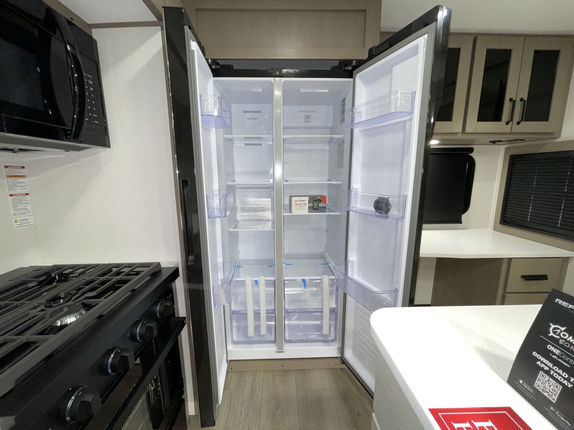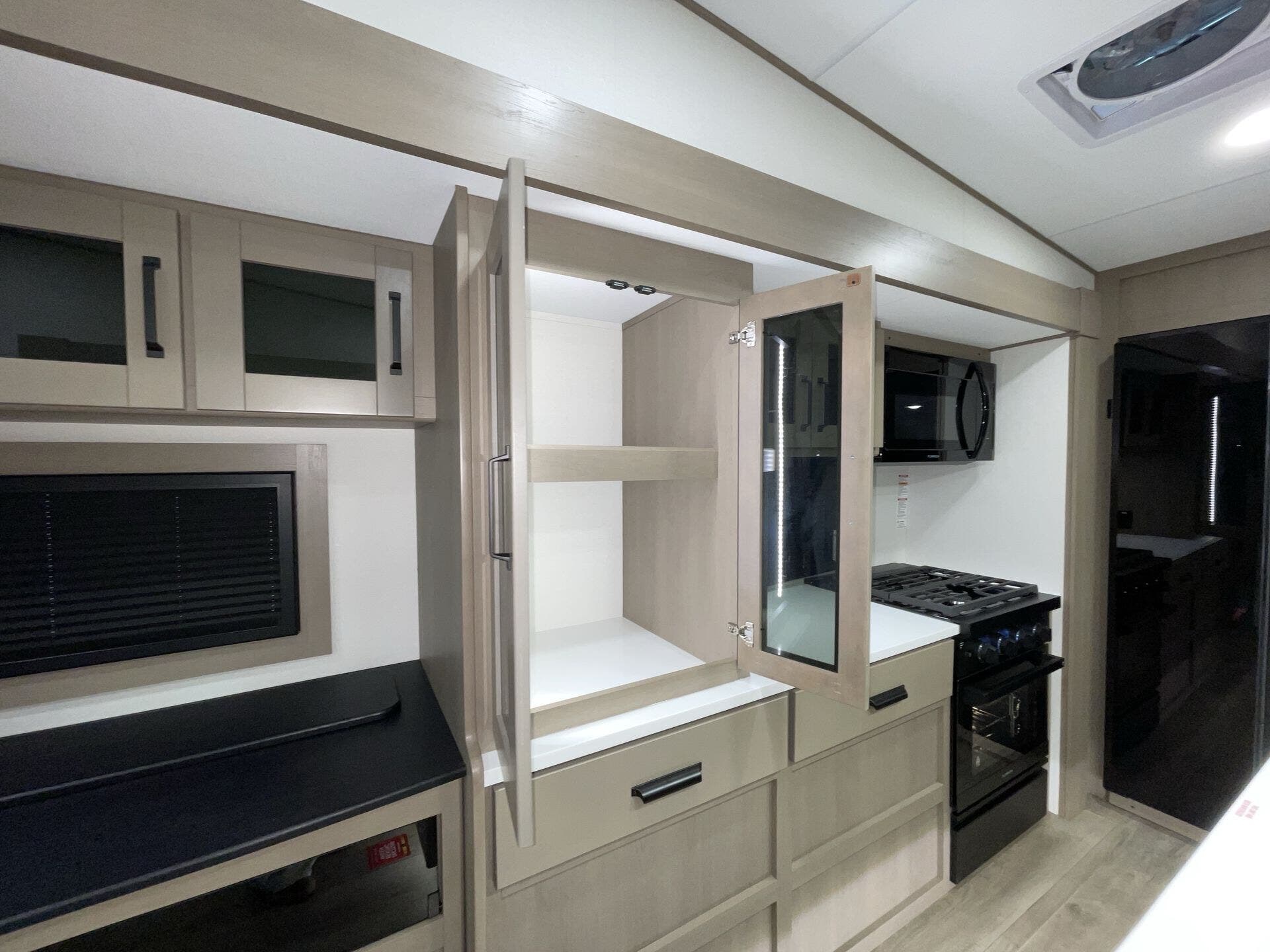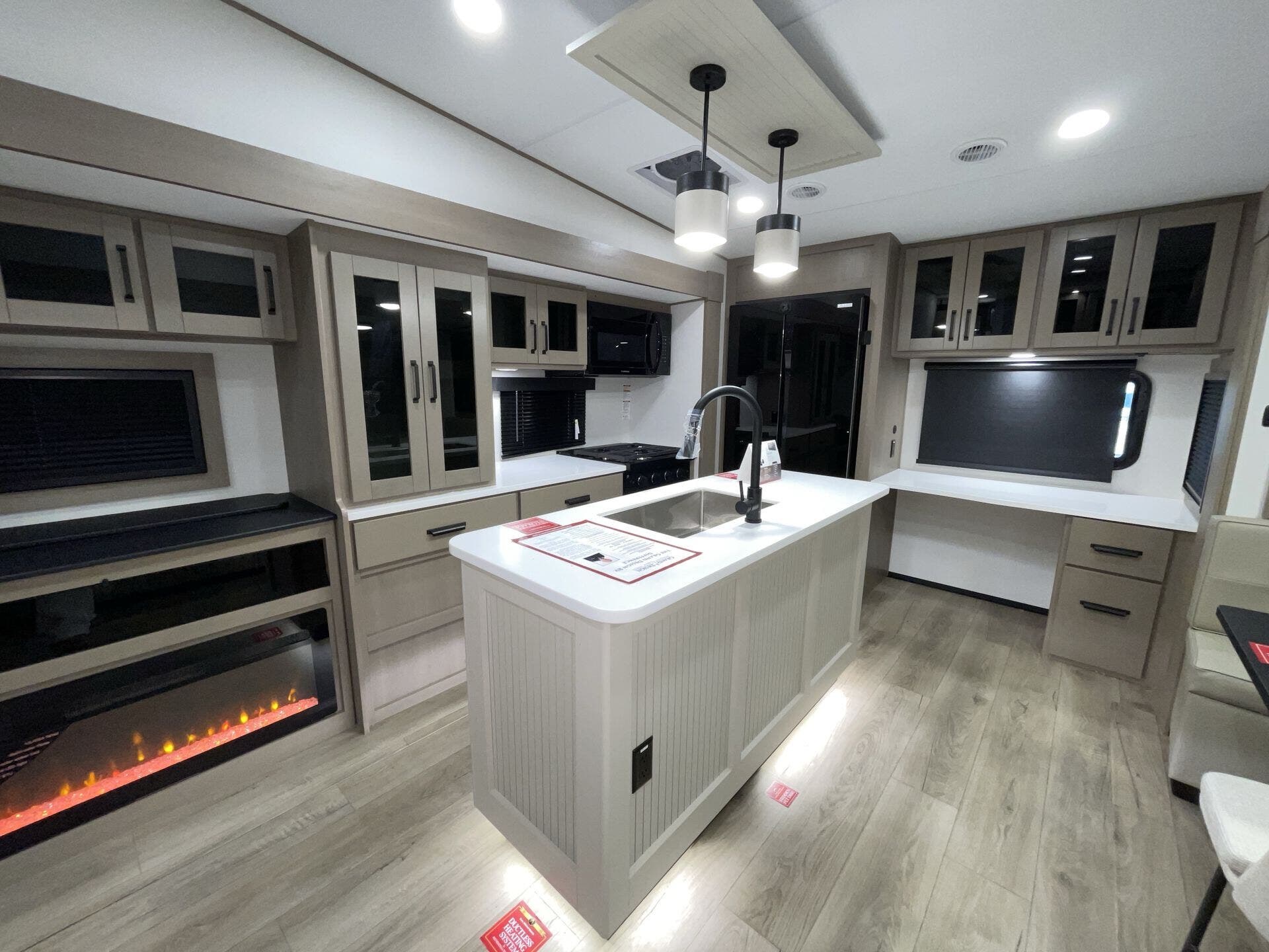 This Reflection 320 MKS is exactly the kind of rig you’d appreciate if you want serious living-space in your RV without going huge. Step inside and you’ll notice the difference immediately: the center island kitchen gives you that “real home” feel, while the three slide-outs open things up so you’re not living in a mobile box.