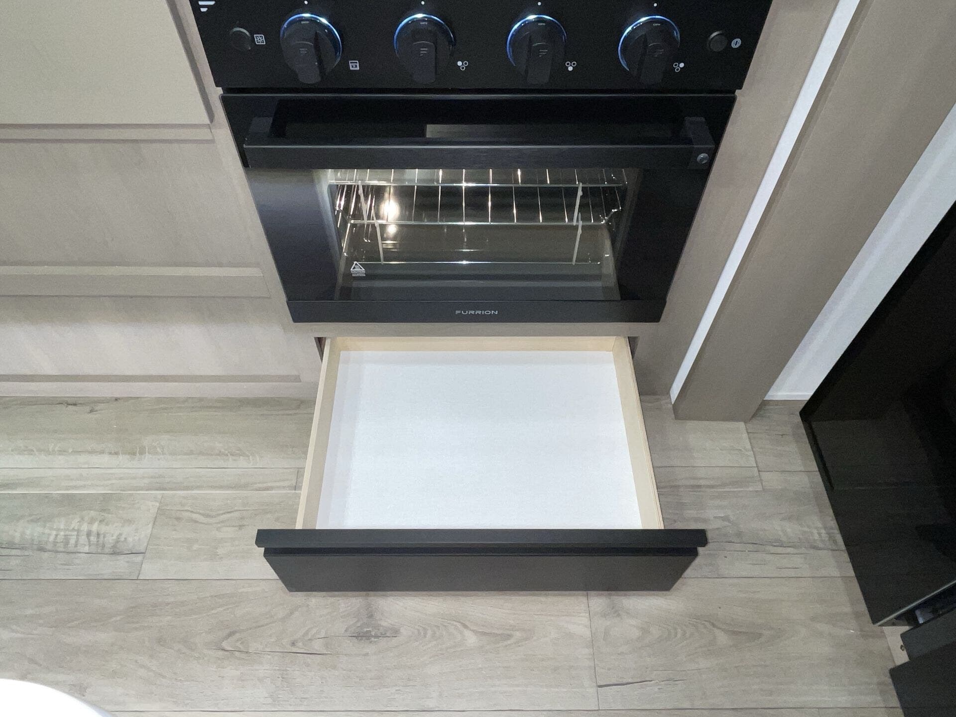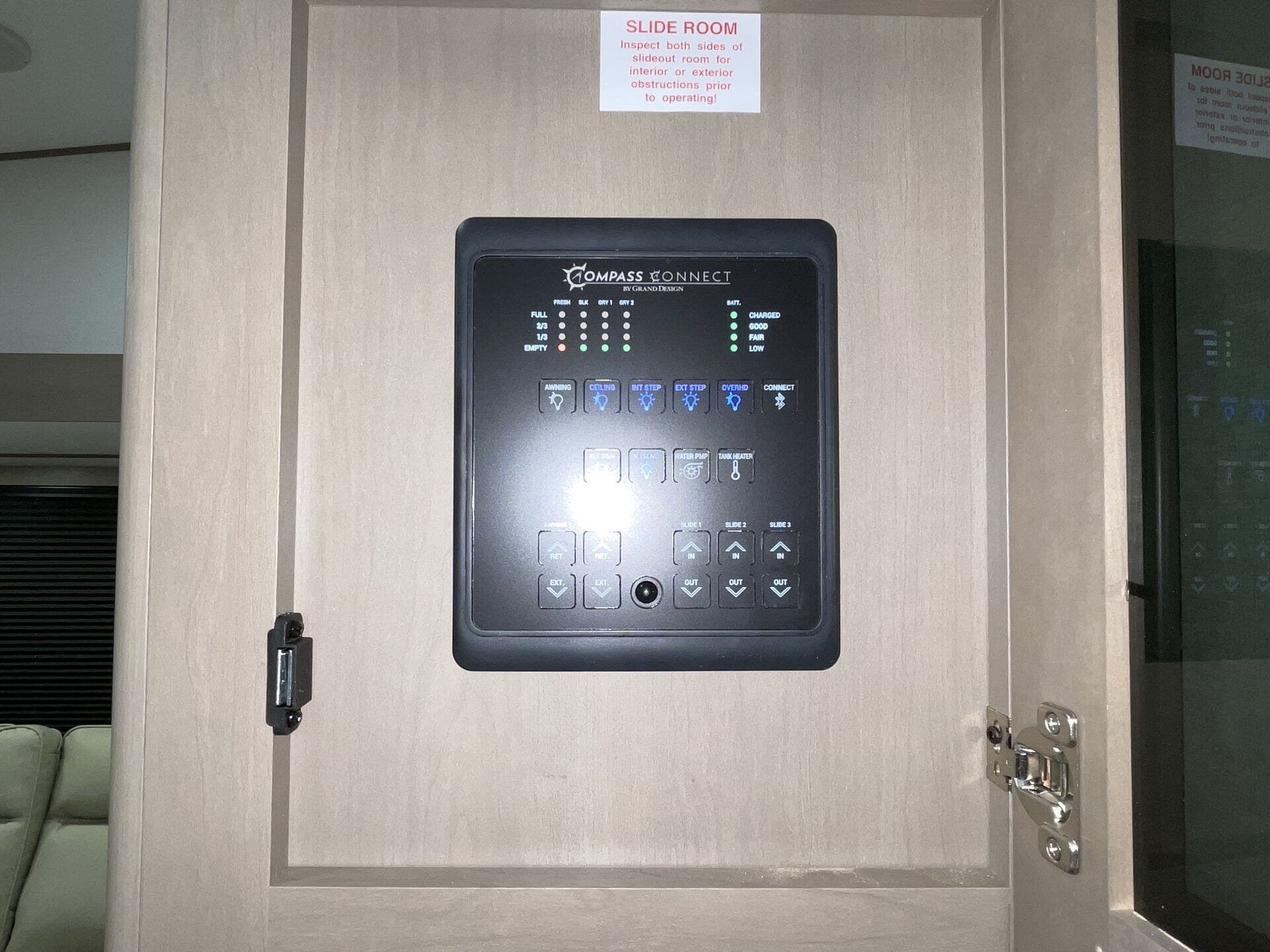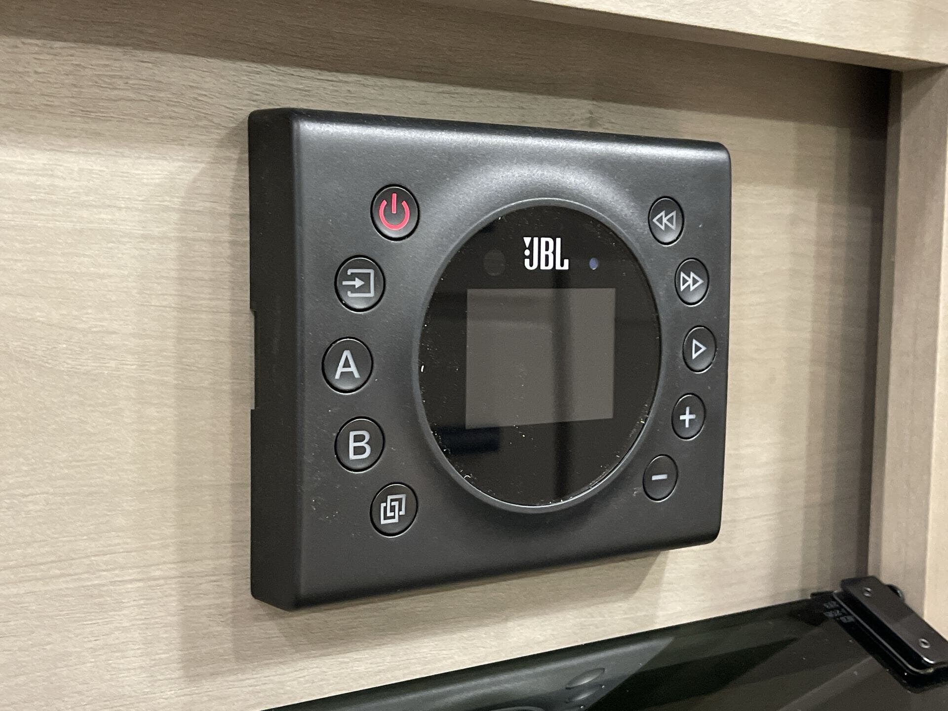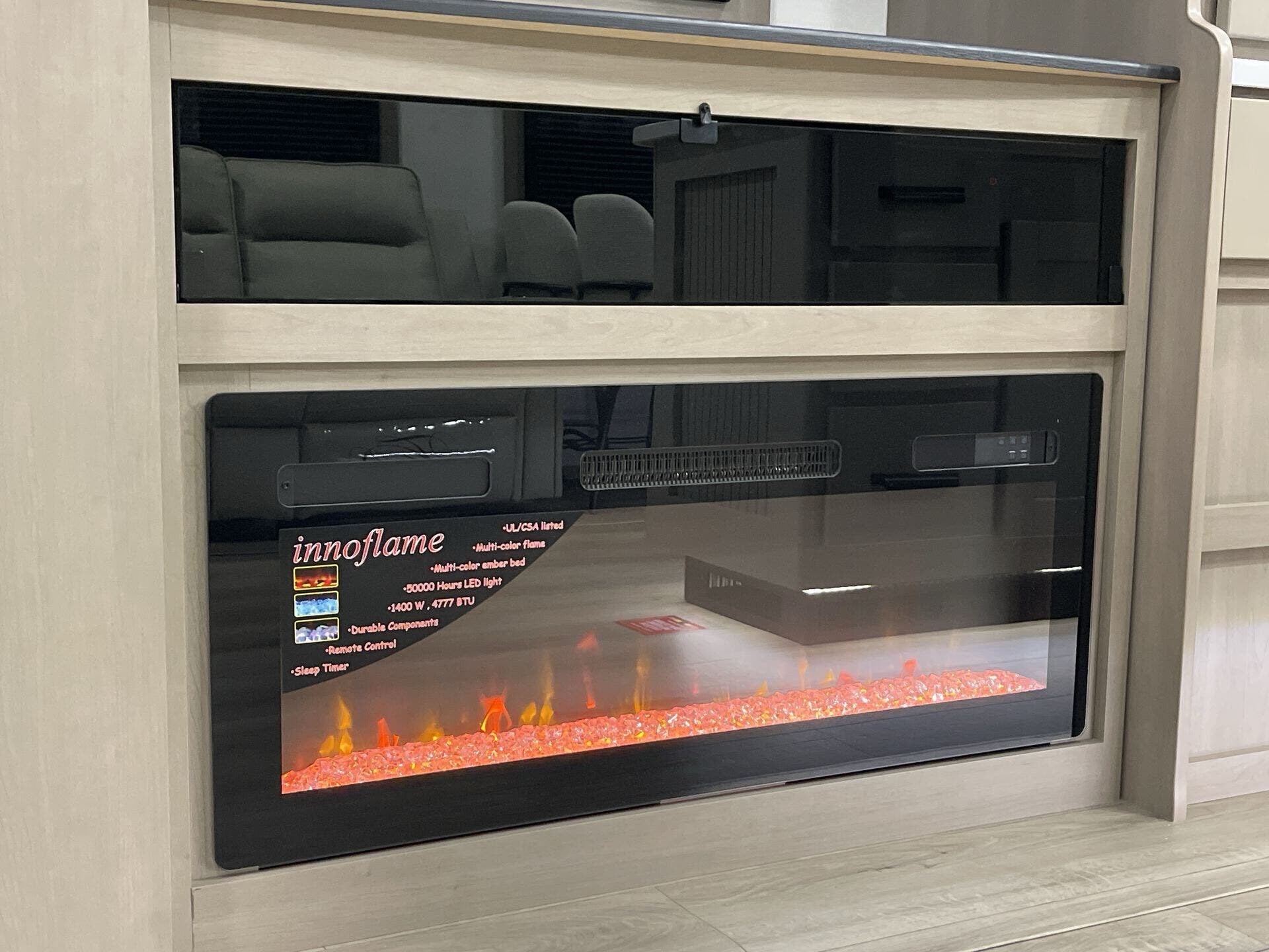 Premium features: 16 cu ft fridge, solid-surface counters, pass-through storage & power awning