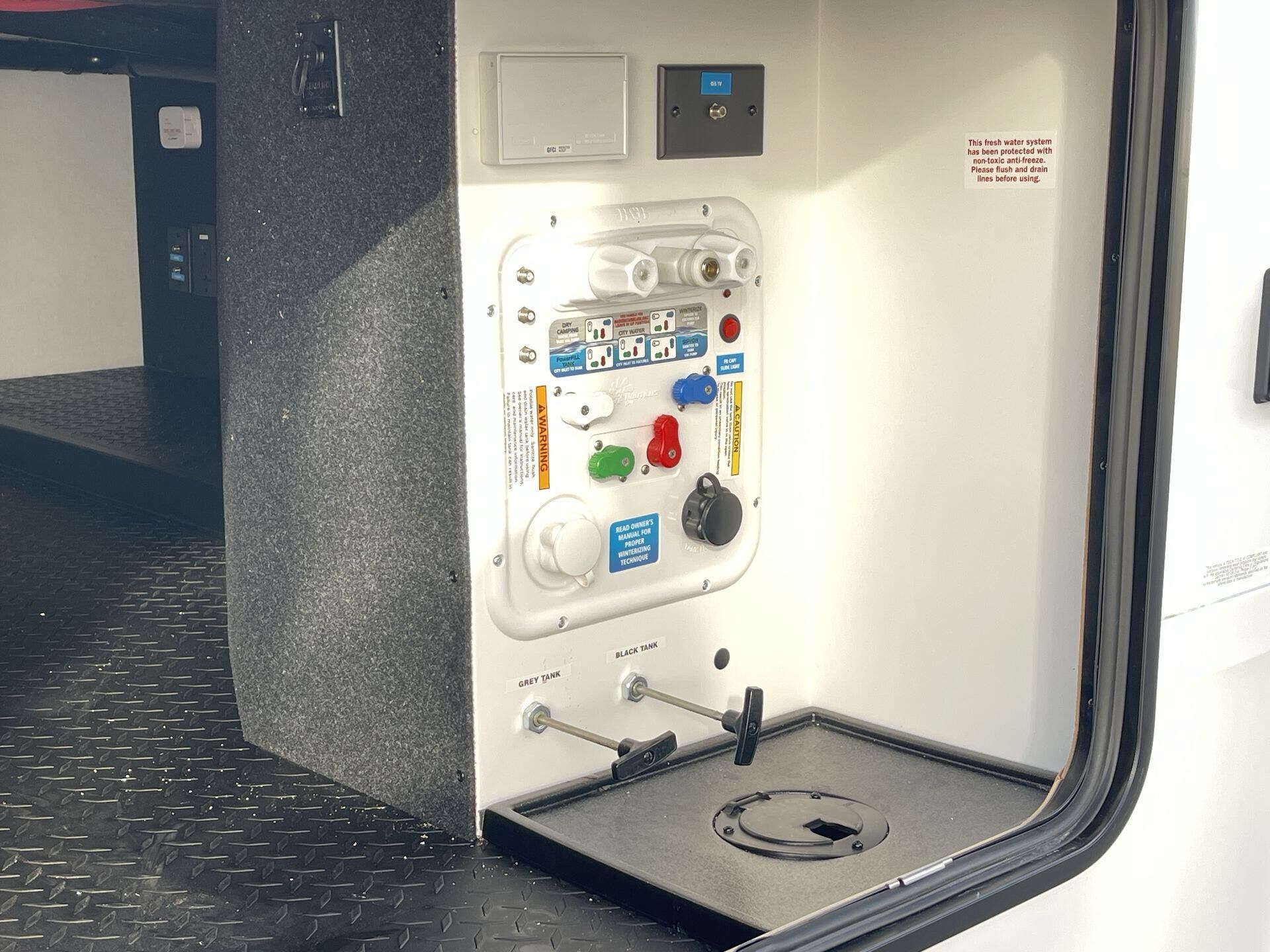 The layout gives you a dedicated front bedroom for privacy and comfort, and the back living area is ideal for relaxing, sneaking in a movie or entertaining. The big water tanks mean less stopping for refills or dumps — which means more time actually camping.