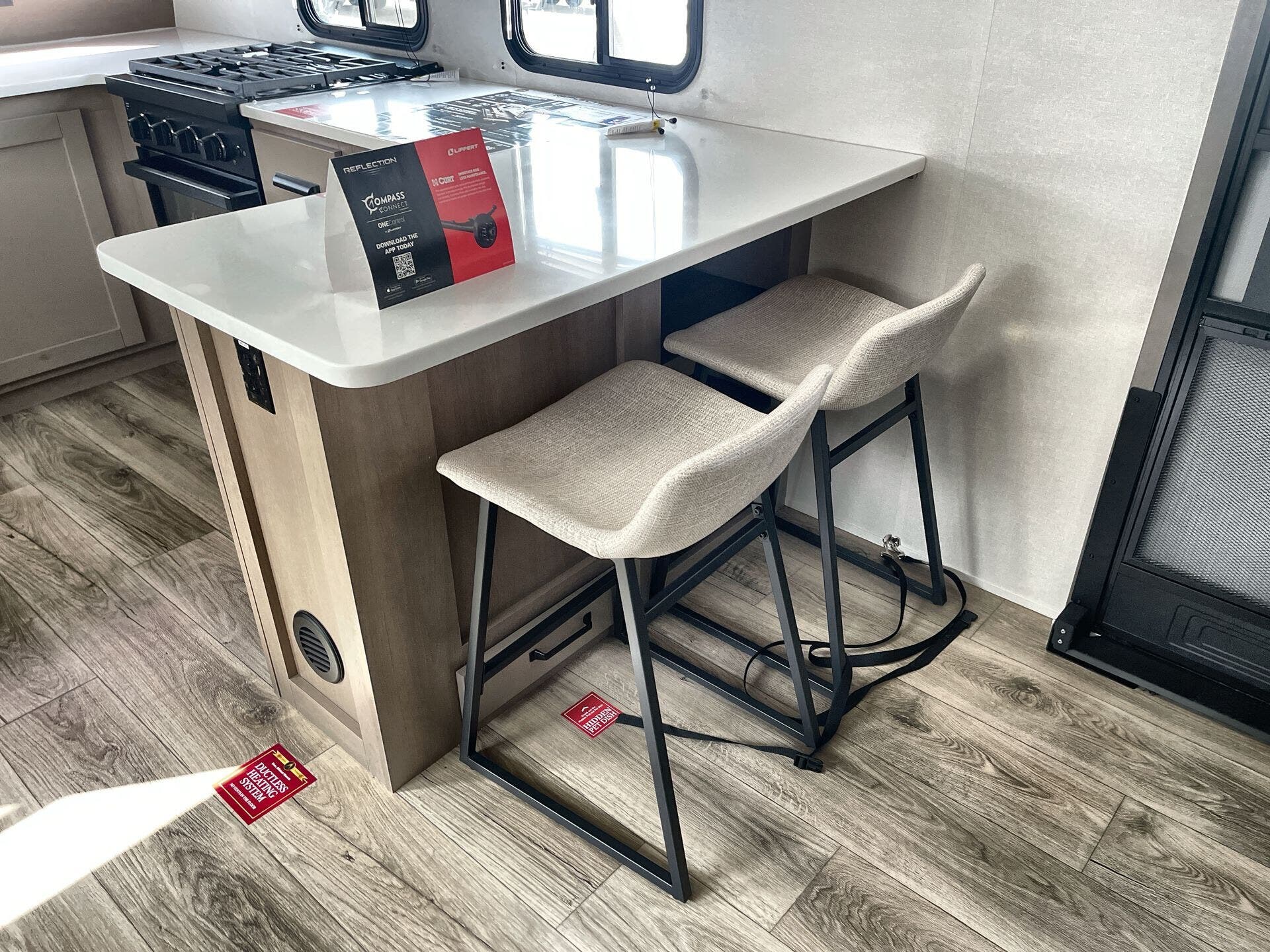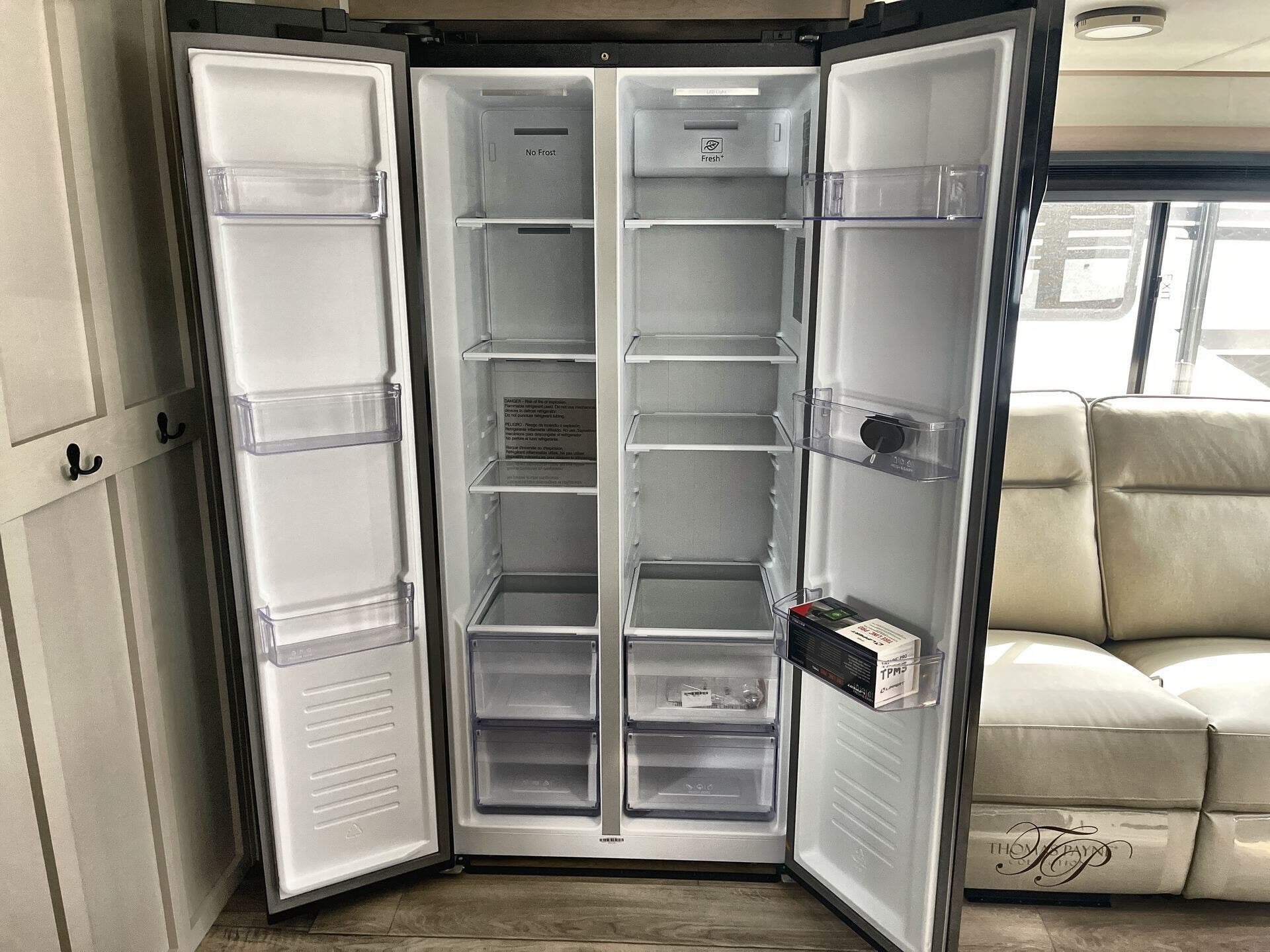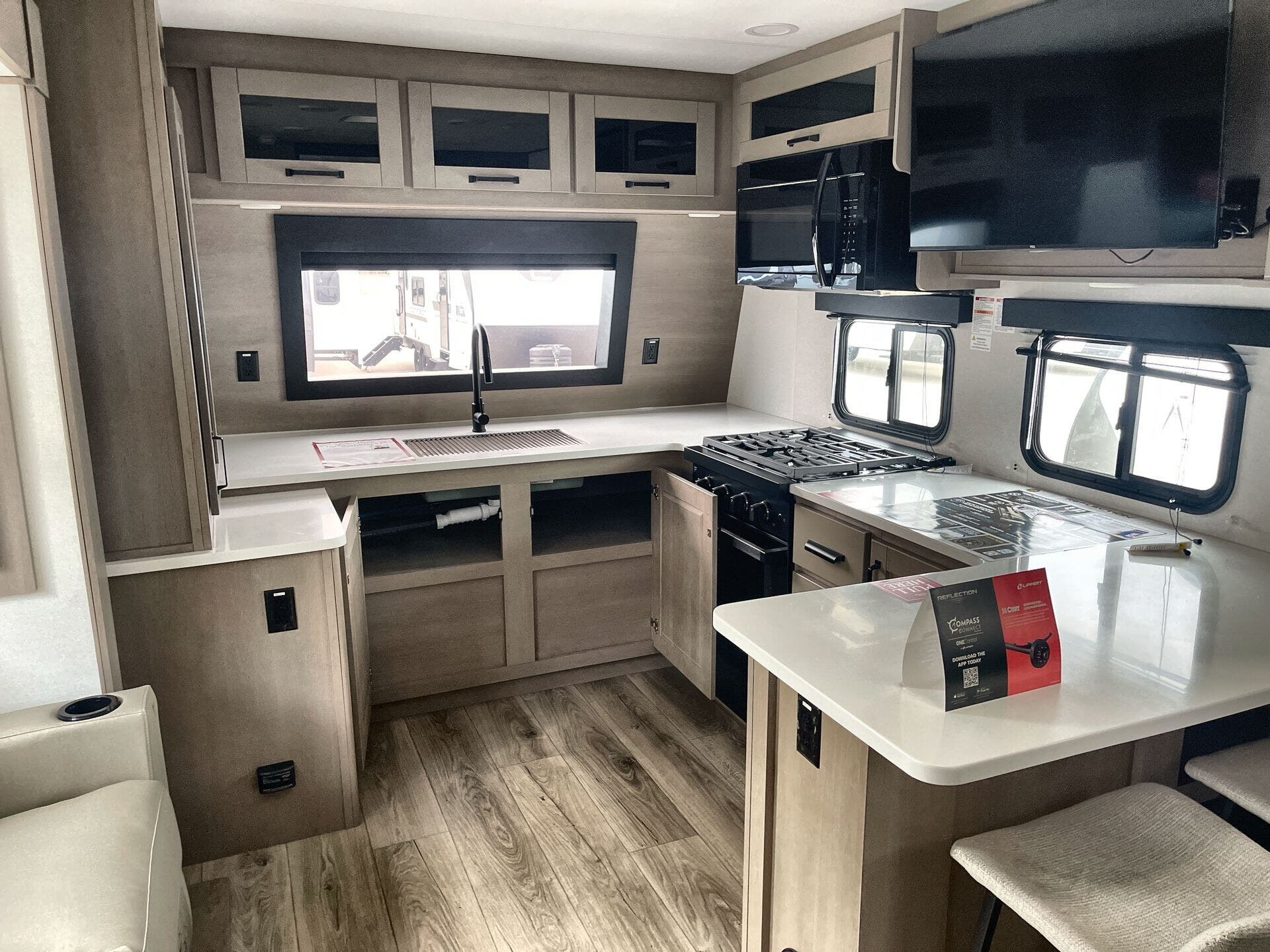 The Reflection 322FKTS prioritizes livability without sacrificing rugged durability. Its two-slide layout expands living space, creating a welcoming environment for gatherings after a day on the road. A roof deck option adds outdoor versatility, ideal for sunrise coffee or sunset views. Thoughtful storage is present throughout, including pass-thru storage for gear and a kitchen that accommodates family meals on the go.