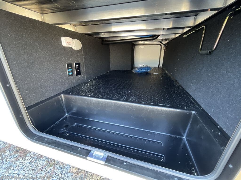 When you are looking for a versatile extra room for either a second bedroom or living area as well as an office, this middle bunkhouse might just work! There is a slide out with two bunks and drawers plus a dresser. You can sleep like a queen on the walk-around bed in the front private bedroom that offers more clothing storage and windows for views. The rear main living and kitchen area provides plenty of seating on the a 78" triple person theater seats, and on the 92" U-shaped lounge with table with windows within the slide for natural lighting and great views. The kitchen island gives the cook more space to make and serve meals, and the gourmet kitchen includes a 16 cu. ft. refrigerator, plus a pantry for dry goods. There is an exterior outside kitchen with a griddle and a 1.6 cu. ft. refrigerator for beverages and such, plus you will find an LP quick connect, Coax TV hookup, and a spray port to wash off your dirty shoes.