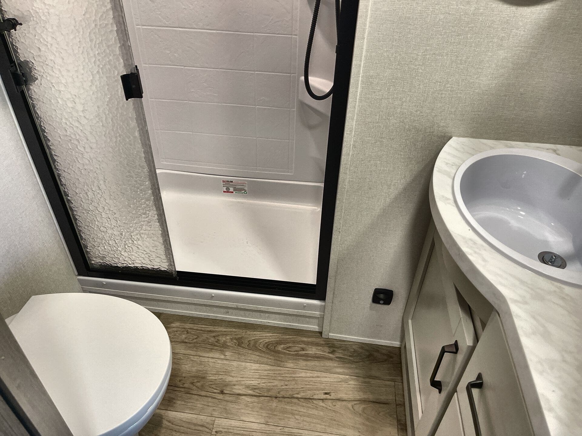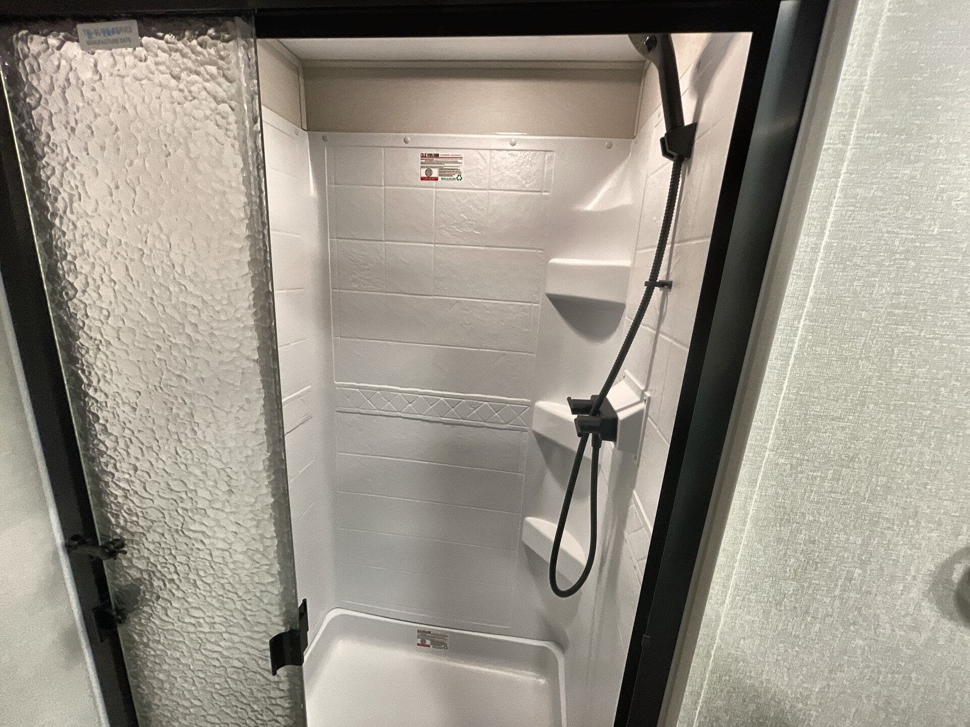 Up front, the private master suite includes a queen bed (king optional), overhead cabinets, wardrobe slide, and direct access to the full bathroom with a walk-in shower and skylight. Exterior highlights include an all-weather insulation package, a power awning with LED lighting, and pass-through storage for all your gear. Whether you're traveling with family or need flexible space for guests and hobbies, the 2026 Grand Design Reflection 324MBS is a fifth wheel that adapts to your lifestyle — with the comfort, craftsmanship, and luxury you expect from Grand Design.