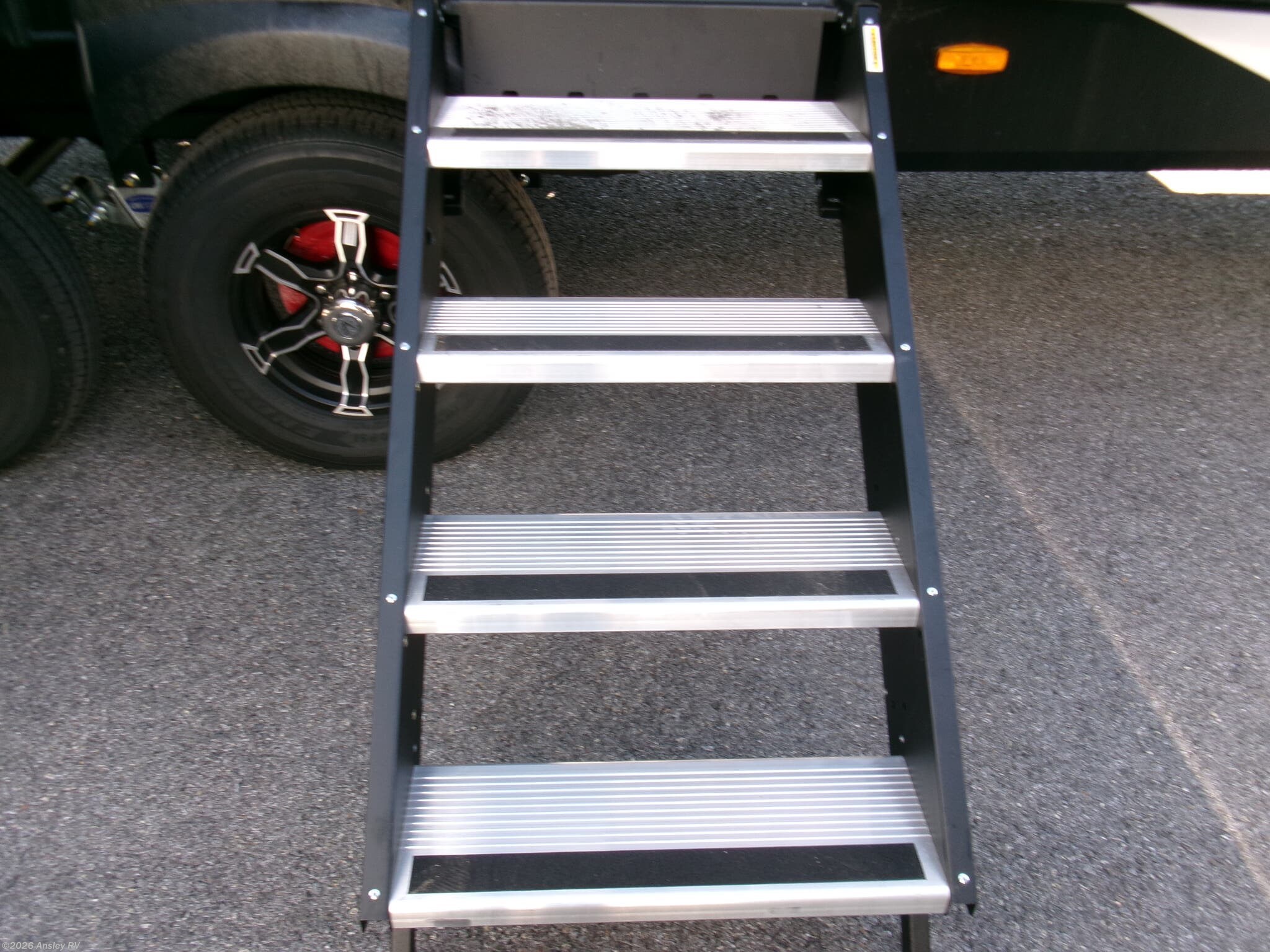 Awning, Exterior Speakers, External Shower, Hitch, Ladder, Leveling Jacks, Outside Entertainment Center, Outside Kitchen, Power Roof Vent, Skylight, Slideout, Spare Tire Kit -