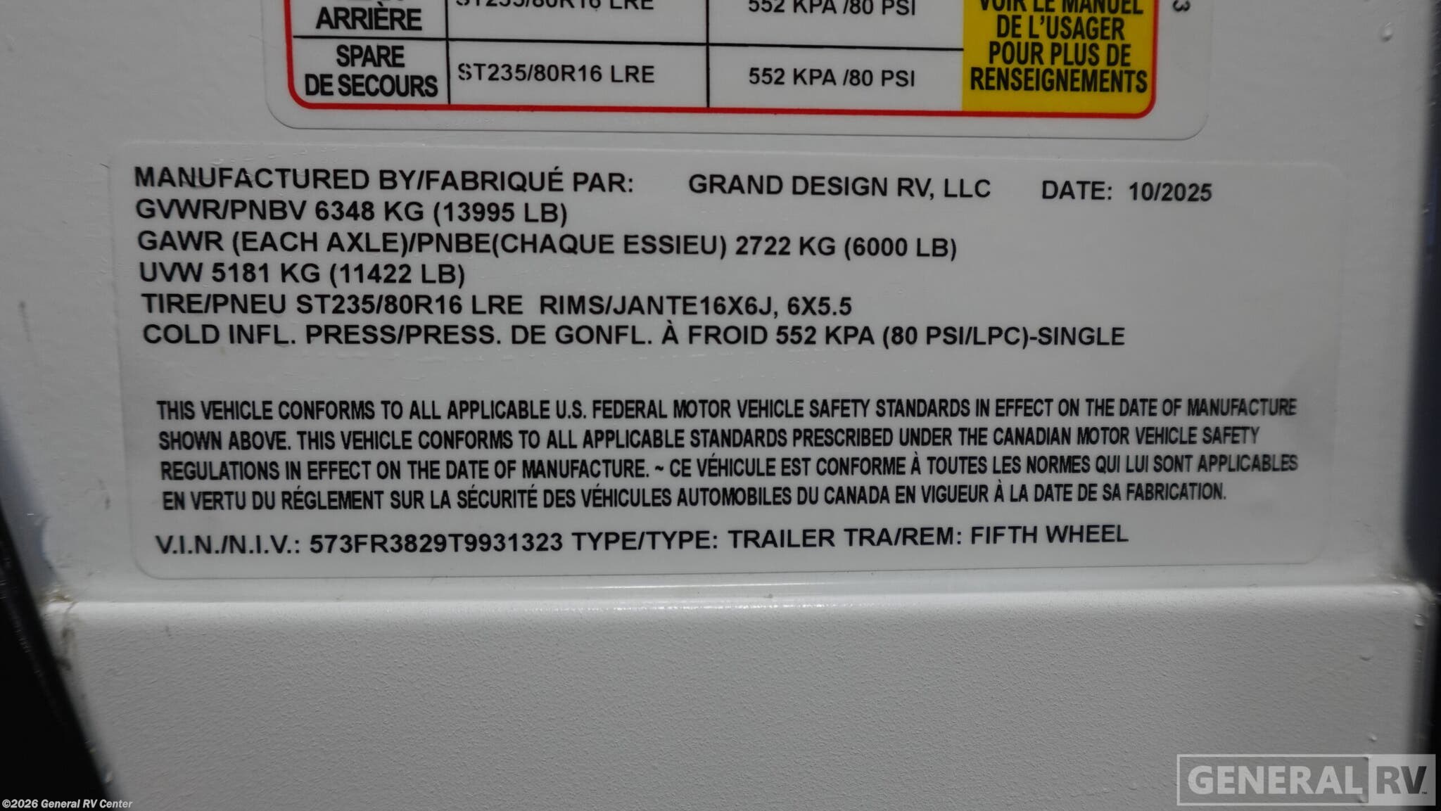Request More Info on this 2026 Grand Design Reflection 324MBS Offered for sale by General RV Center