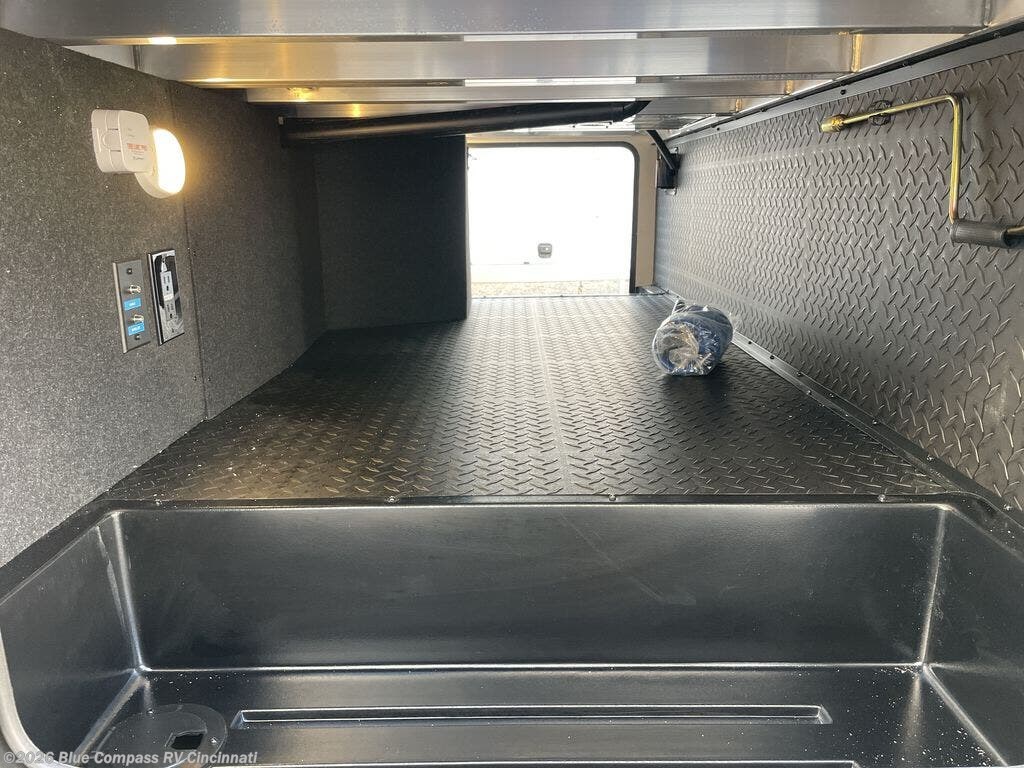 When you are looking for a versatile extra room for either a second bedroom or living area as well as an office, this middle bunkhouse might just work! There is a slide out with two bunks and drawers plus a dresser. You can sleep like a queen on the walk-around bed in the front private bedroom that offers more clothing storage and windows for views. The rear main living and kitchen area provides plenty of seating on the a 78" triple person theater seats, and on the 92" U-shaped lounge with table with windows within the slide for natural lighting and great views. The kitchen island gives the cook more space to make and serve meals, and the gourmet kitchen includes a 16 cu. ft. refrigerator, plus a pantry for dry goods. There is an exterior outside kitchen with a griddle and a 1.6 cu. ft. refrigerator for beverages and such, plus you will find an LP quick connect, Coax TV hookup, and a spray port to wash off your dirty shoes.