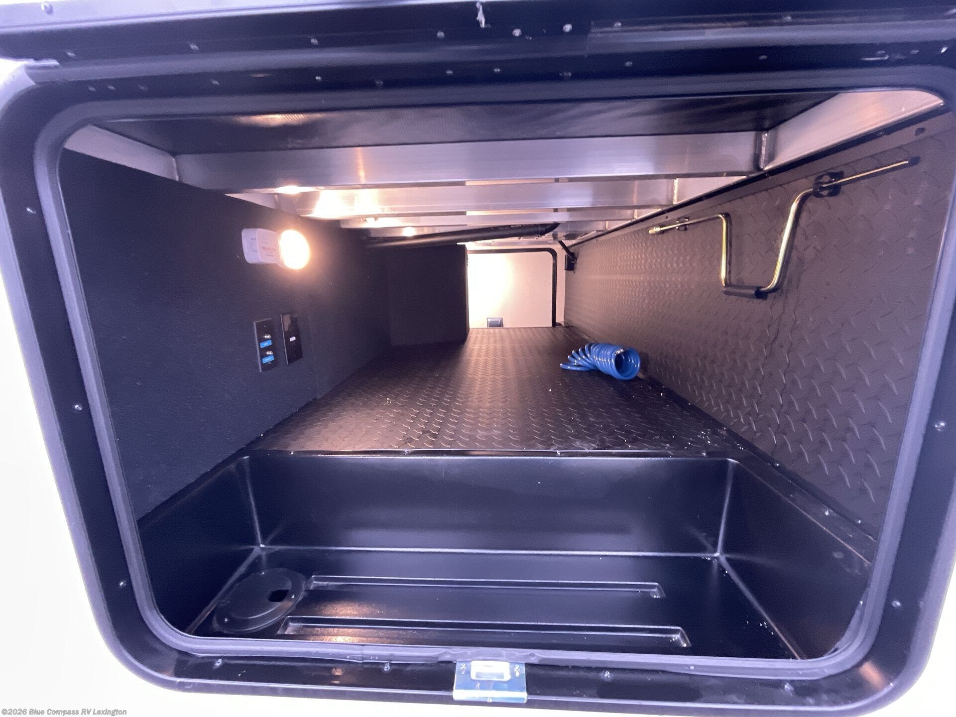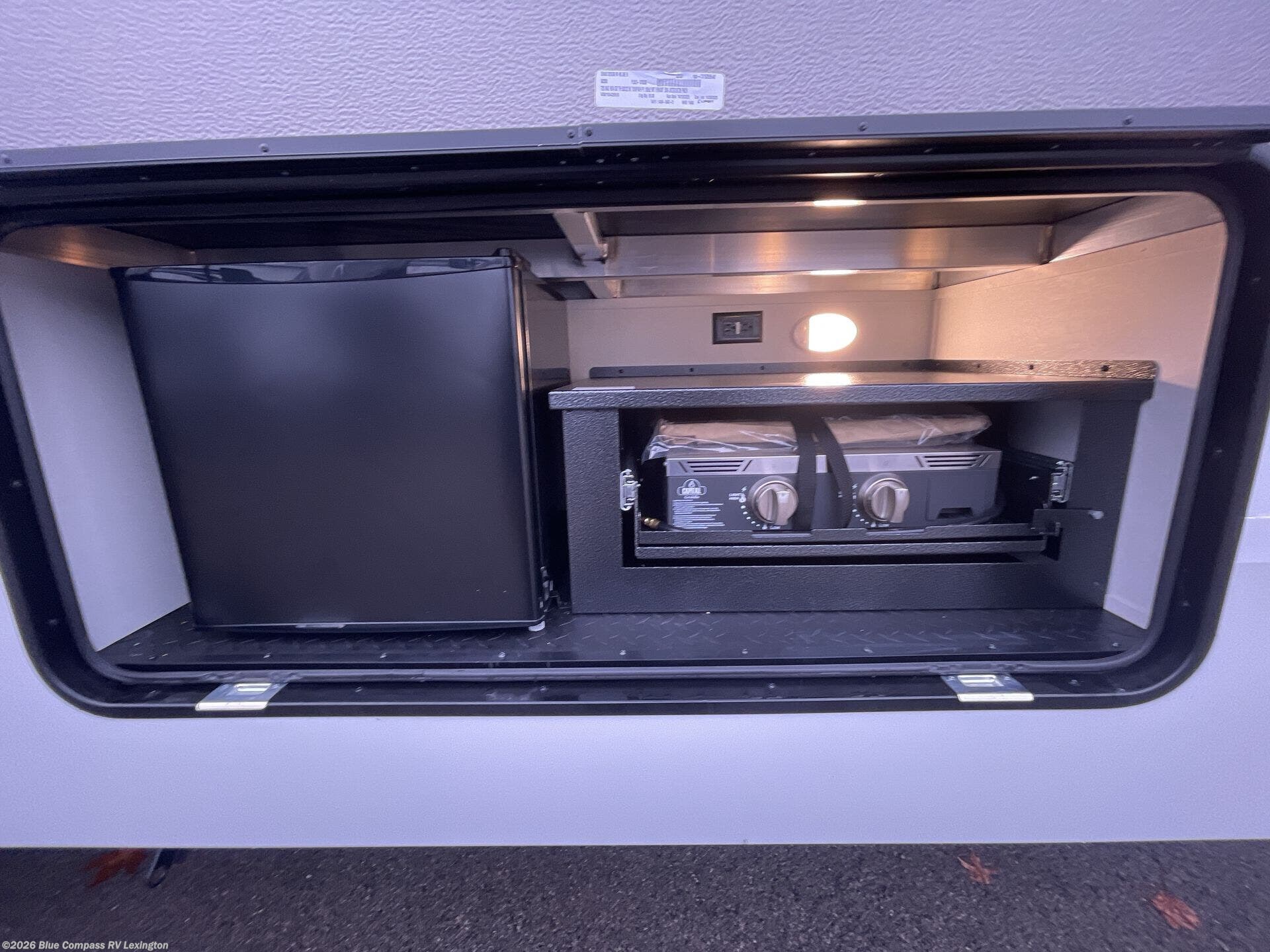 When you are looking for a versatile extra room for either a second bedroom or living area as well as an office, this middle bunkhouse might just work! There is a slide out with two bunks and drawers plus a dresser. You can sleep like a queen on the walk-around bed in the front private bedroom that offers more clothing storage and windows for views. The rear main living and kitchen area provides plenty of seating on the a 78" triple person theater seats, and on the 92" U-shaped lounge with table with windows within the slide for natural lighting and great views. The kitchen island gives the cook more space to make and serve meals, and the gourmet kitchen includes a 16 cu. ft. refrigerator, plus a pantry for dry goods. There is an exterior outside kitchen with a griddle and a 1.6 cu. ft. refrigerator for beverages and such, plus you will find an LP quick connect, Coax TV hookup, and a spray port to wash off your dirty shoes.