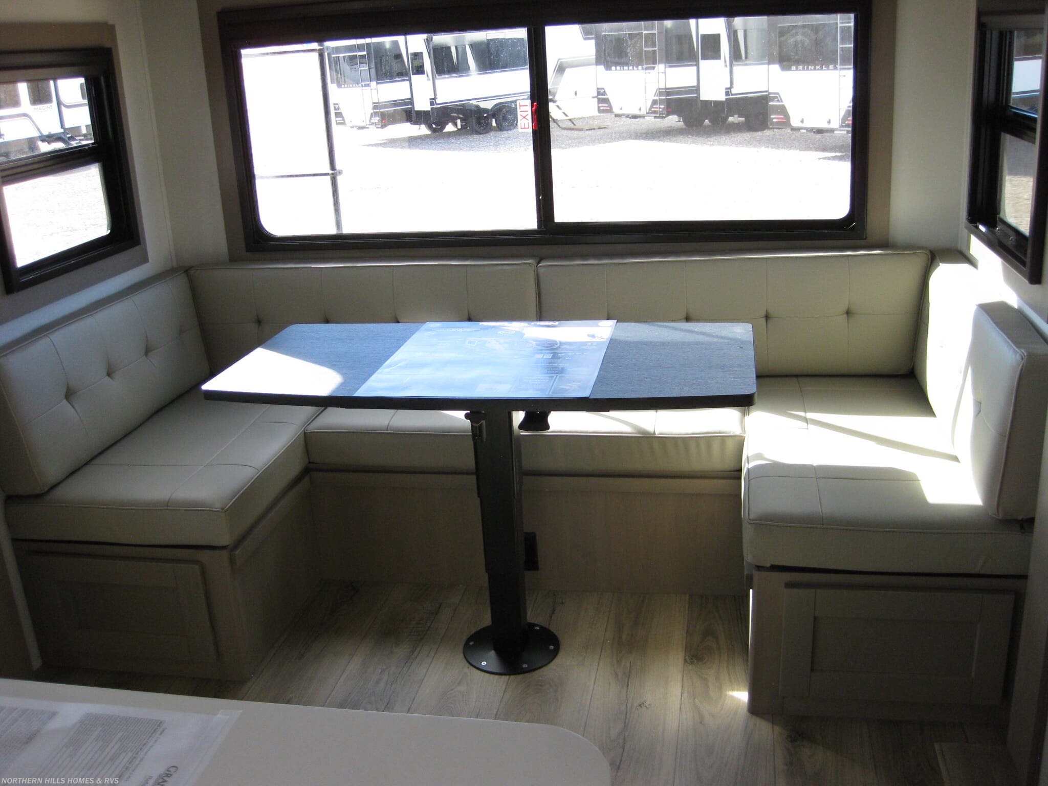 Booth Dinette, Dinette, Hide-A-Bed, Medicine Cabinet, Shower, Solid Surface Countertops, Toilet, Vanity