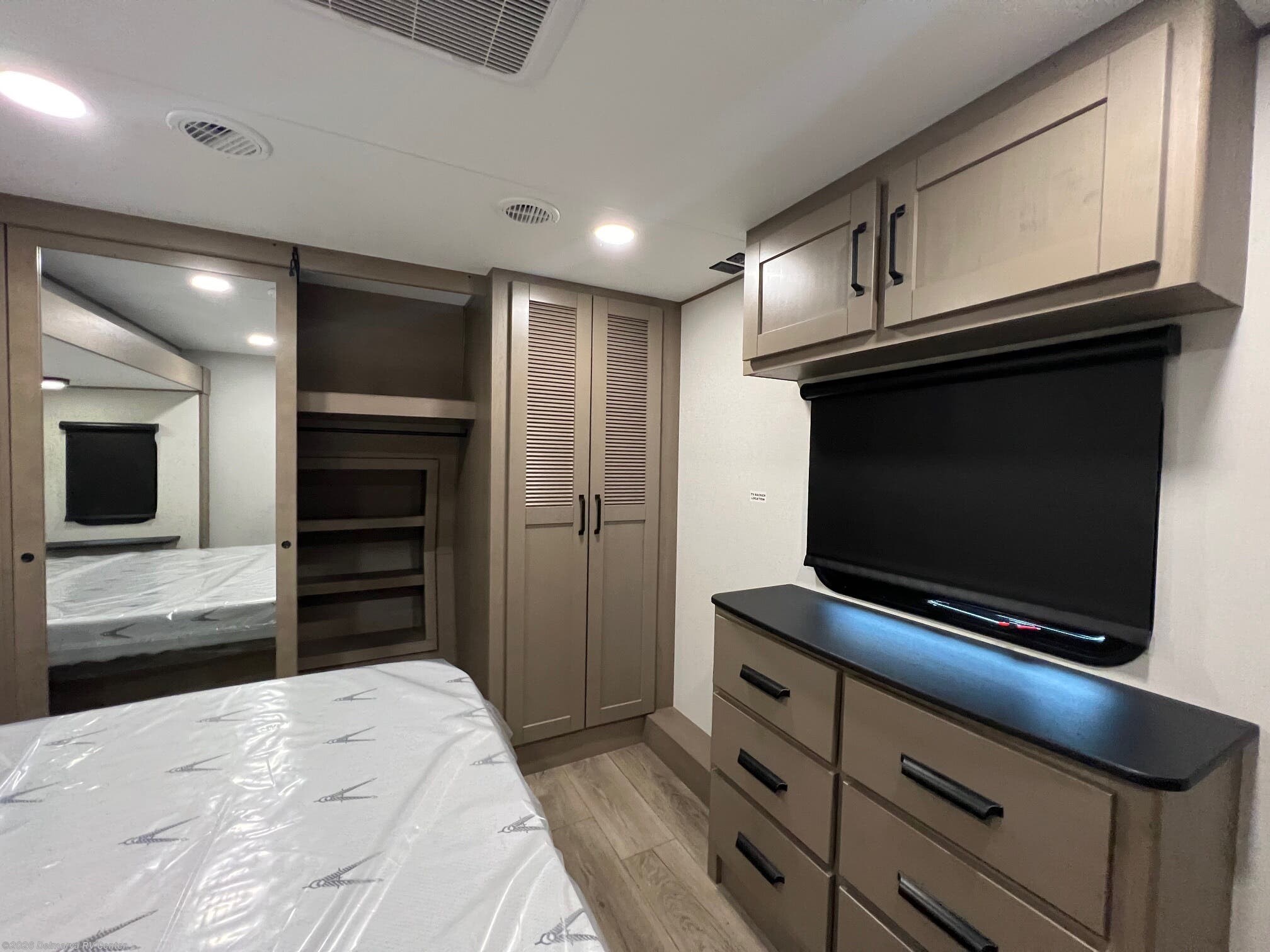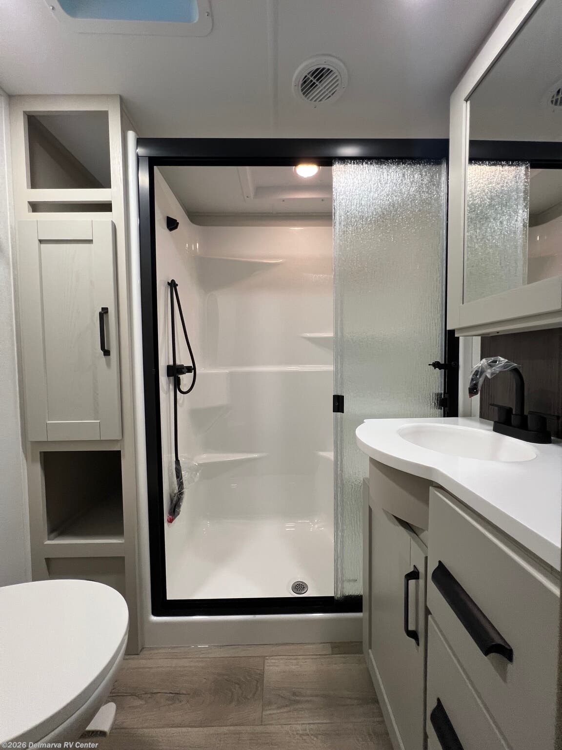 The campground will feel like home in this 2026 Grand Design Reflection 337RLS. Ready to be a proud Grand Design owner? This 2026 Grand Design Reflection 337RLS is the perfect fit. This rig sleeps 4, so it makes the perfect family RV. With three slides, this rig feels roomy and spacious inside. Entertain or cook up a cozy meal just for you in this RV kitchen equipped with the fridge, oven, stove. Spend time together as a family in the living area with the TV. Use the booth dinette for dinner time, homeschooling or remote work days. Comfort is important when RVing, and you’ll find just that with the queen bed. The A/C option will keep your travels at the perfect temperature. Go longer without filling up thanks to the 74 gallon fresh water tanks. The exterior features make camping a breeze, such as awning, exterior speakers, external shower, hitch, ladder, leveling jacks, power roof vent, skylight, slideout and spare tire kit. An outside shower makes it easier to keep your adventure rig clean.