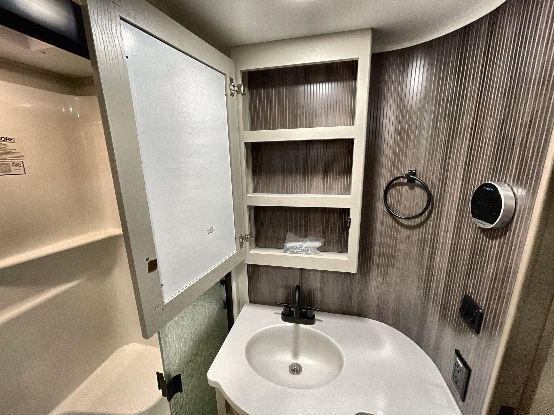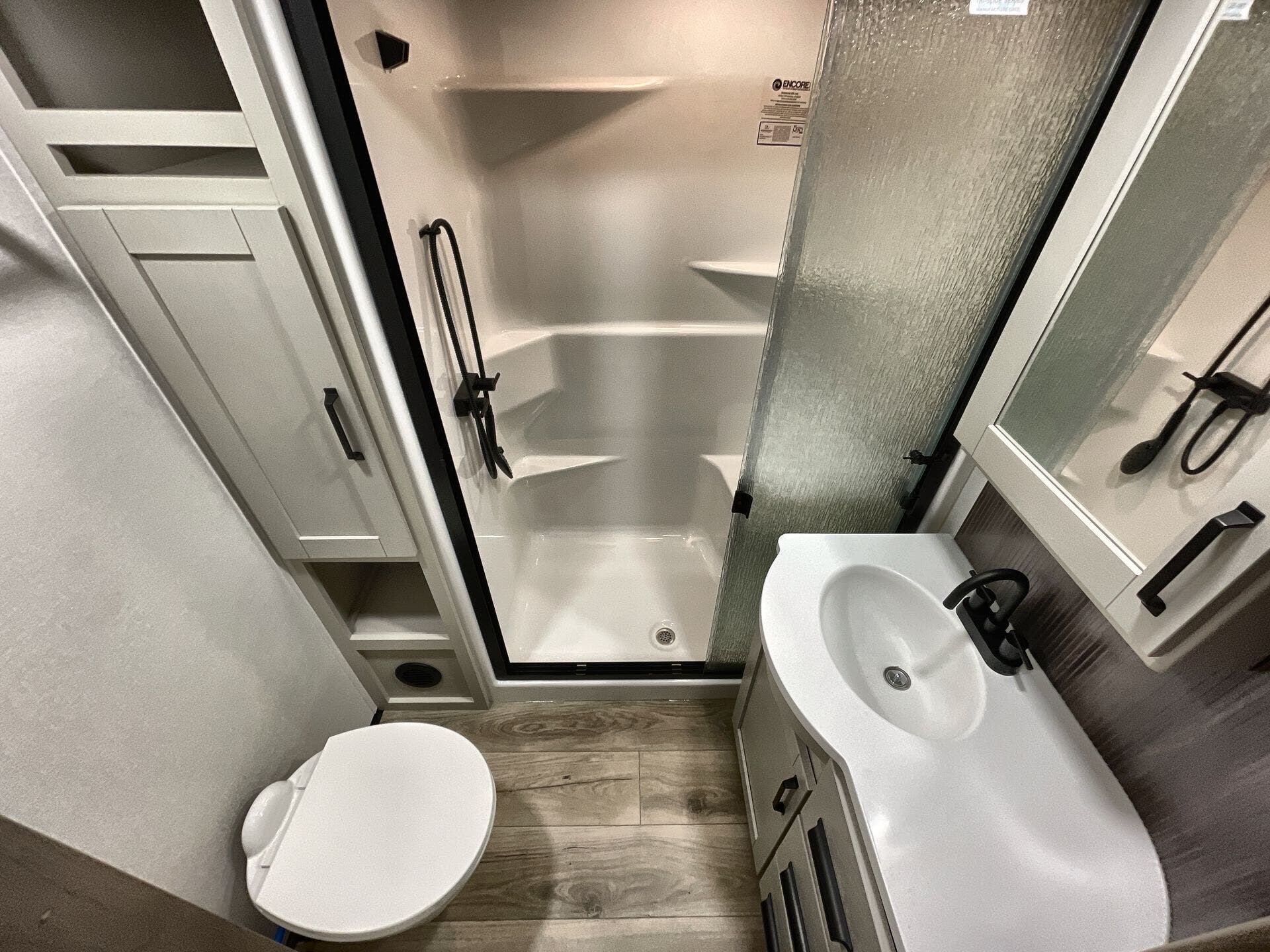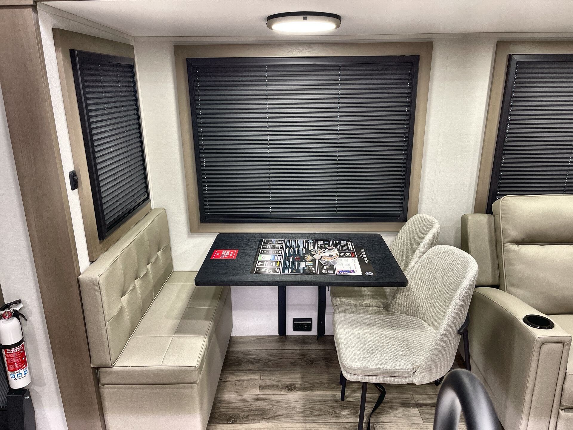 Booth Dinette, Dinette, Hide-A-Bed, Medicine Cabinet, Shower, Solid Surface Countertops, Toilet, Vanity