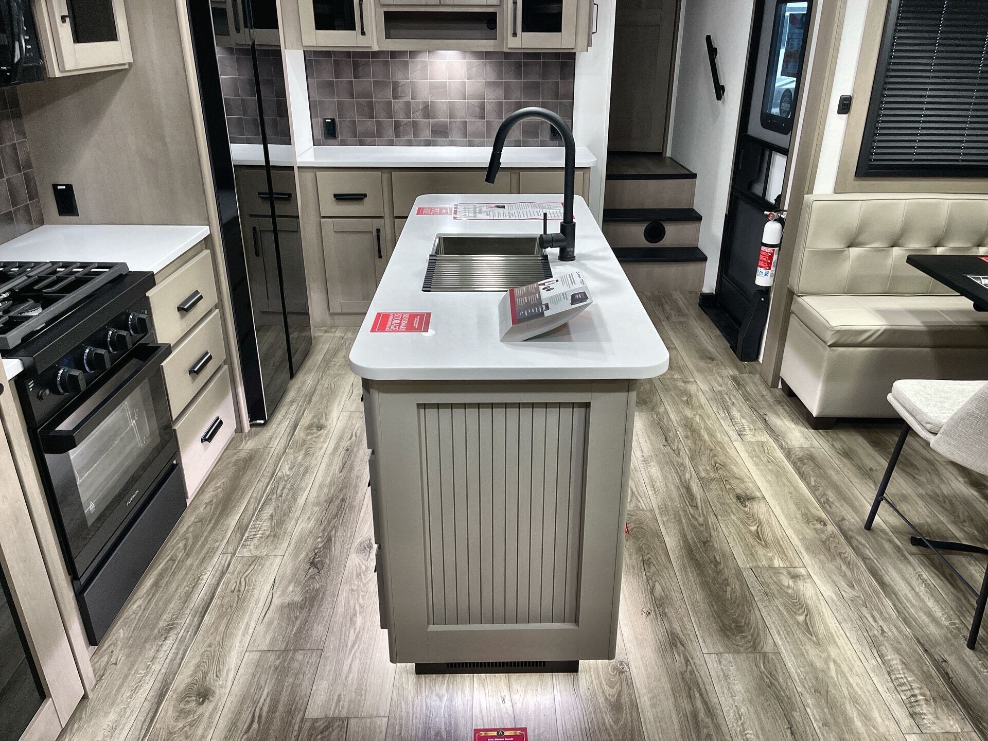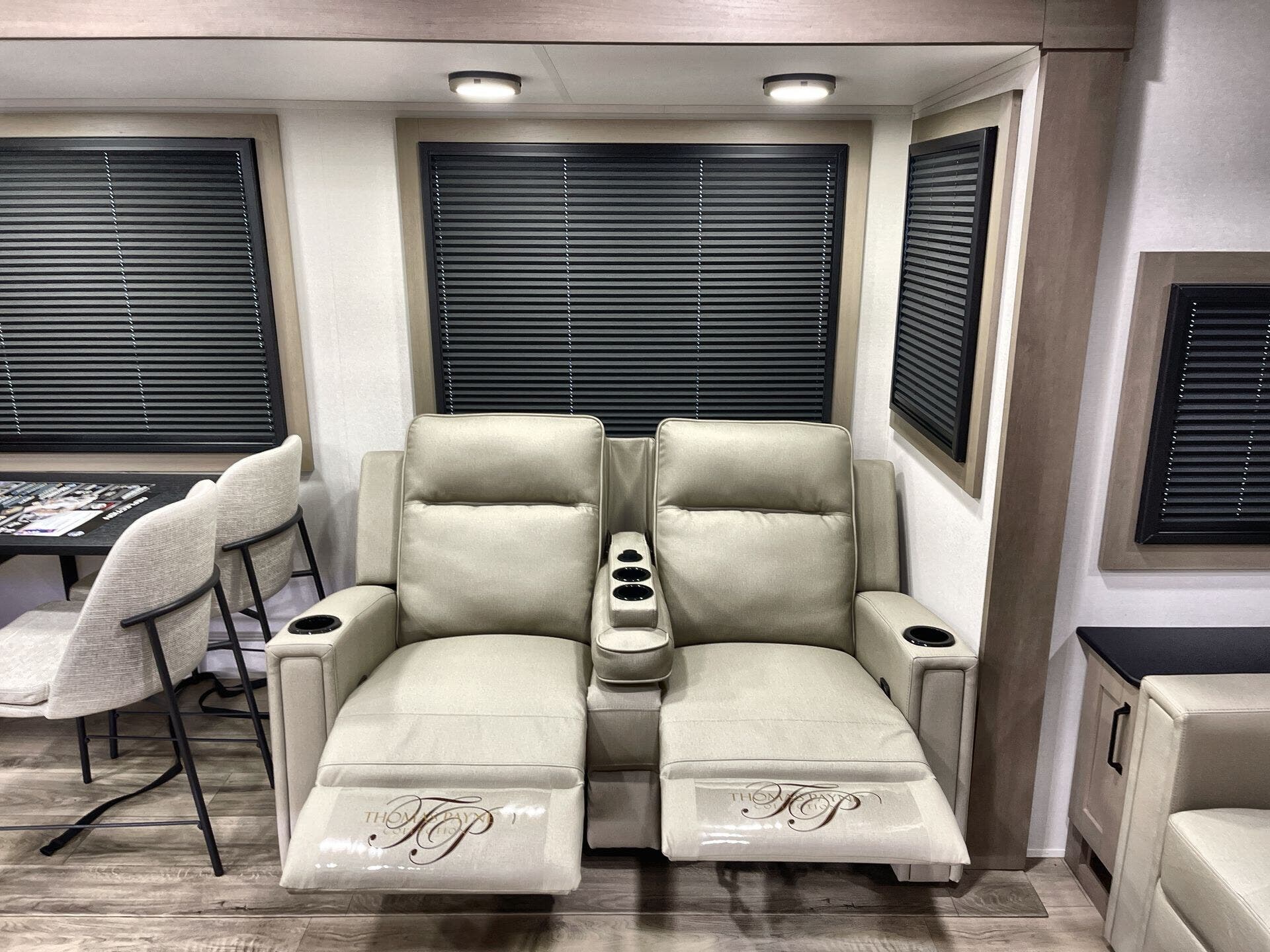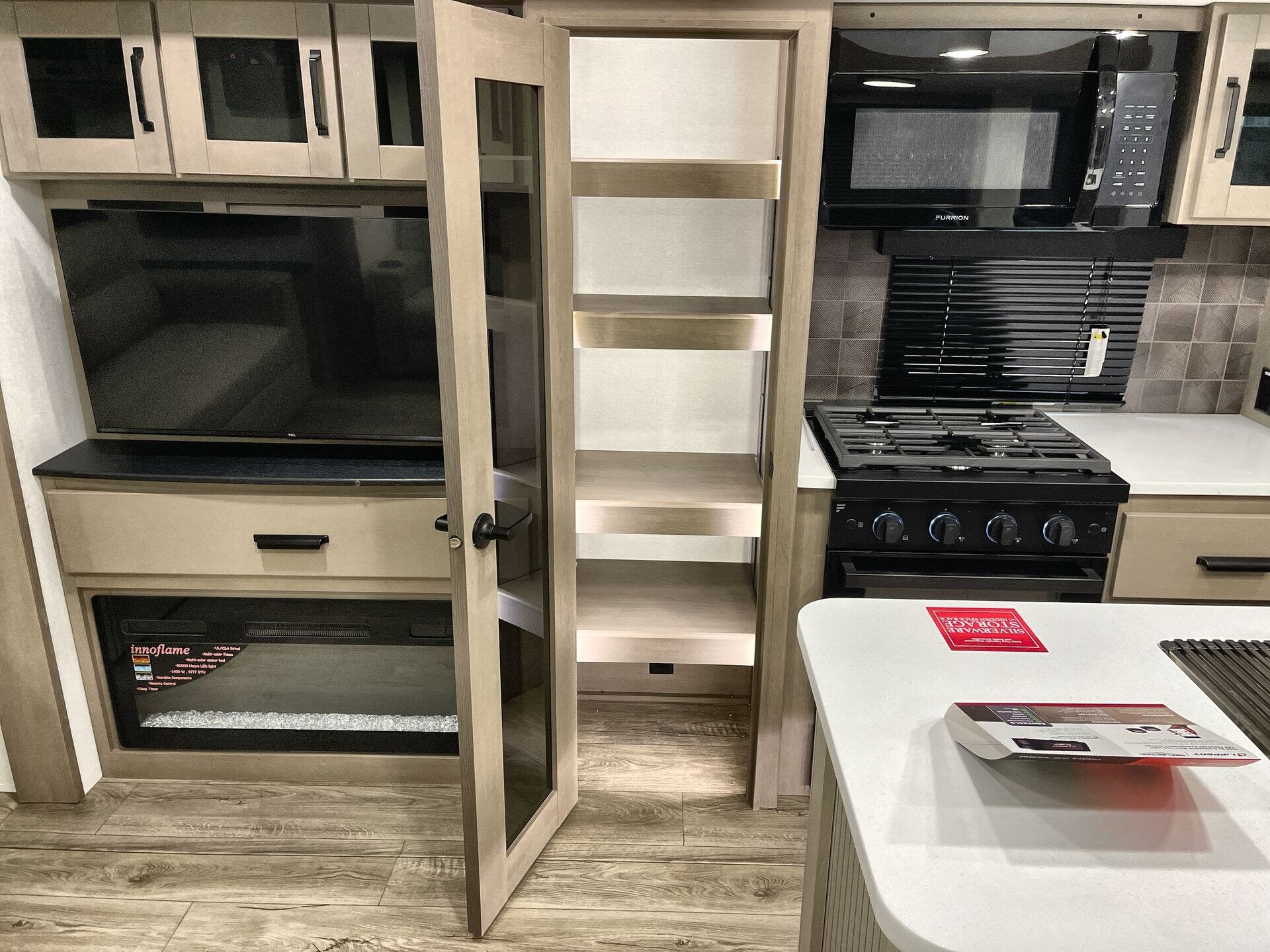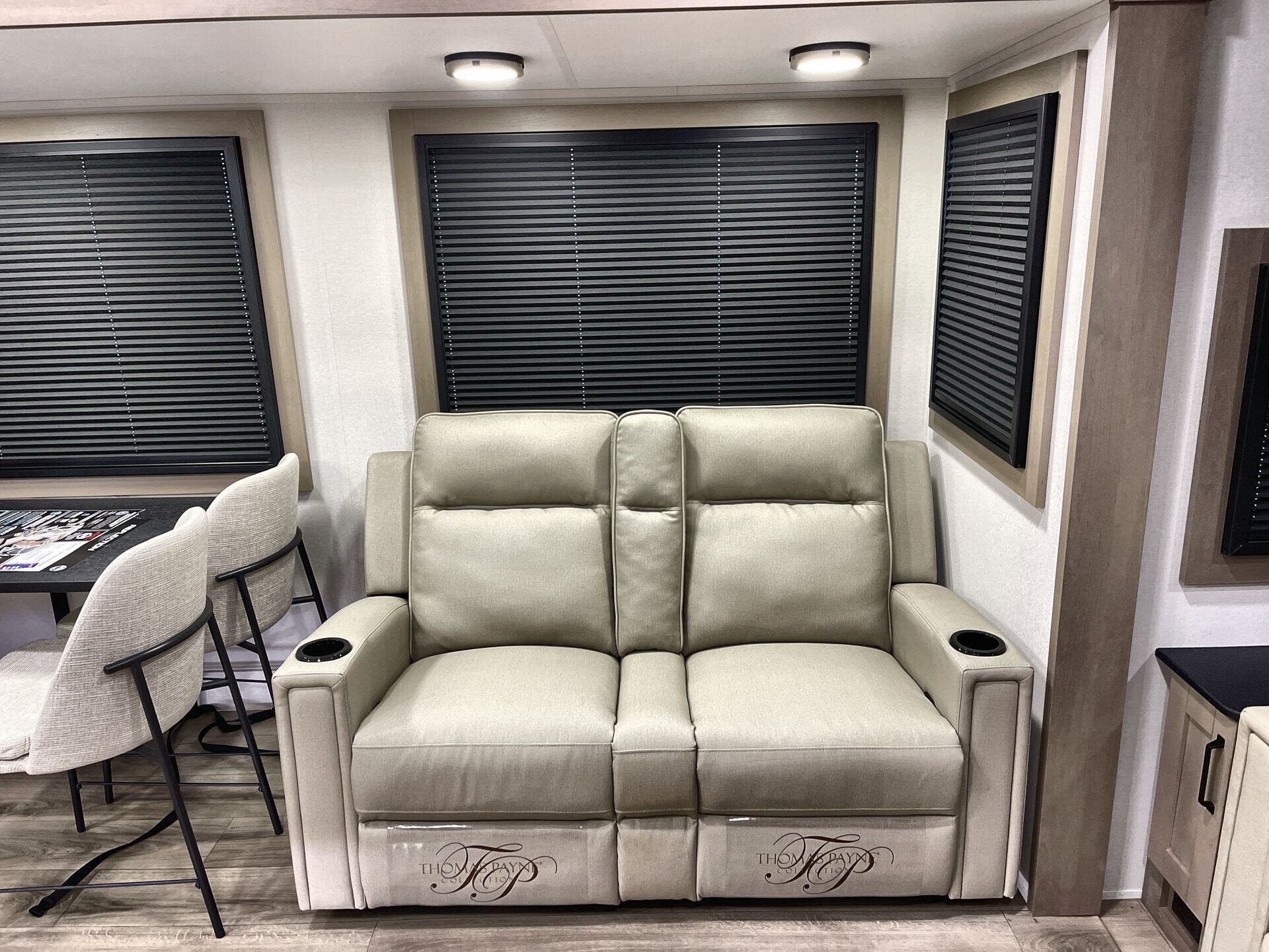 The Reflection 337RLS emphasizes a refined interior designed for real-world living. Inside, you’ll find solid surface countertops, a full kitchen with a microwave and refrigerator, and a versatile booth dinette that can transition to additional sleeping with a hide-A-bed sofa. A dedicated medicine cabinet and vanity add convenience to the bathroom, while a shower and toilet deliver home-like comfort. The unit includes an inverter and a solar panel system to extend off-grid usability, making it ideal for extended stays at scenic campgrounds or remote getaways.