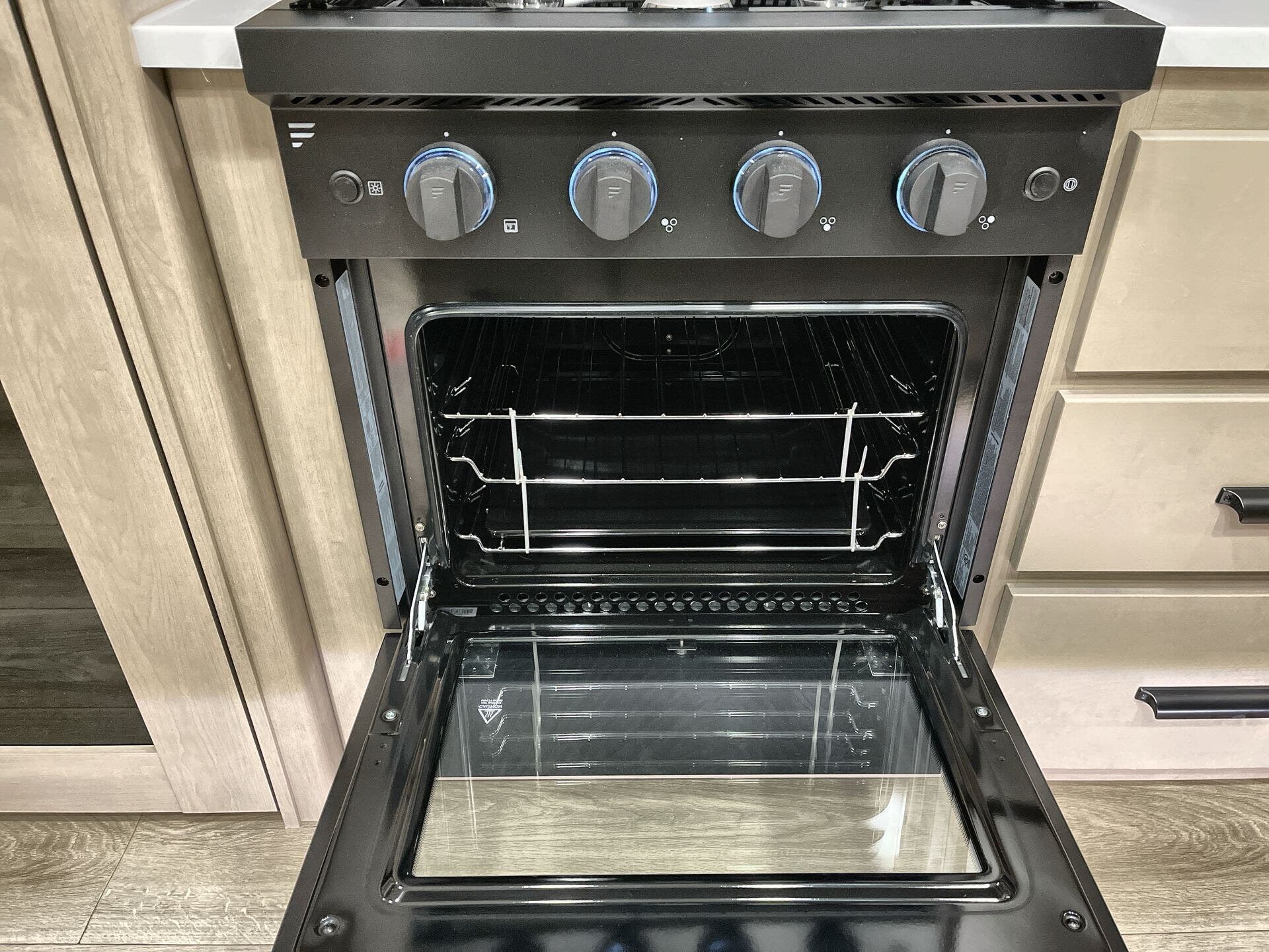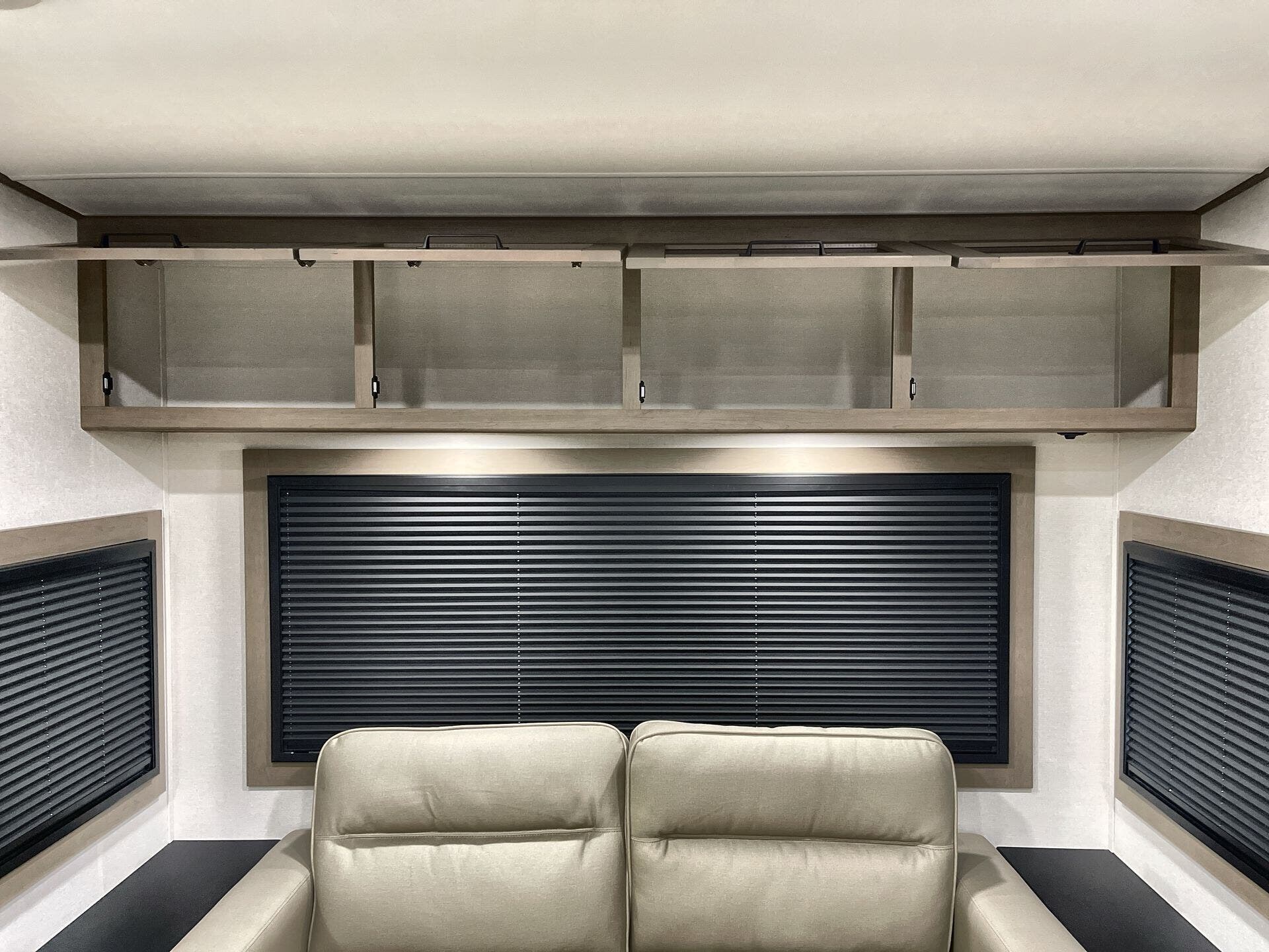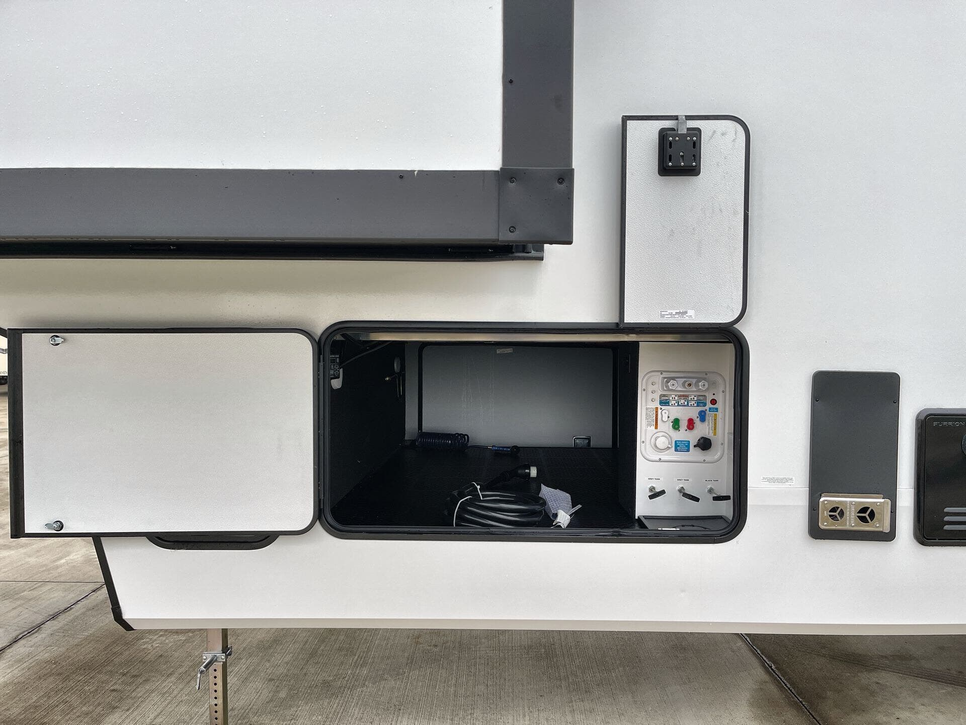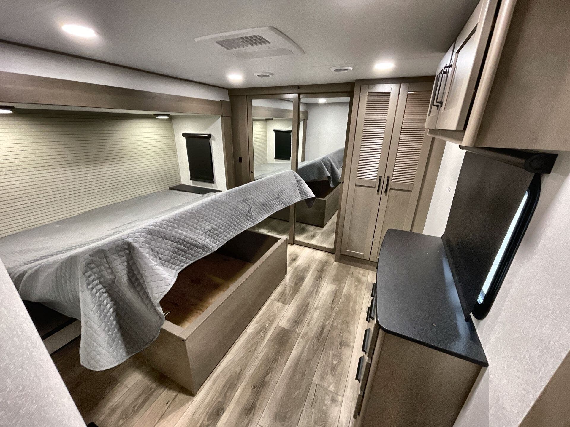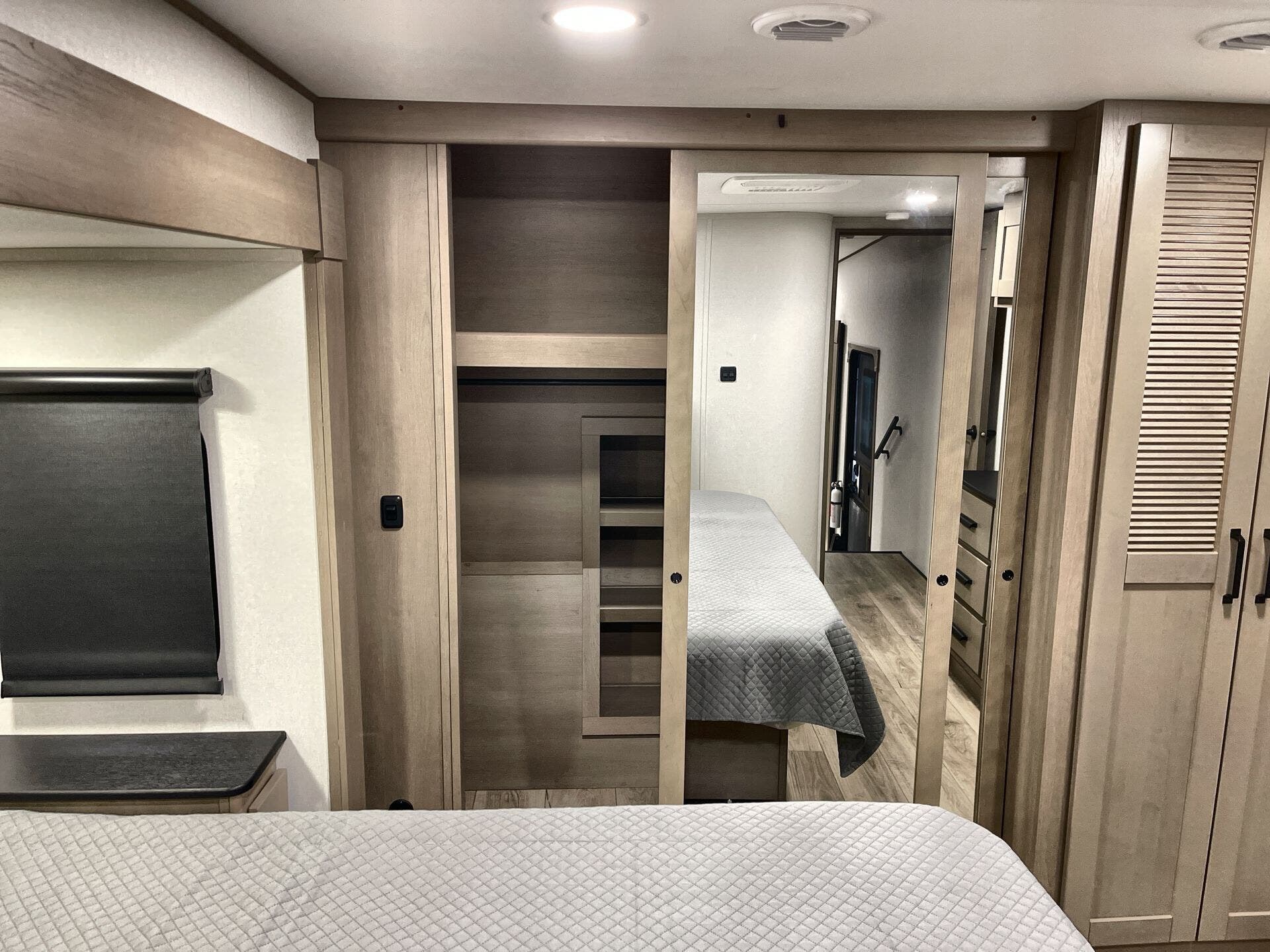 The Reflection 337RLS emphasizes a refined interior designed for real-world living. Inside, you’ll find solid surface countertops, a full kitchen with a microwave and refrigerator, and a versatile booth dinette that can transition to additional sleeping with a hide-A-bed sofa. A dedicated medicine cabinet and vanity add convenience to the bathroom, while a shower and toilet deliver home-like comfort. The unit includes an inverter and a solar panel system to extend off-grid usability, making it ideal for extended stays at scenic campgrounds or remote getaways.