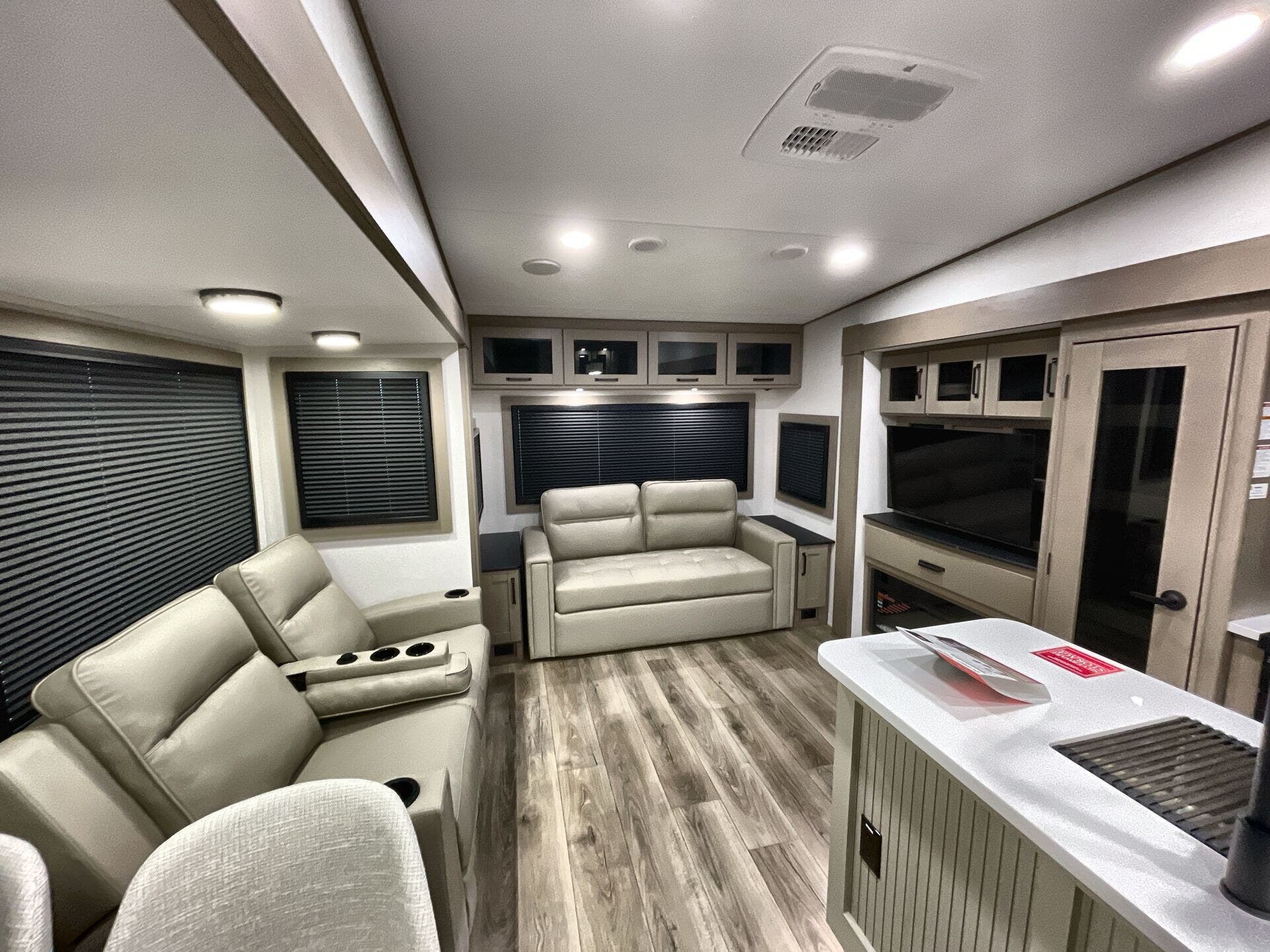 Discover the Grand Design Reflection 337RLS, a 2026 towable RV that blends luxury with rugged reliability. This rear living fifth wheel delivers comfort, versatility, and peak convenience for family trips or long weekend getaways. New and ready to tow, it showcases a spacious floorplan with three slide-outs, a generous storage suite, and up to four sleeping spots, making it a standout choice among recreational vehicles for couples or small families seeking a premium travel trailer experience.