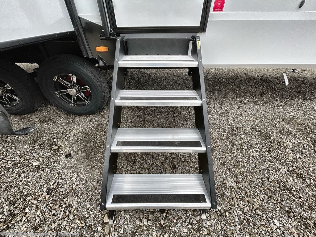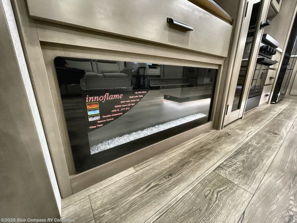 You can enjoy a spacious rear living area in this RV with dual opposing slides offering you entertainment, kitchen amenities, seating and windows for great views! The rear tri-fold sofa also converts into extra sleeping space for an extra guest or two, just like the booth dinette does. Yet you might like to add the swivel dinette option. There are theater seats to enjoy while you place your drinks in the cupholders and watch the entertainment center with a 40" LED HDTV and fireplace. The pantry is big enough to store your favorite snacks, and the kitchen island will make meal prepping easier, plus there is a 16 cu. ft. refrigerator to store any leftovers. The full bathroom has a 30" x 48" fiberglass shower and a linen closet to store your towels. The front private bedroom has a comfortable queen bed slide that can be switched out for the optional king bed, a dresser with overhead cabinets, and a full wall wardrobe that is prepped to add the optional washer and dryer so that you can extend your camping trip with clean clothes!