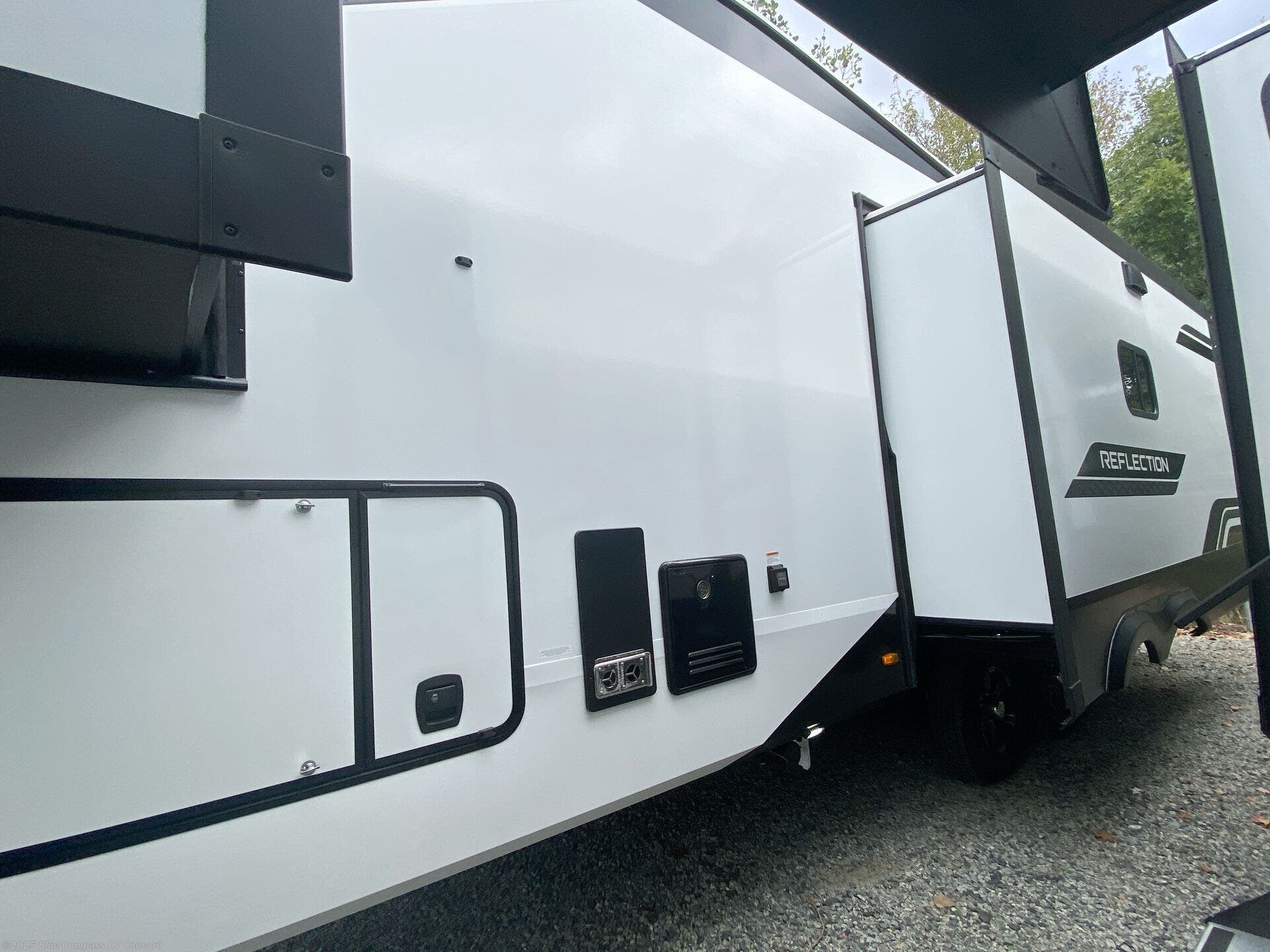 With any Reflection fifth wheel by Grand Design, you will have a solar panel for off-grid camping and a 60 amp charge controller and inverter prep, a Universal All-In-One docking station, unobstructed pass-through storage, and Goodyear Endurance tires. Each is constructed of gel coat exterior sidewalls, residential 5" truss rafters, walk-on roof decking, a fiberglass and radiant foil roof and front cap insulation plus laminated aluminum framed side walls, roof and end walls in slide rooms. Head inside to enjoy residential hardwood cabinet doors, premium Congoleum flooring, a spacious shower with a glass door, and many more comforts!