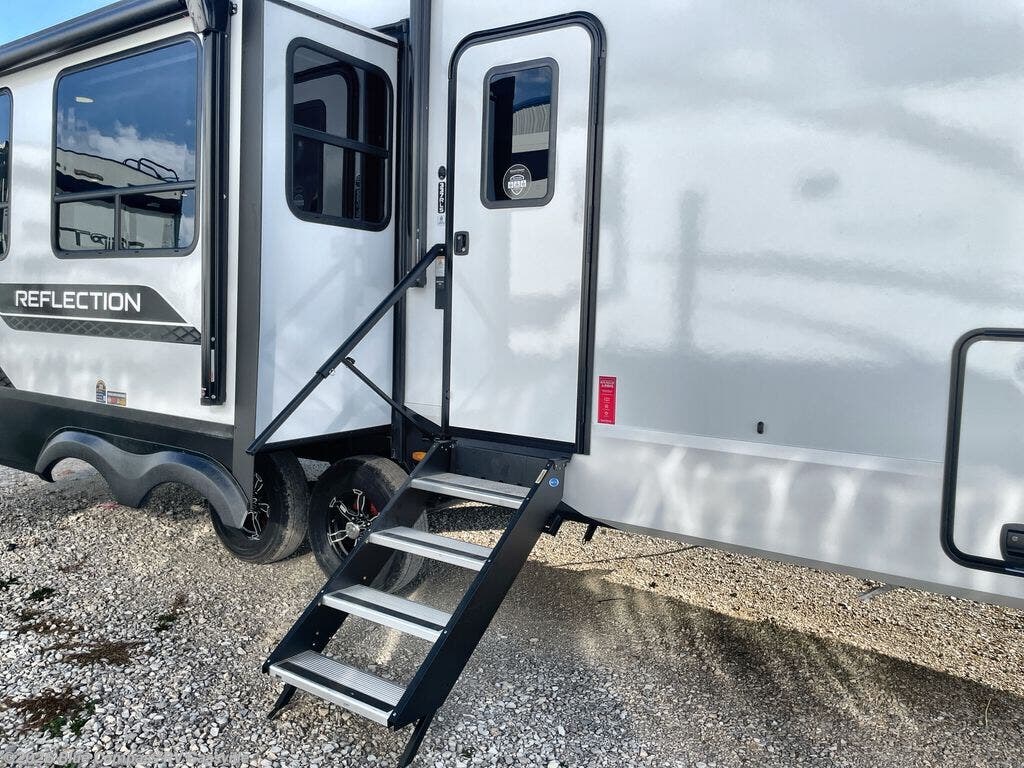 With any Reflection fifth wheel by Grand Design, you will have a solar panel for off-grid camping and a 60 amp charge controller and inverter prep, a Universal All-In-One docking station, unobstructed pass-through storage, and Goodyear Endurance tires. Each is constructed of gel coat exterior sidewalls, residential 5" truss rafters, walk-on roof decking, a fiberglass and radiant foil roof and front cap insulation plus laminated aluminum framed side walls, roof and end walls in slide rooms. Head inside to enjoy residential hardwood cabinet doors, premium Congoleum flooring, a spacious shower with a glass door, and many more comforts!